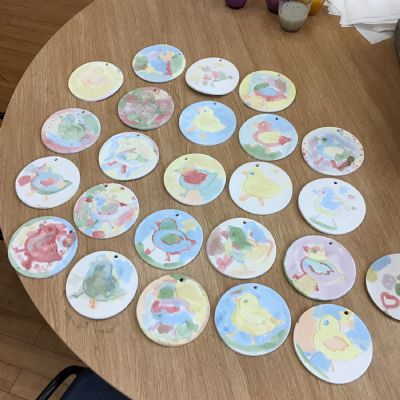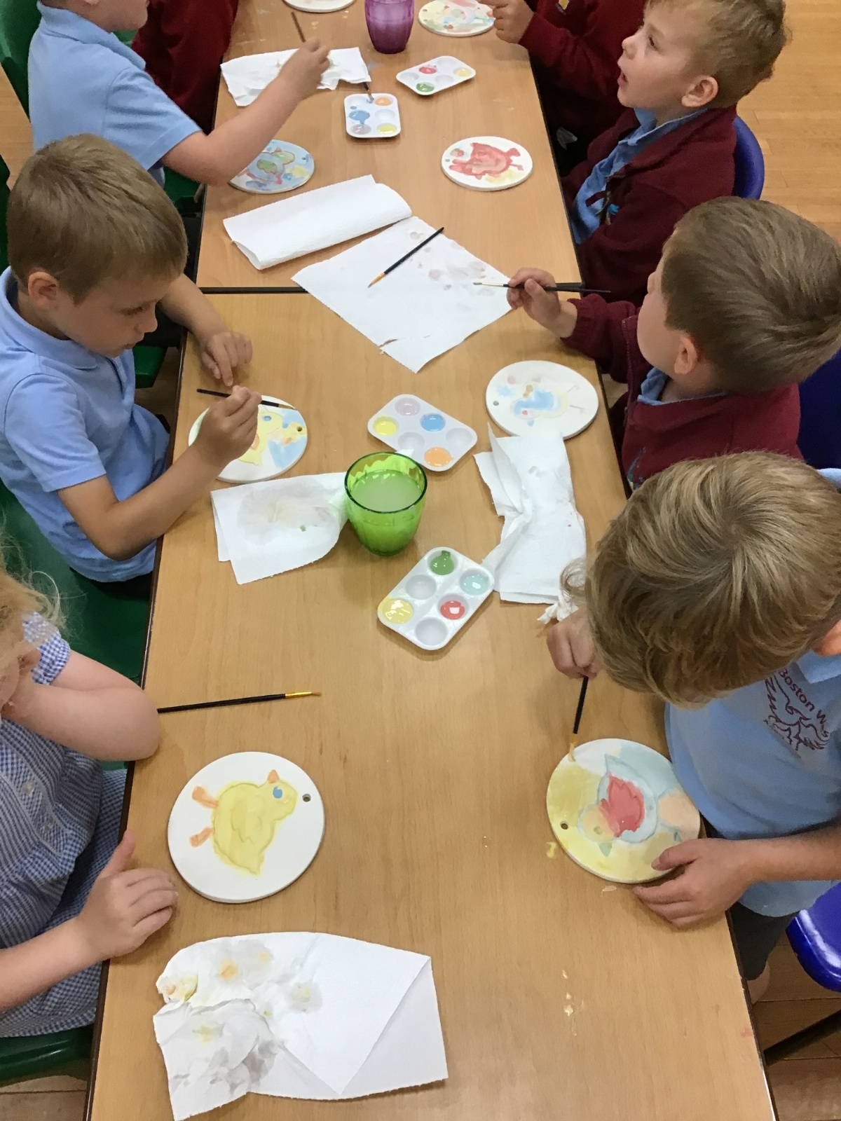 As a treat for raising lots of money for our class chicks the children had a visit from Doodles Pottery. They created a chick hanging decoration for the children to paint as a memory of their time in Foundation Stage. They have been taken back to the shop to go into the kiln and they will be returned before we break up for the summer holidays. The children did a fantastic job and we can't wait to see the finished products.