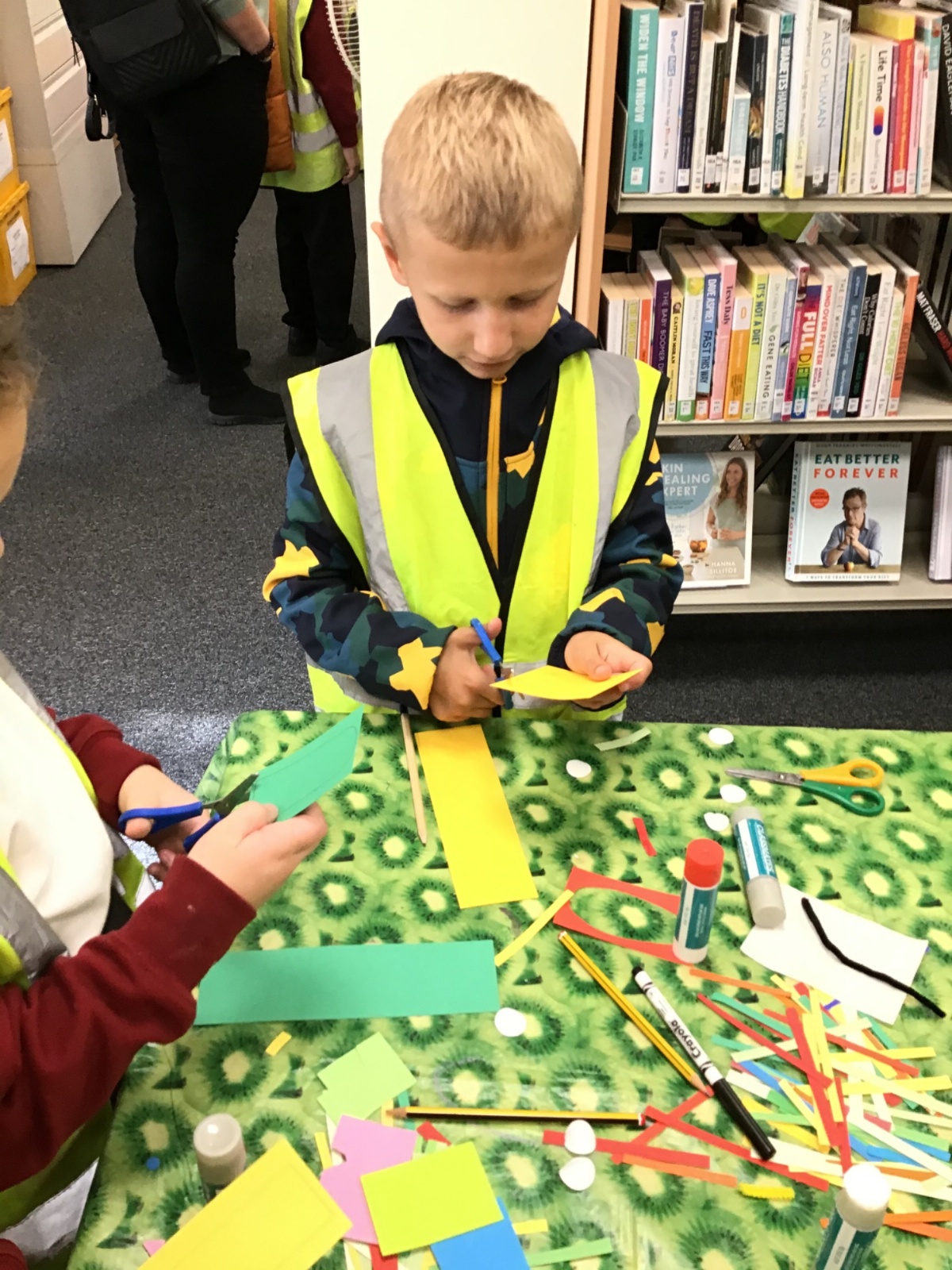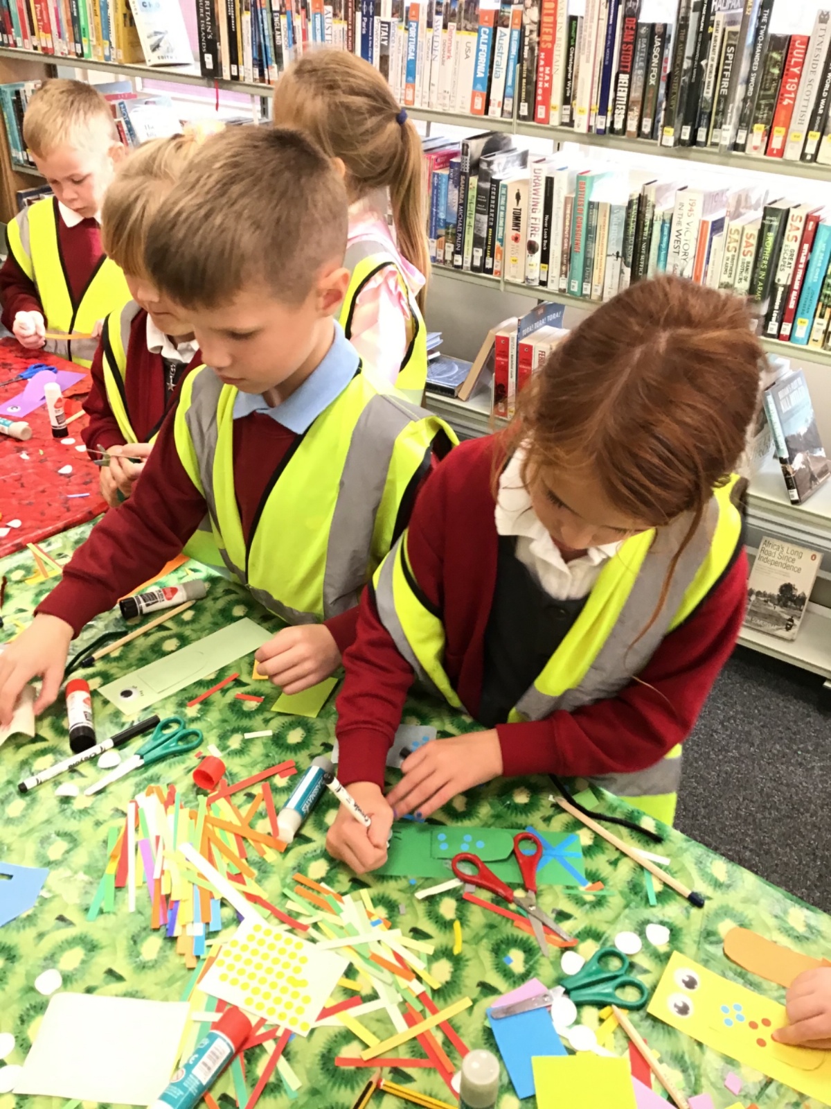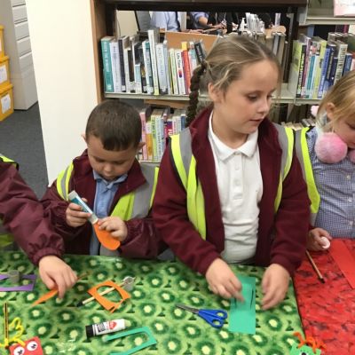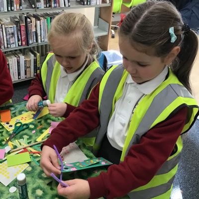 On our visit to the library, we looked around, learnt how to borrow books and made a bookmark.