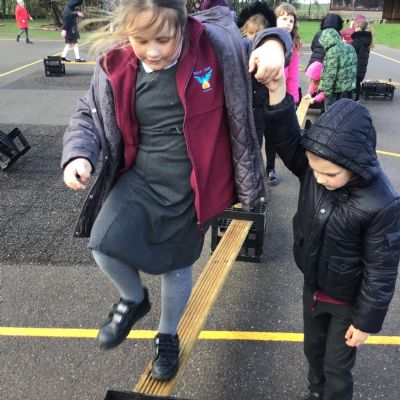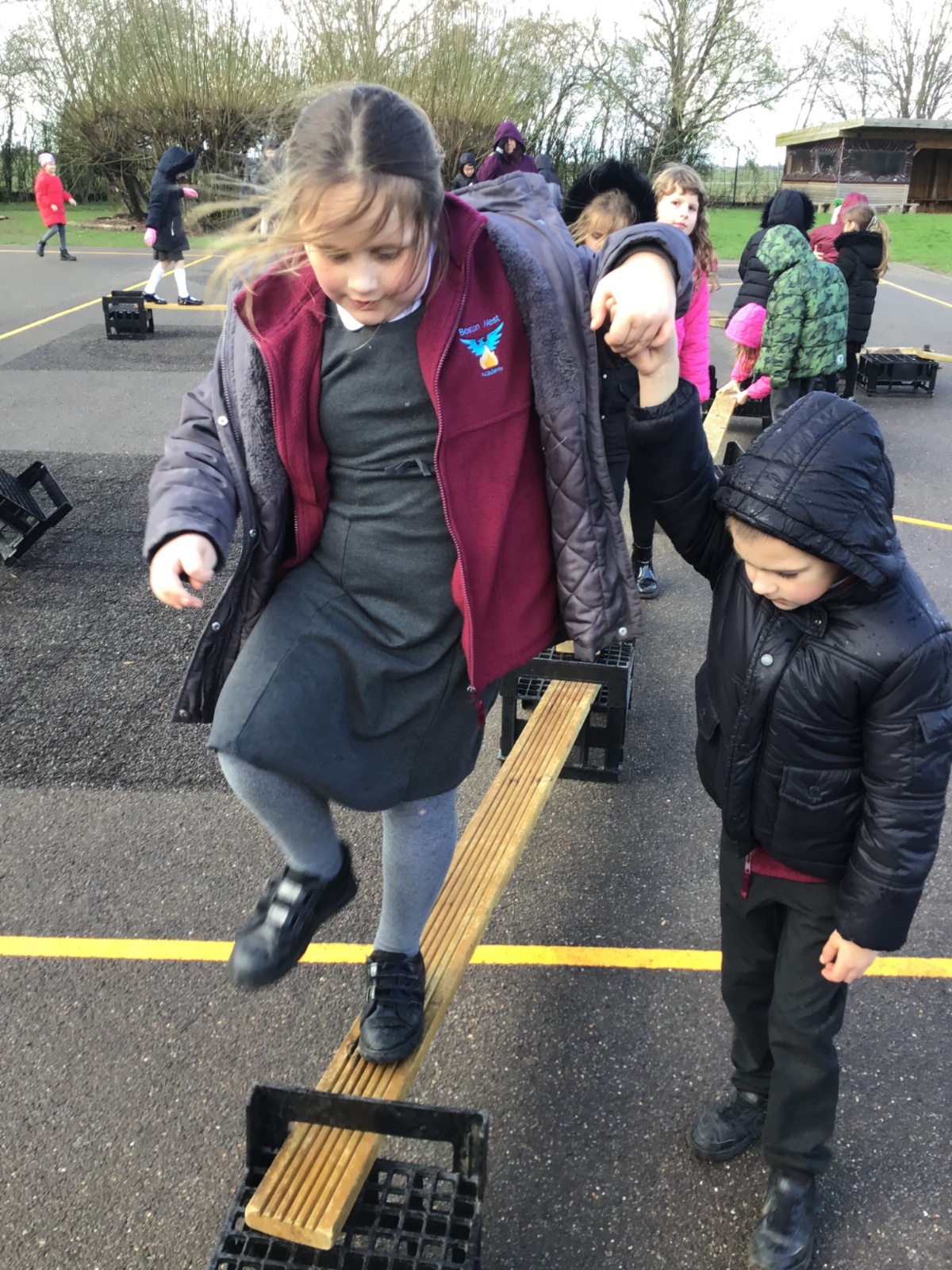 Year 2, enjoyed working in teams to create obstacle courses. They collaborated to create the course, made sure everyone had a turn and listened to each others ideas. It was fantastic to see the children supporting and helping others across the obstacles.