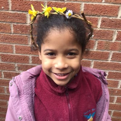 The children manipulated willow into a circular shape and twisted it to hold the shape. Once they had made a crown, they decorated it using natural materials from the school grounds.