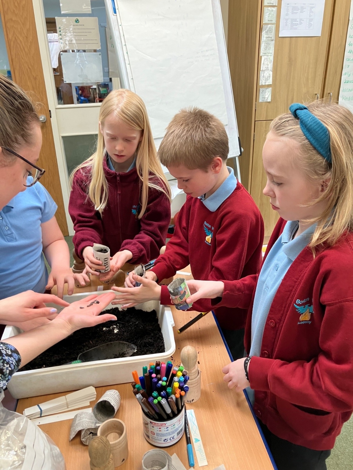 Today the children enjoyed a performance from the Rhubarb Theatre, who were working alongside the Wildlife Trust, to show how we can care for our environment. Following the amazing performance, the children were able to create their own sunflower seed pot and make their own pledge, declaring how they will help our environment to flourish.