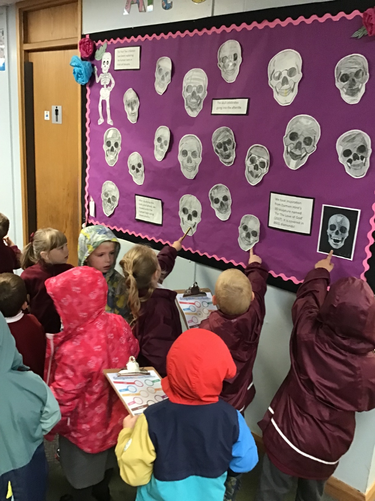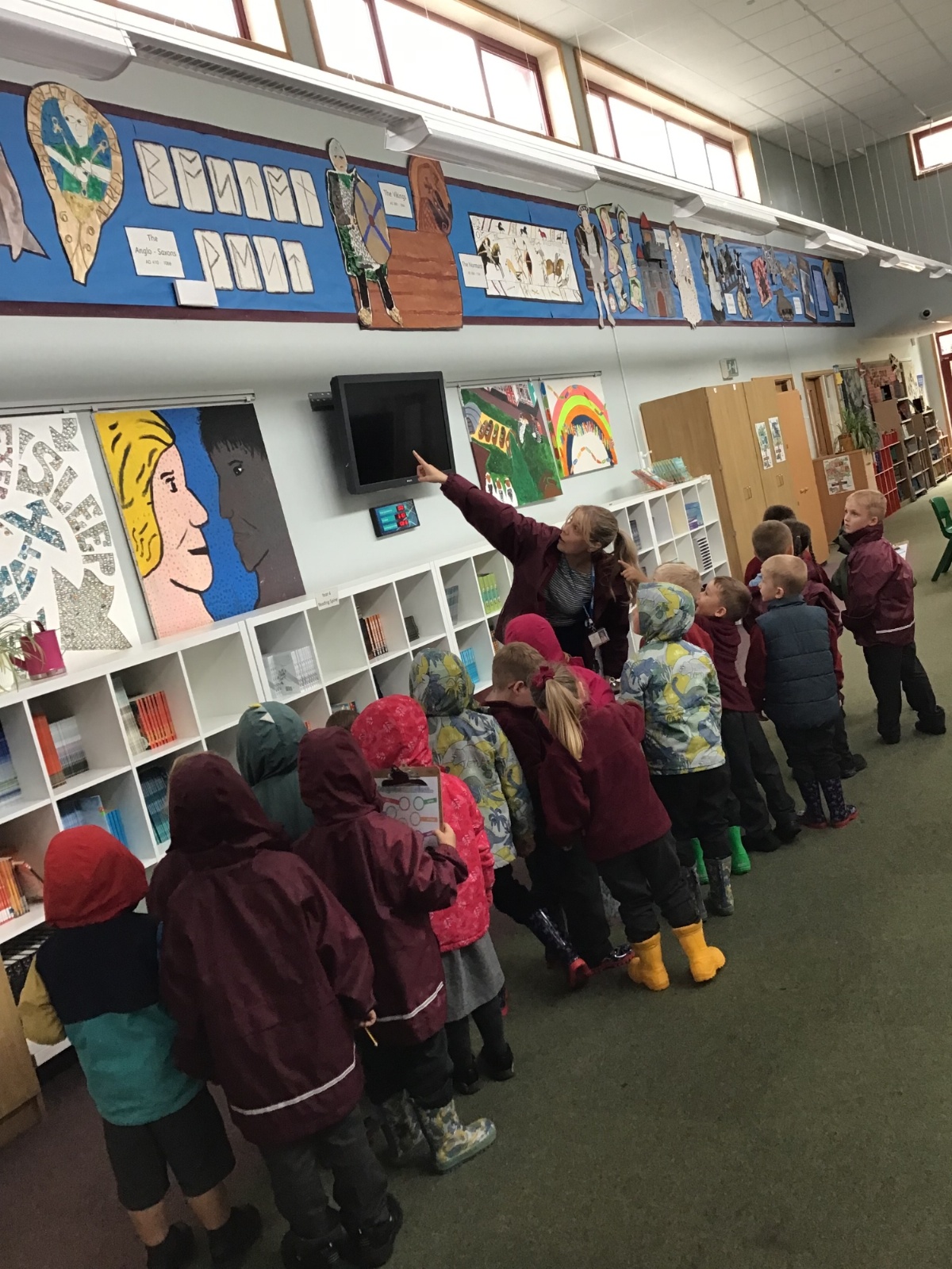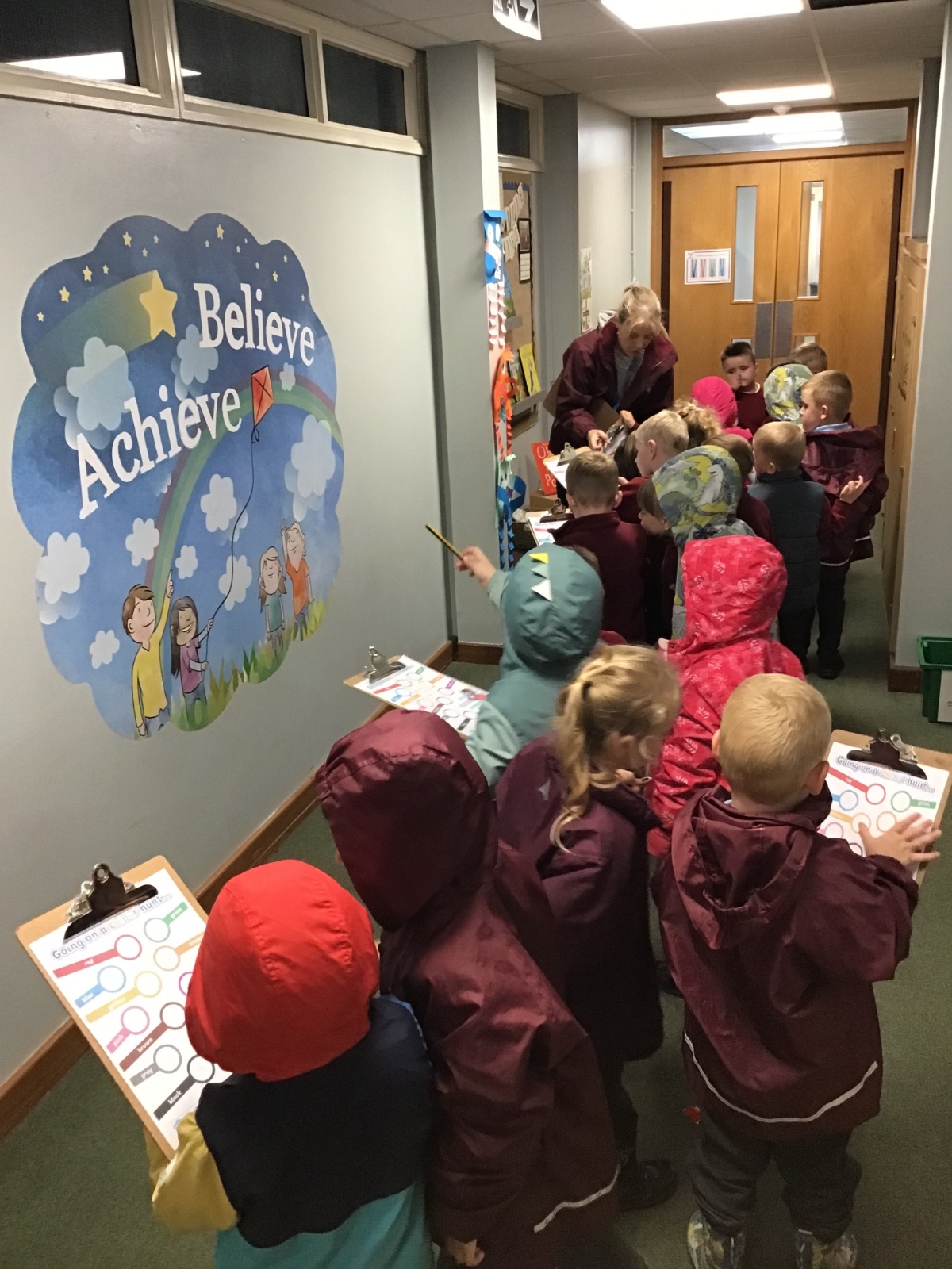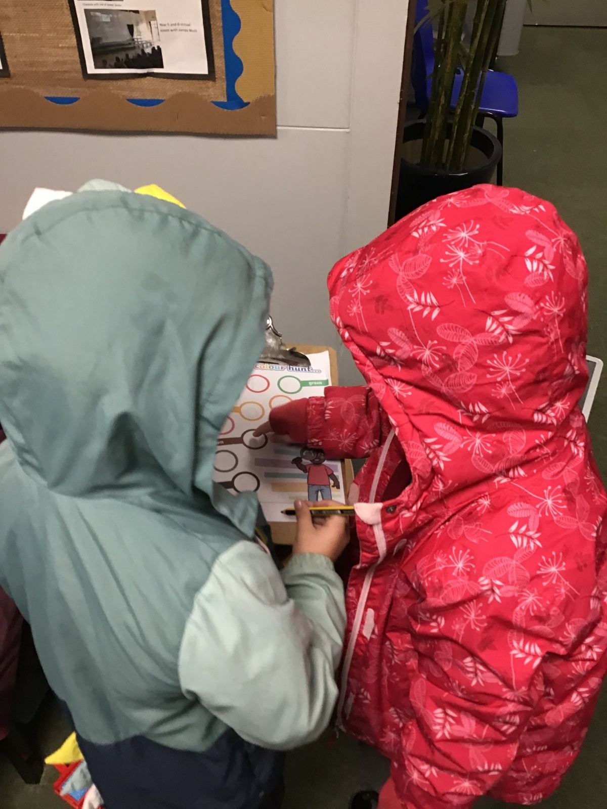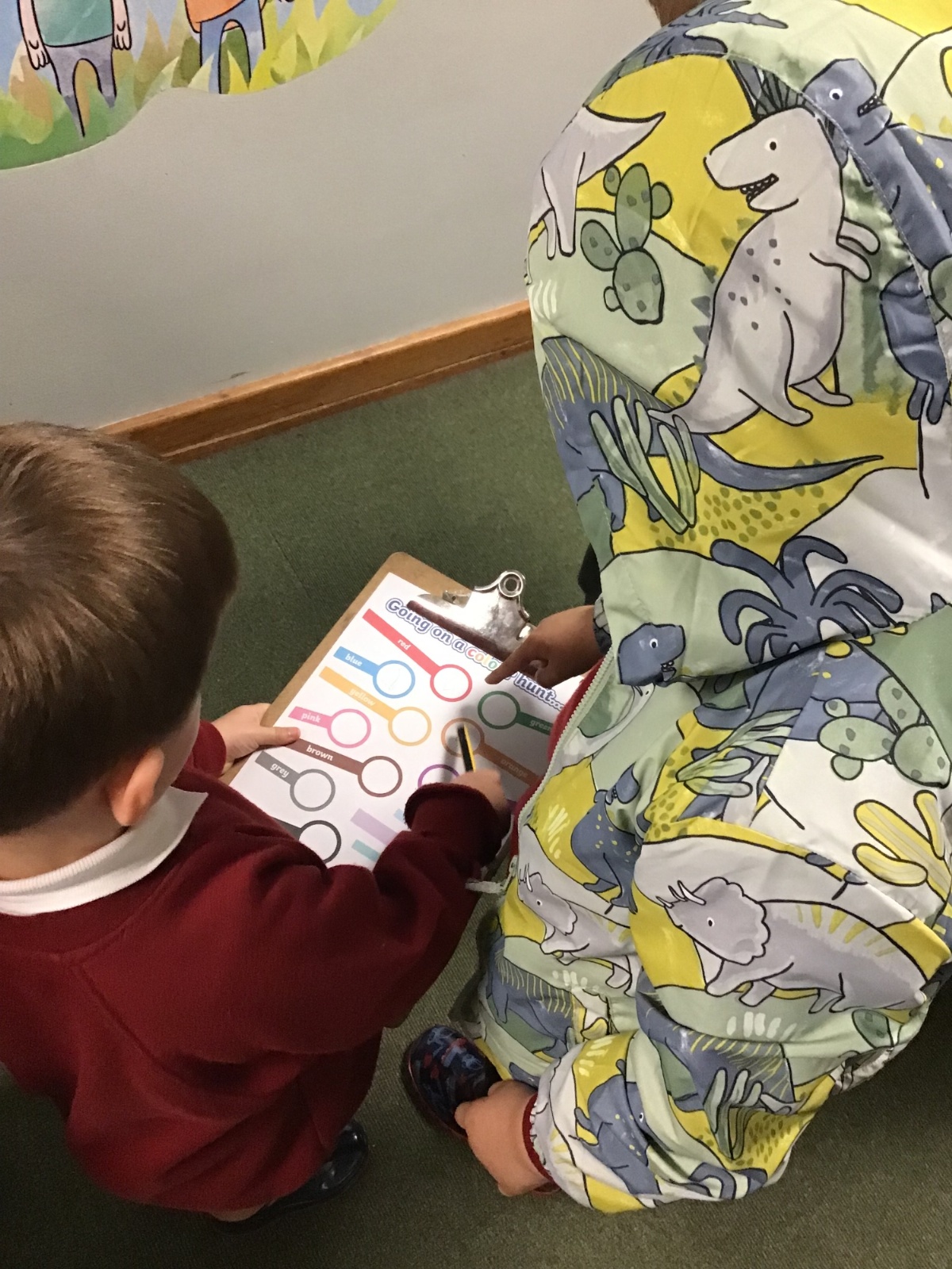 The children have been having fun exploring the school looking for different colours. They worked with a partner using a clipboard and pencil and marked off all of the colours which they found. They managed to find them all!
