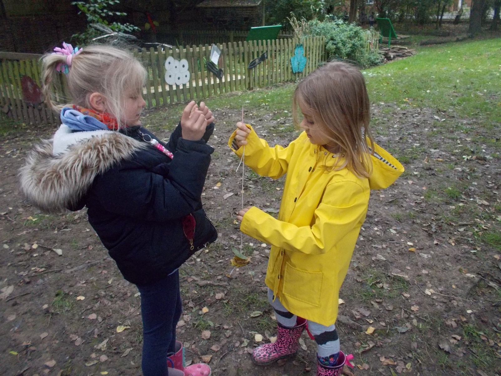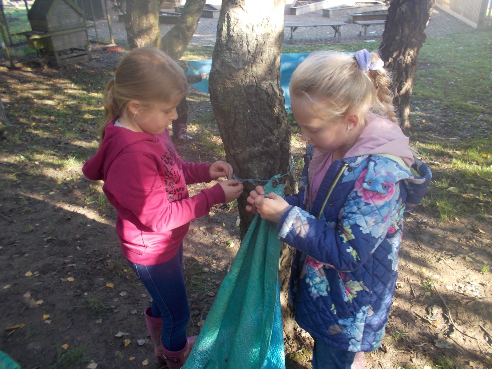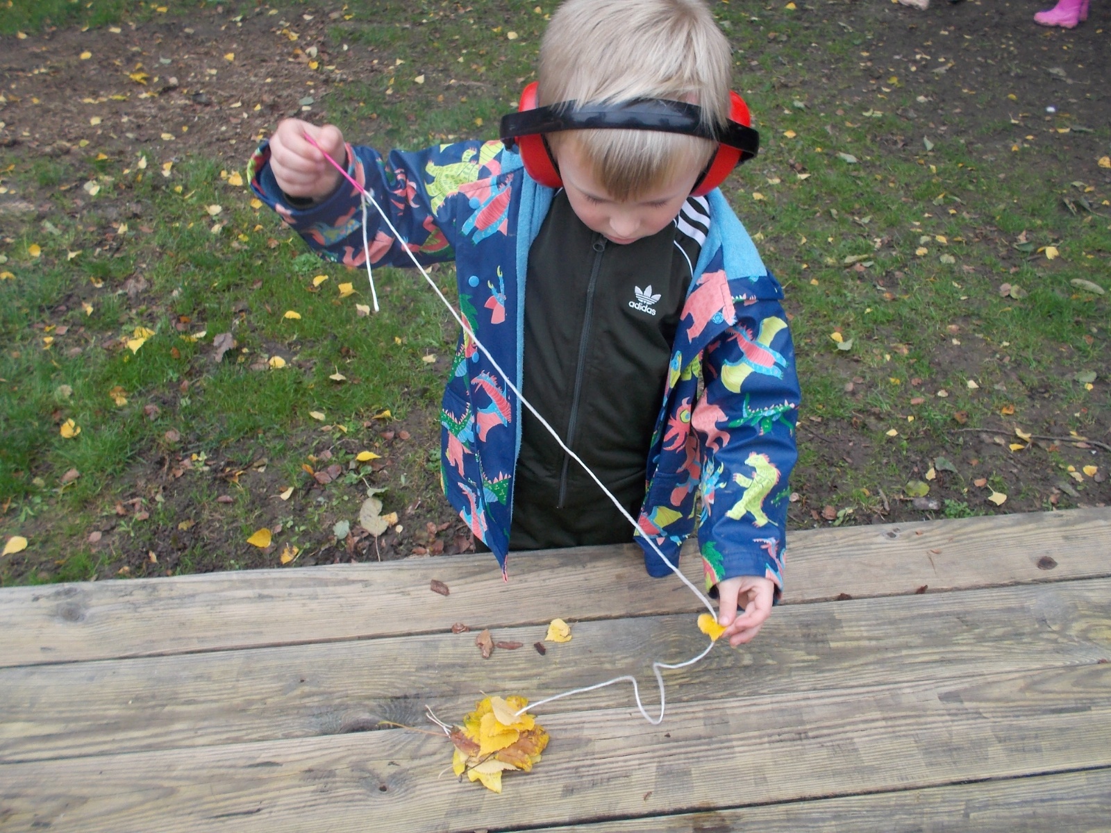 This week we learnt had an outdoor day where we learnt how to transport water and build a shelter. We also practised our threading skills, using the autumn leaves to create a leaf scarf.