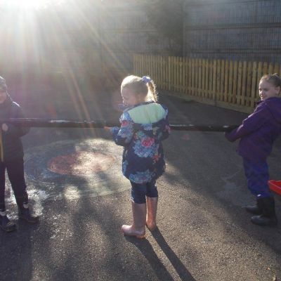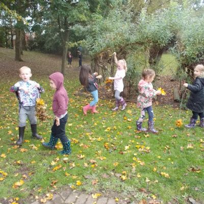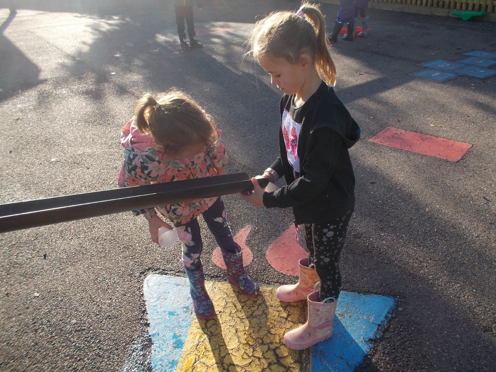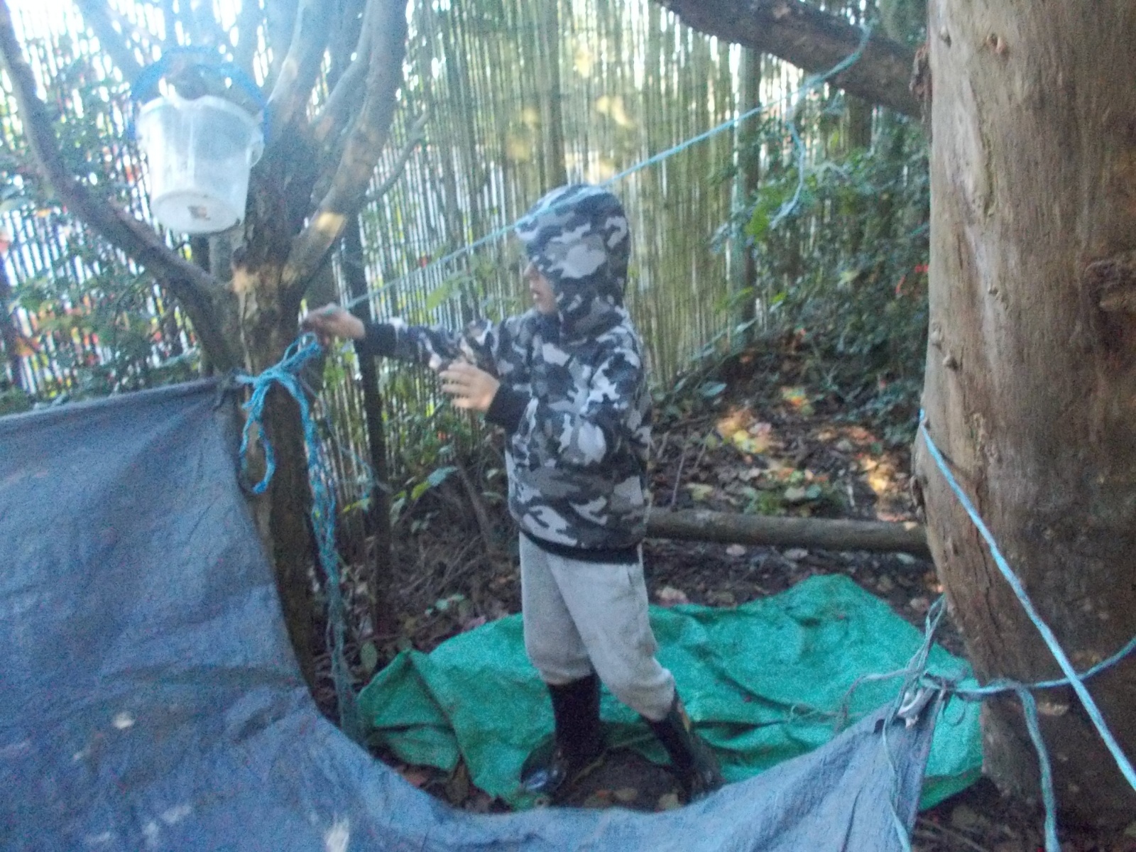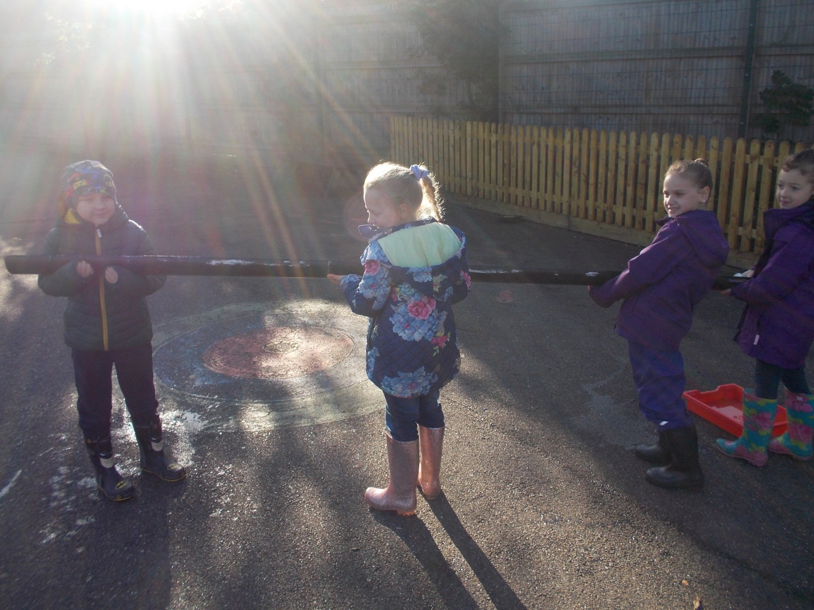 This week we learnt had an outdoor day where we learnt how to transport water and build a shelter. We also practised our threading skills, using the autumn leaves to create a leaf scarf.