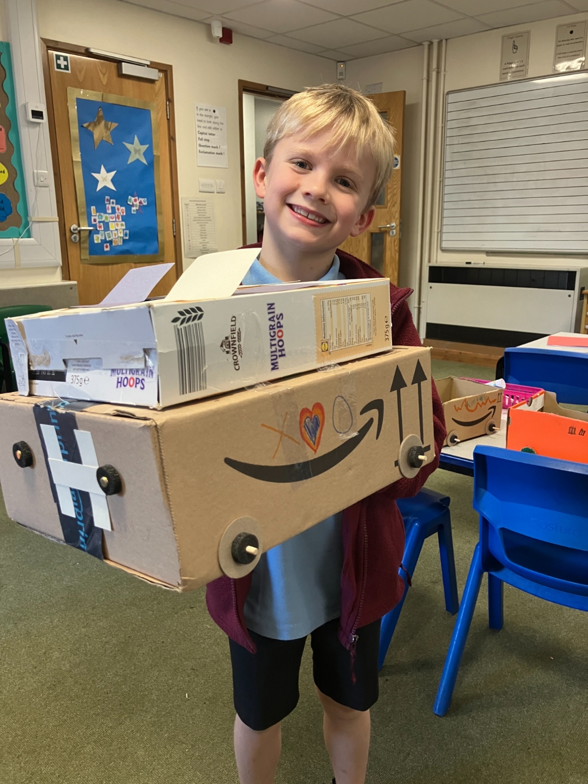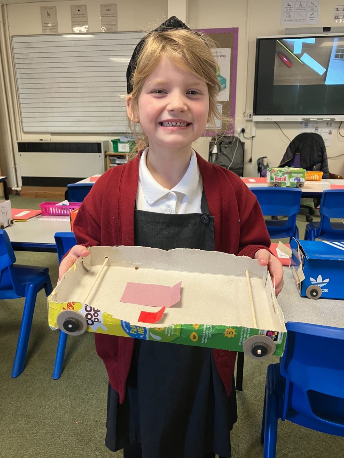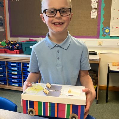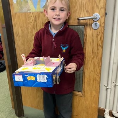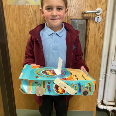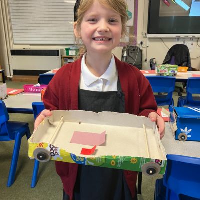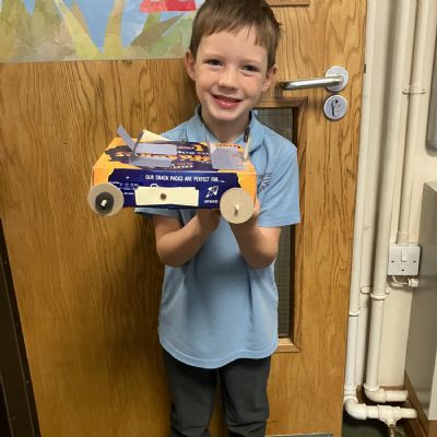 Today, the children used their knowledge of wheels, axles, levers and hinges to create their very own toy cars. They had to ensure their car had moving mechanisms and their final designs were fantastic!