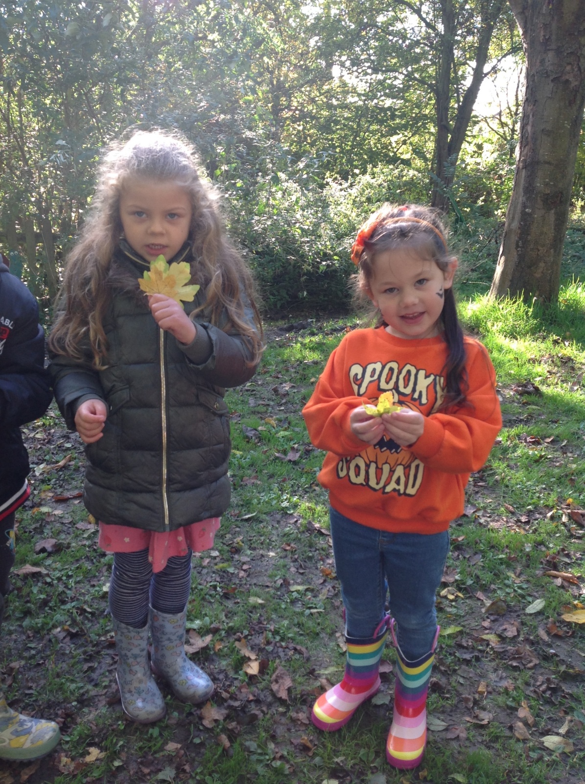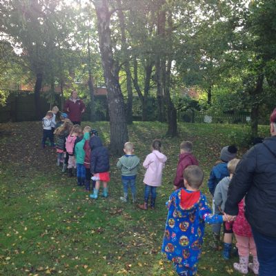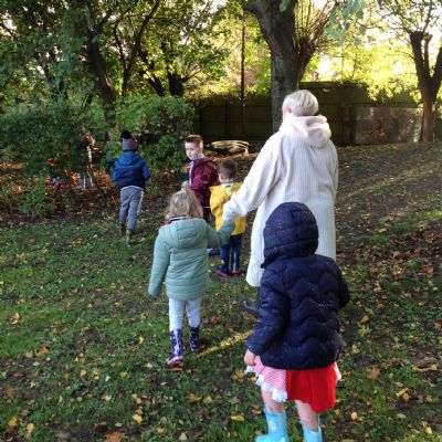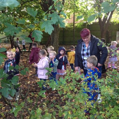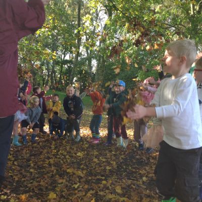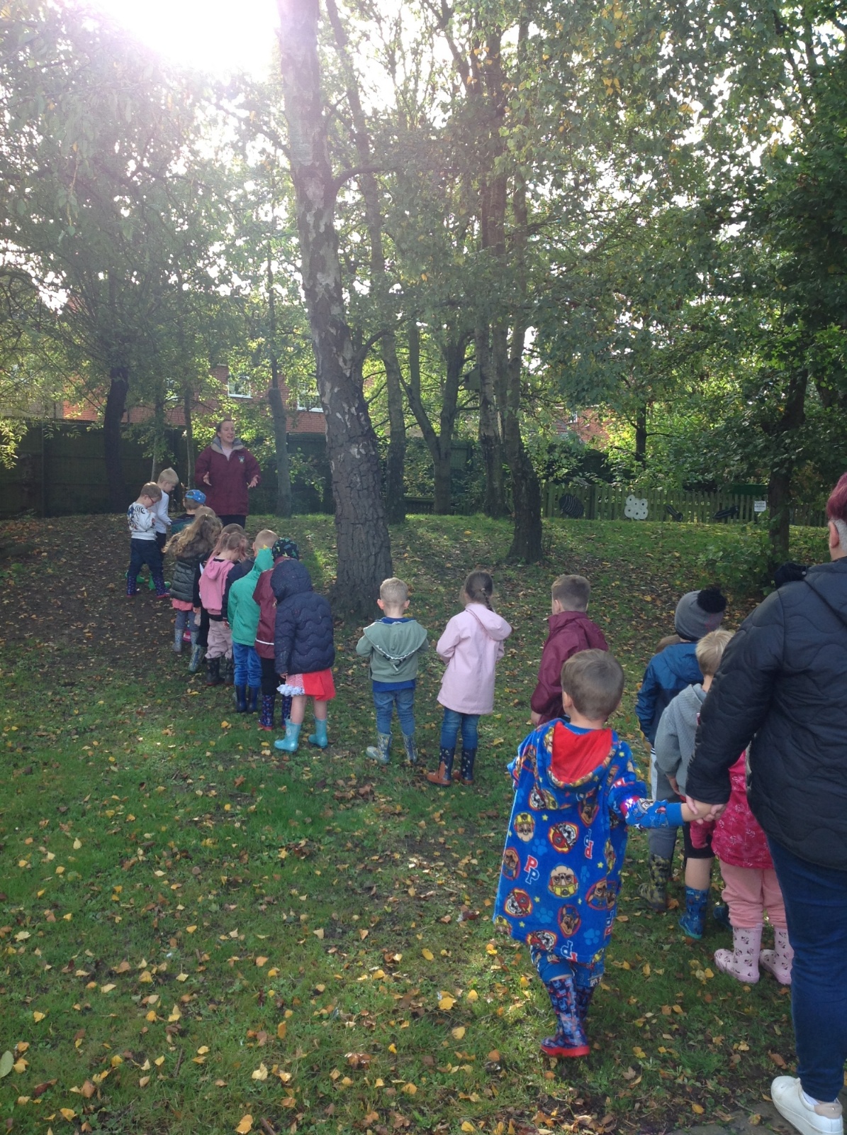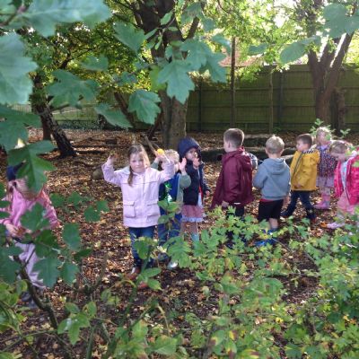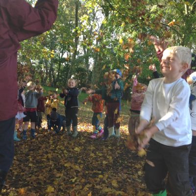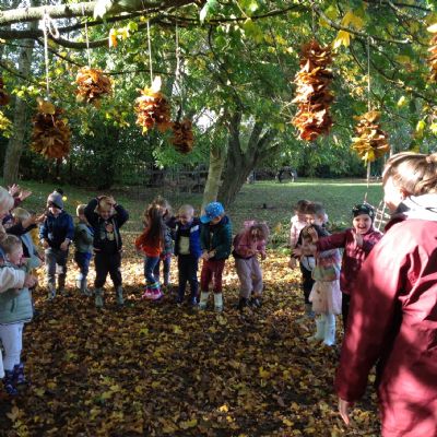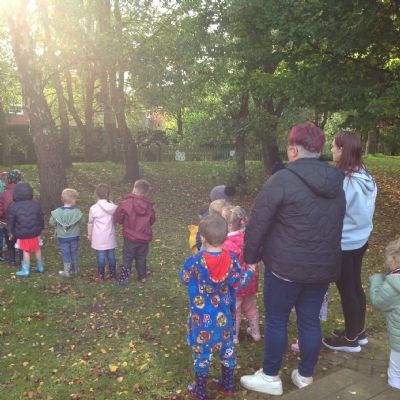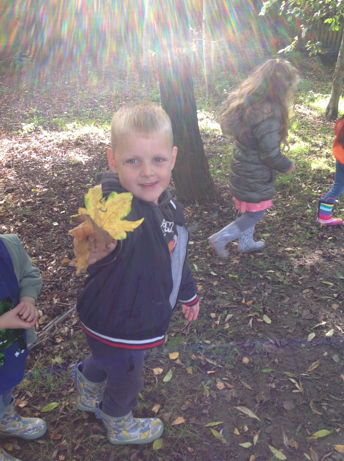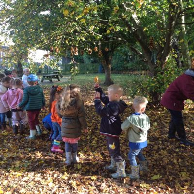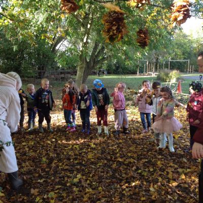 The children enjoyed a lovely walk around the school grounds looking for signs of Autumn, such as leaves on the ground and changing colour. We collected different coloured leaves and had fun throwing them up in the air.