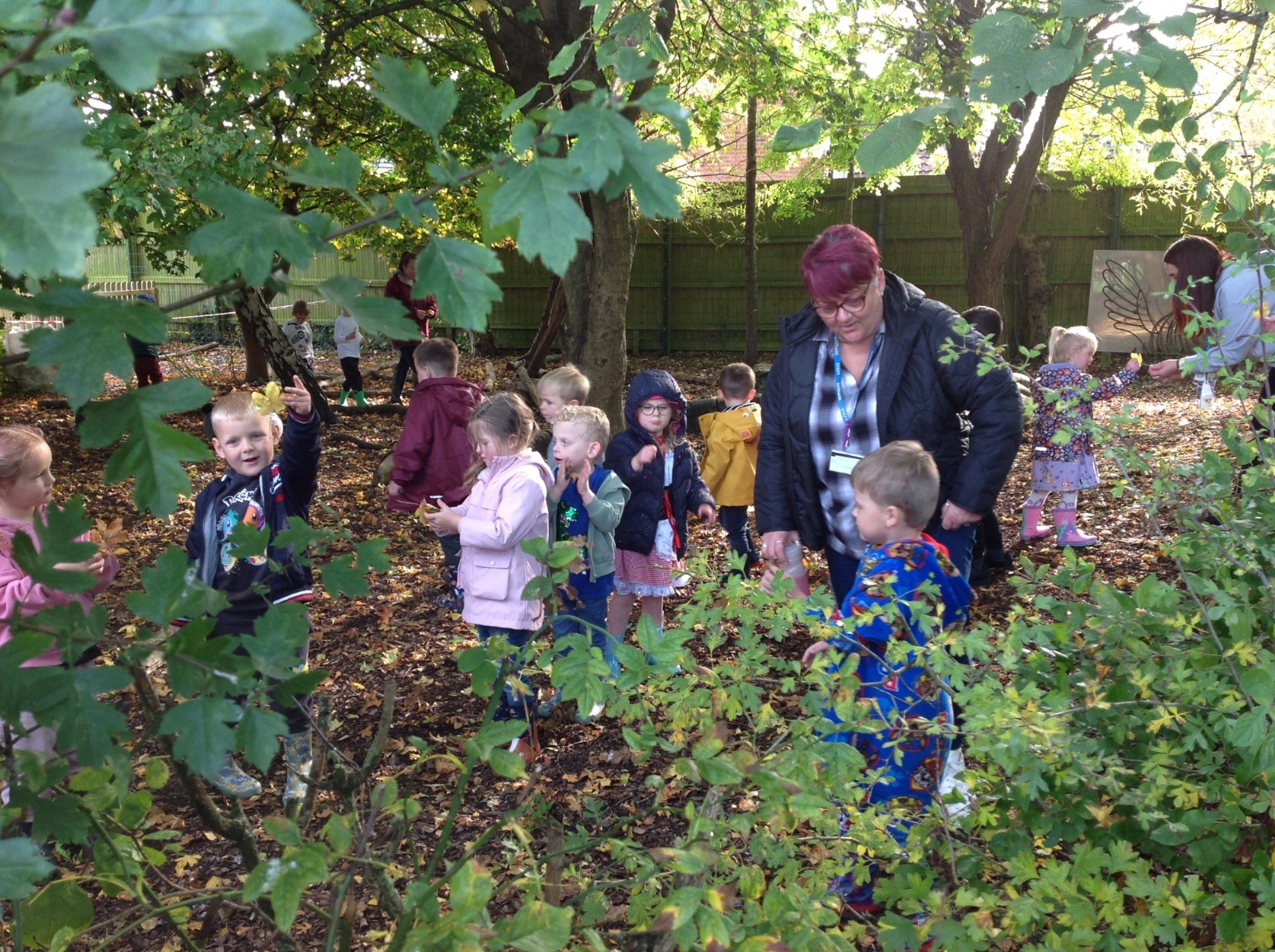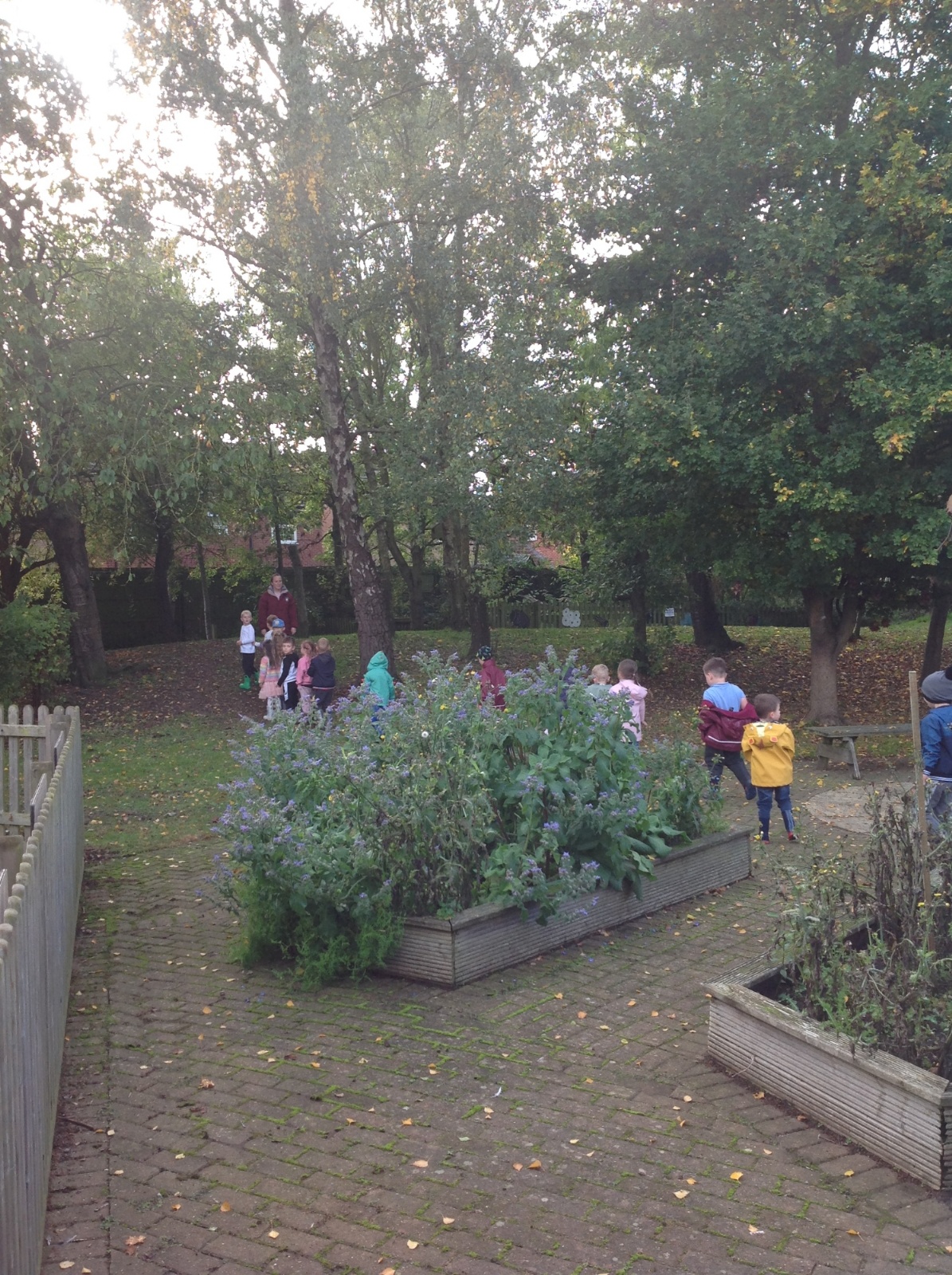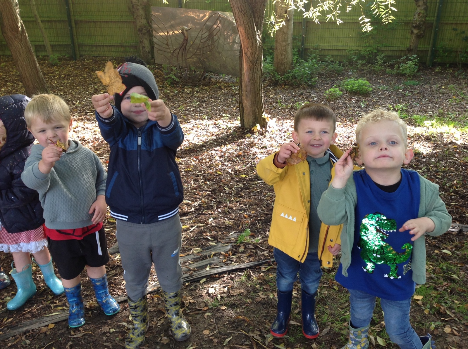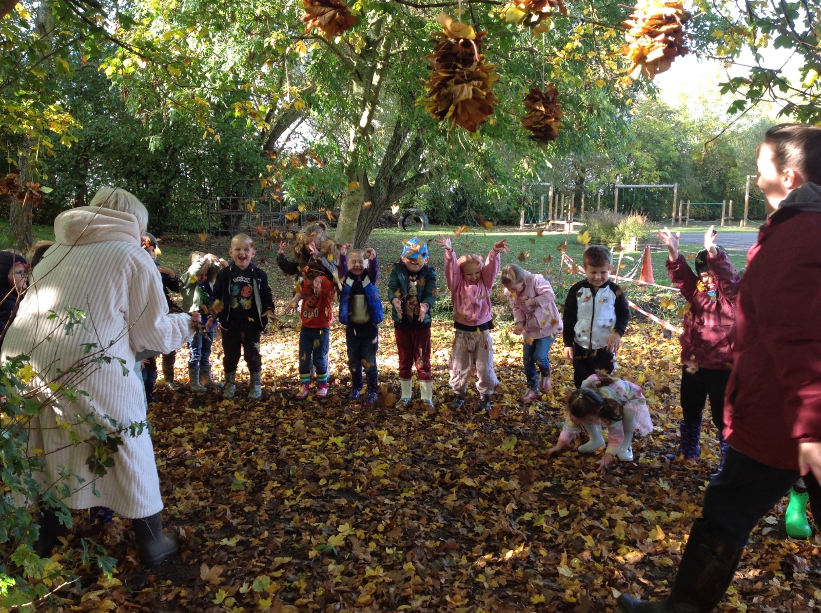 The children enjoyed a lovely walk around the school grounds looking for signs of Autumn, such as leaves on the ground and changing colour. We collected different coloured leaves and had fun throwing them up in the air.