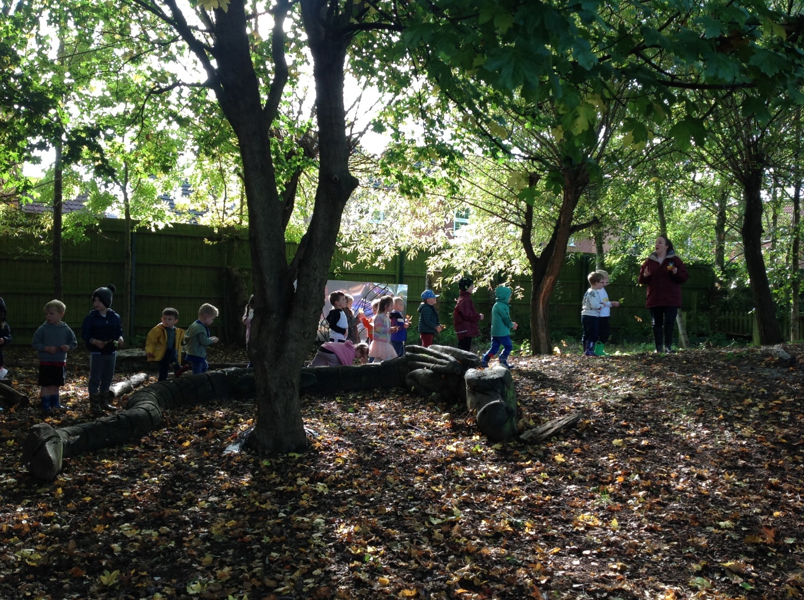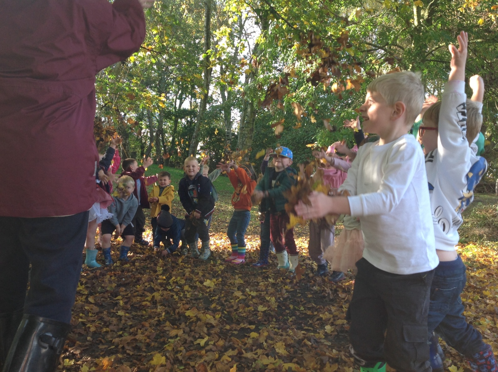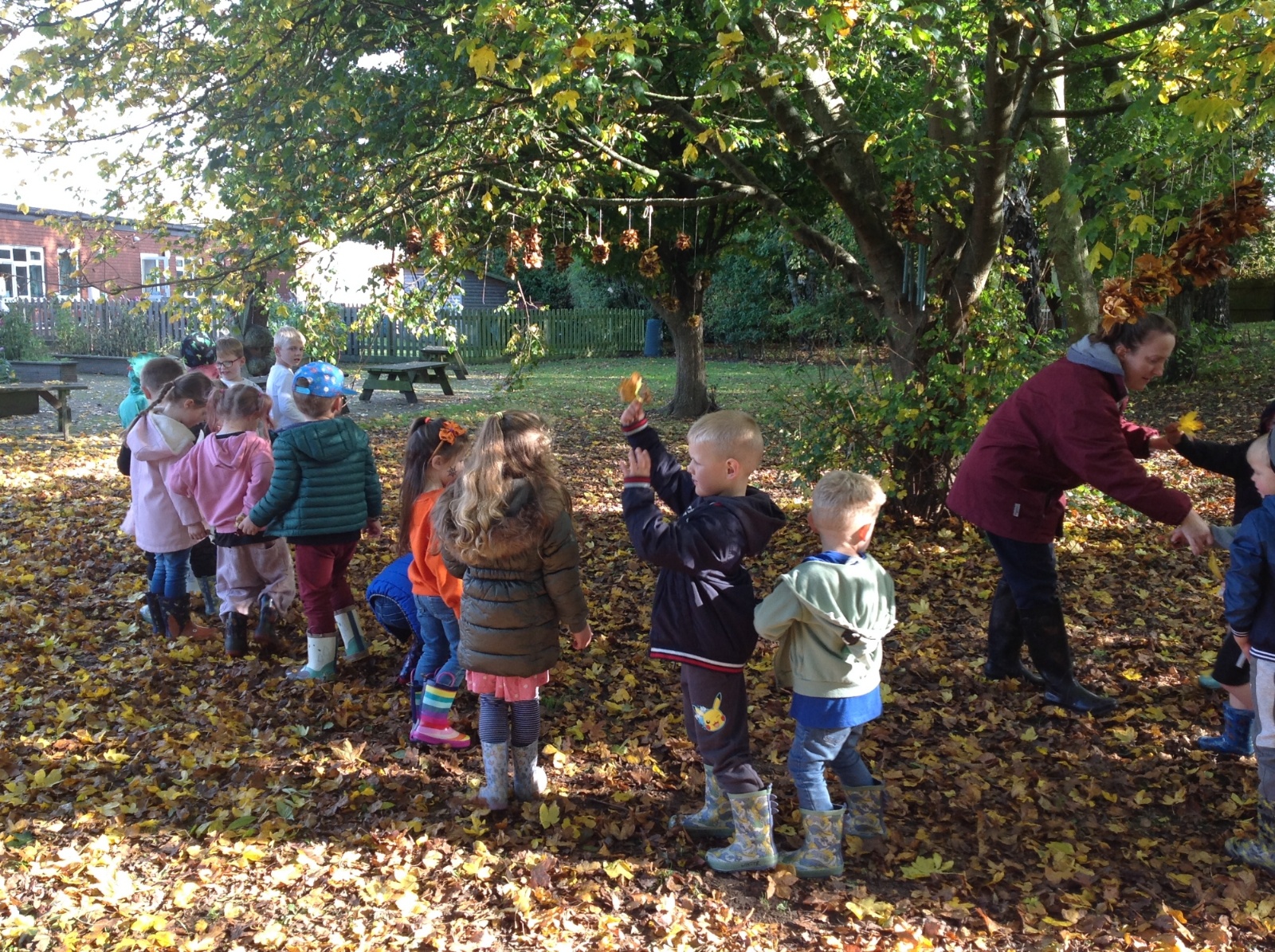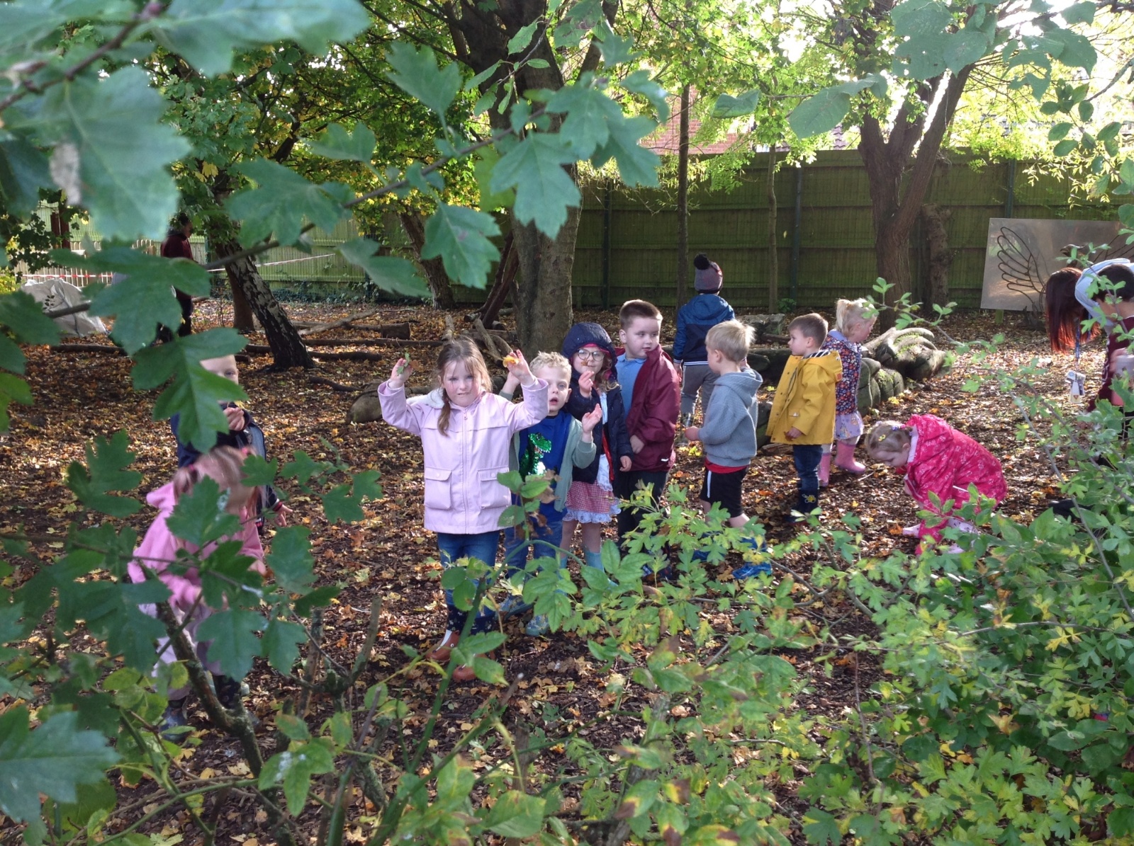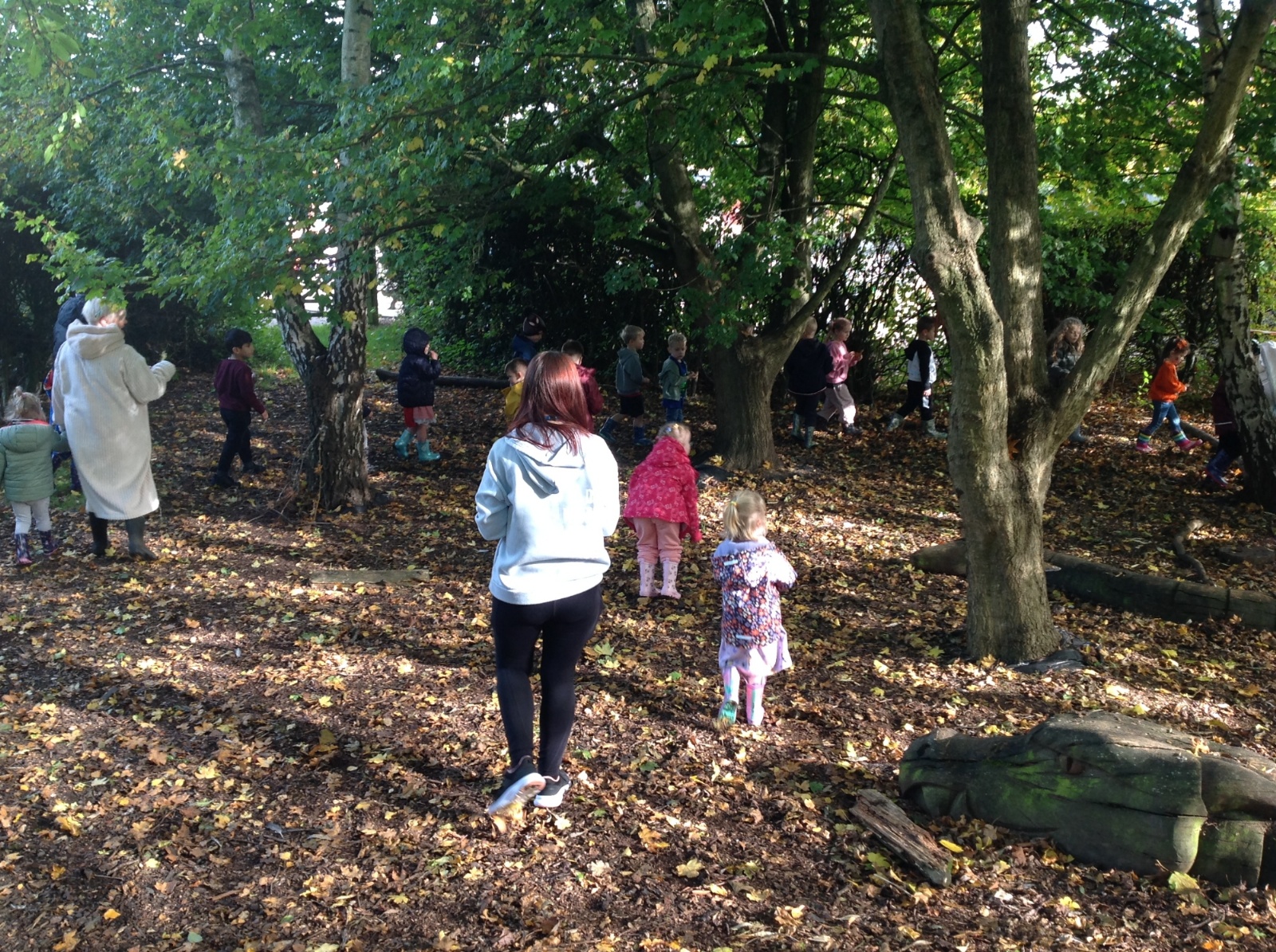 The children enjoyed a lovely walk around the school grounds looking for signs of Autumn, such as leaves on the ground and changing colour. We collected different coloured leaves and had fun throwing them up in the air.