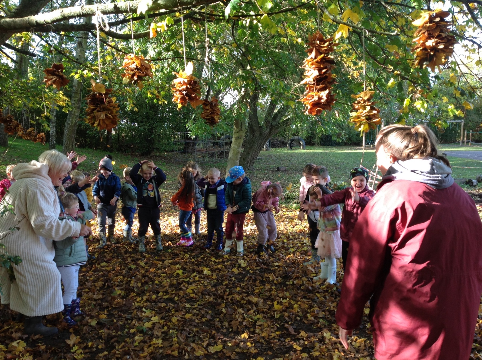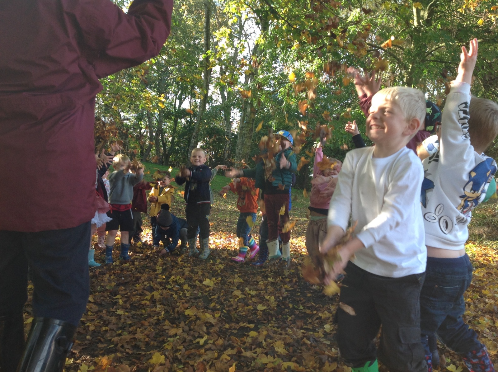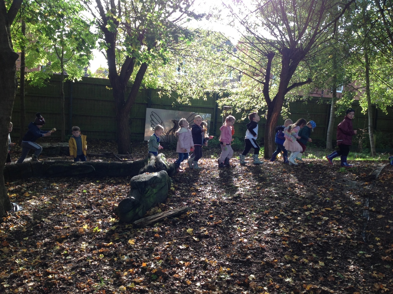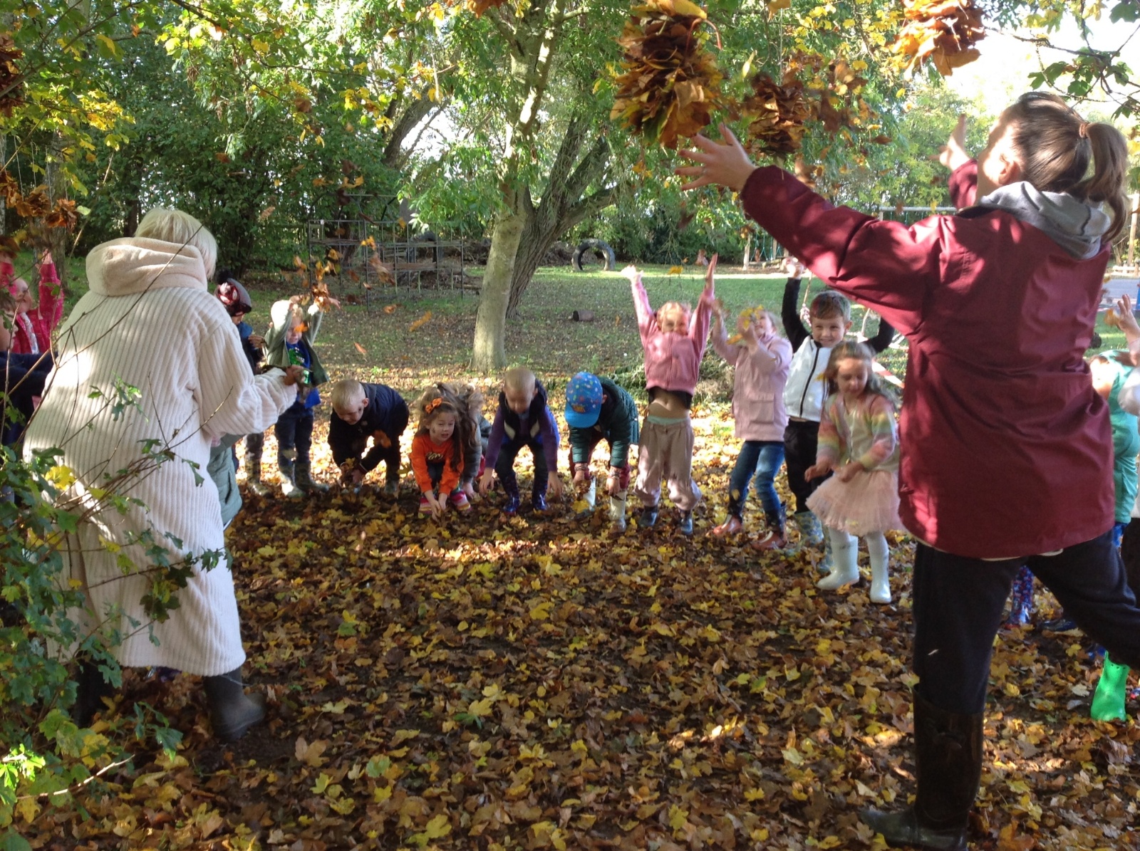 The children enjoyed a lovely walk around the school grounds looking for signs of Autumn, such as leaves on the ground and changing colour. We collected different coloured leaves and had fun throwing them up in the air.