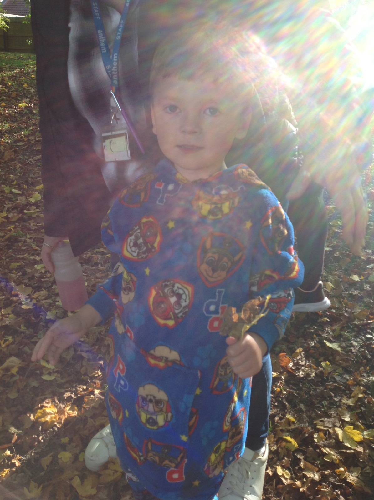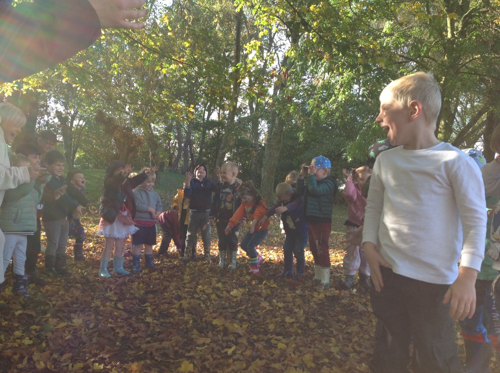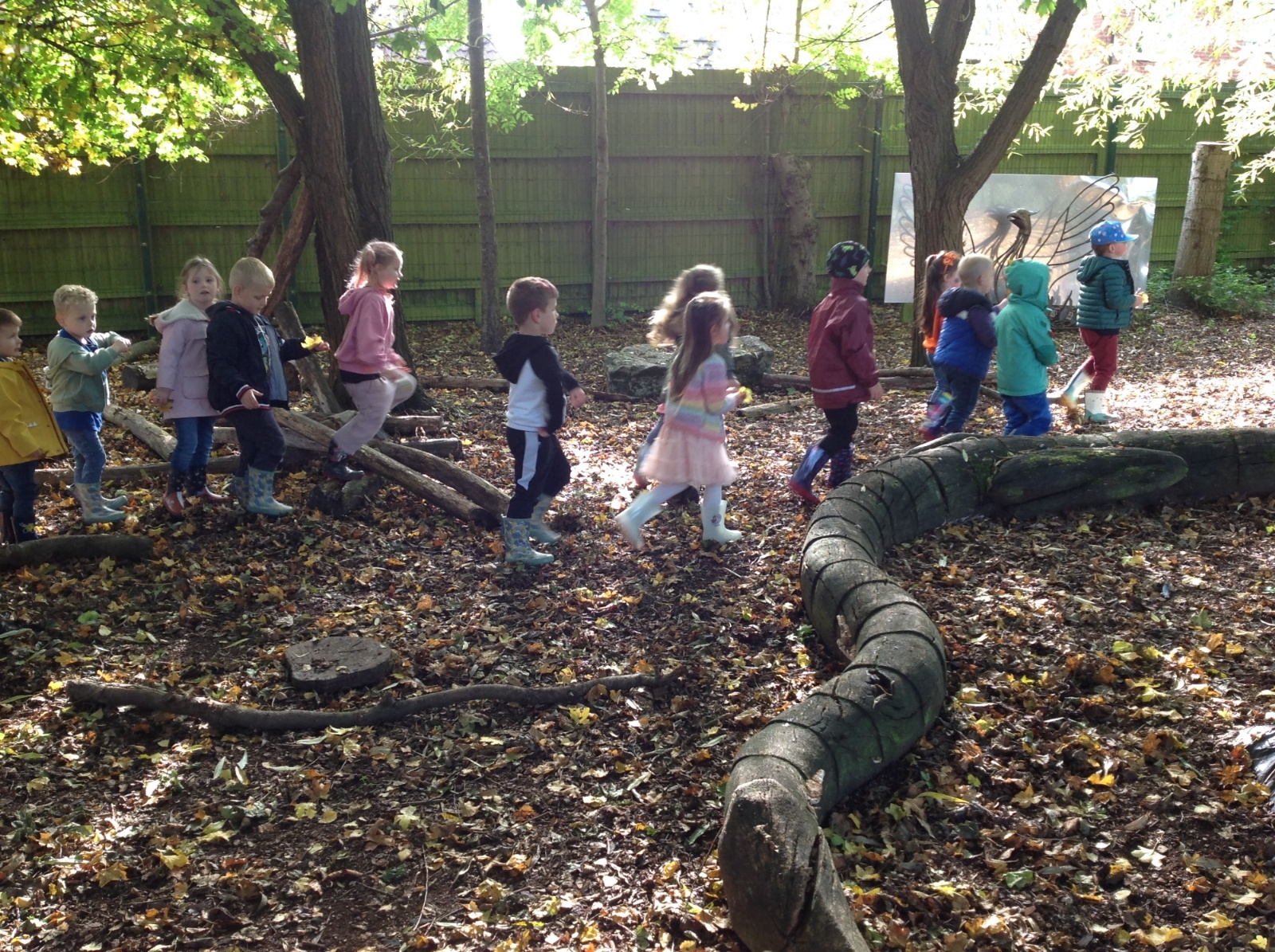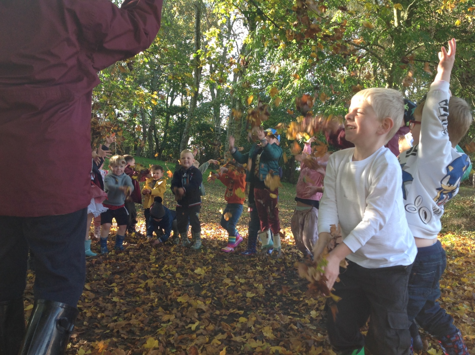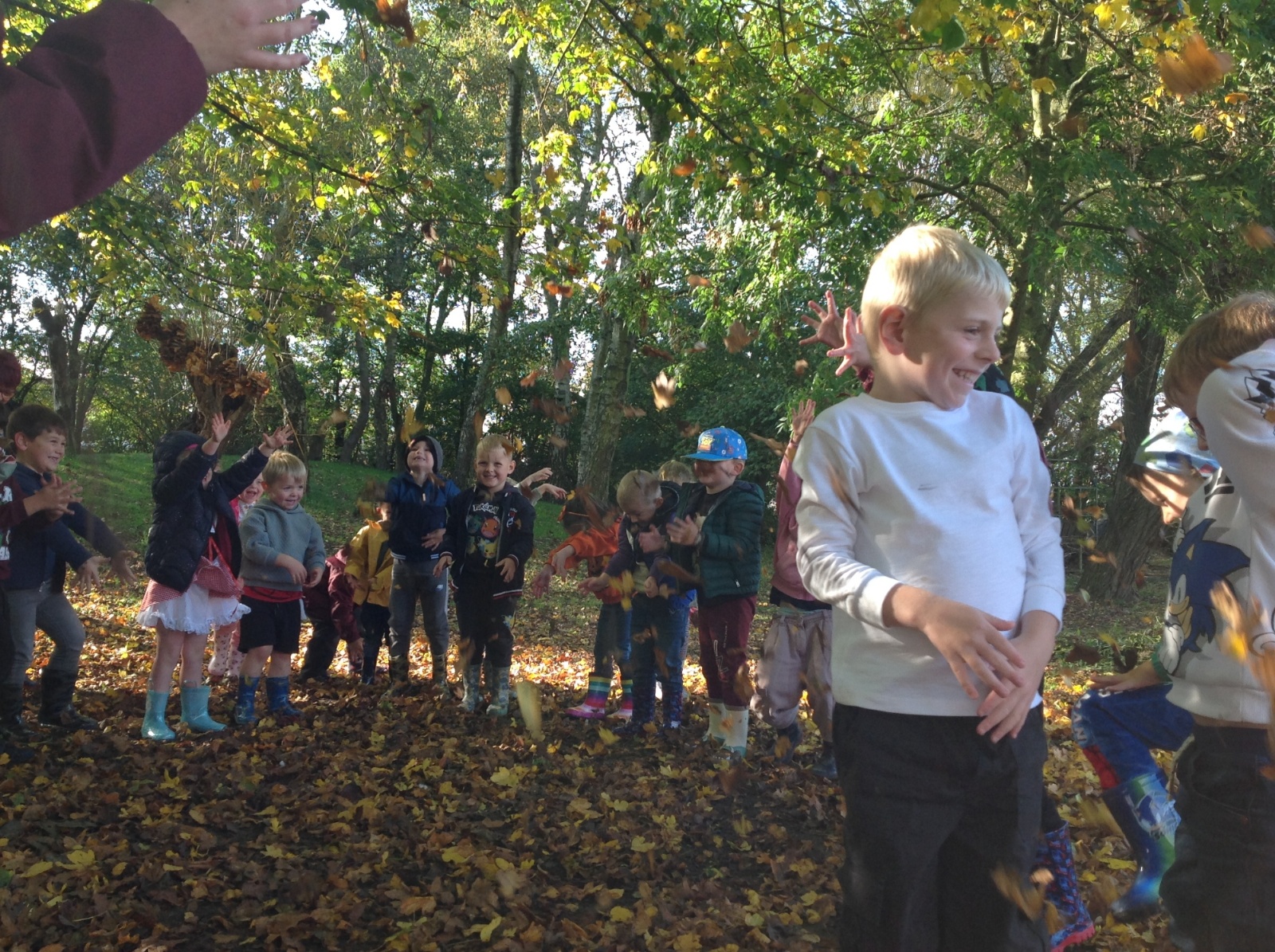 The children enjoyed a lovely walk around the school grounds looking for signs of Autumn, such as leaves on the ground and changing colour. We collected different coloured leaves and had fun throwing them up in the air.