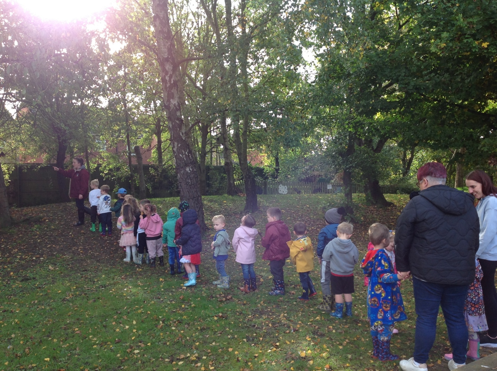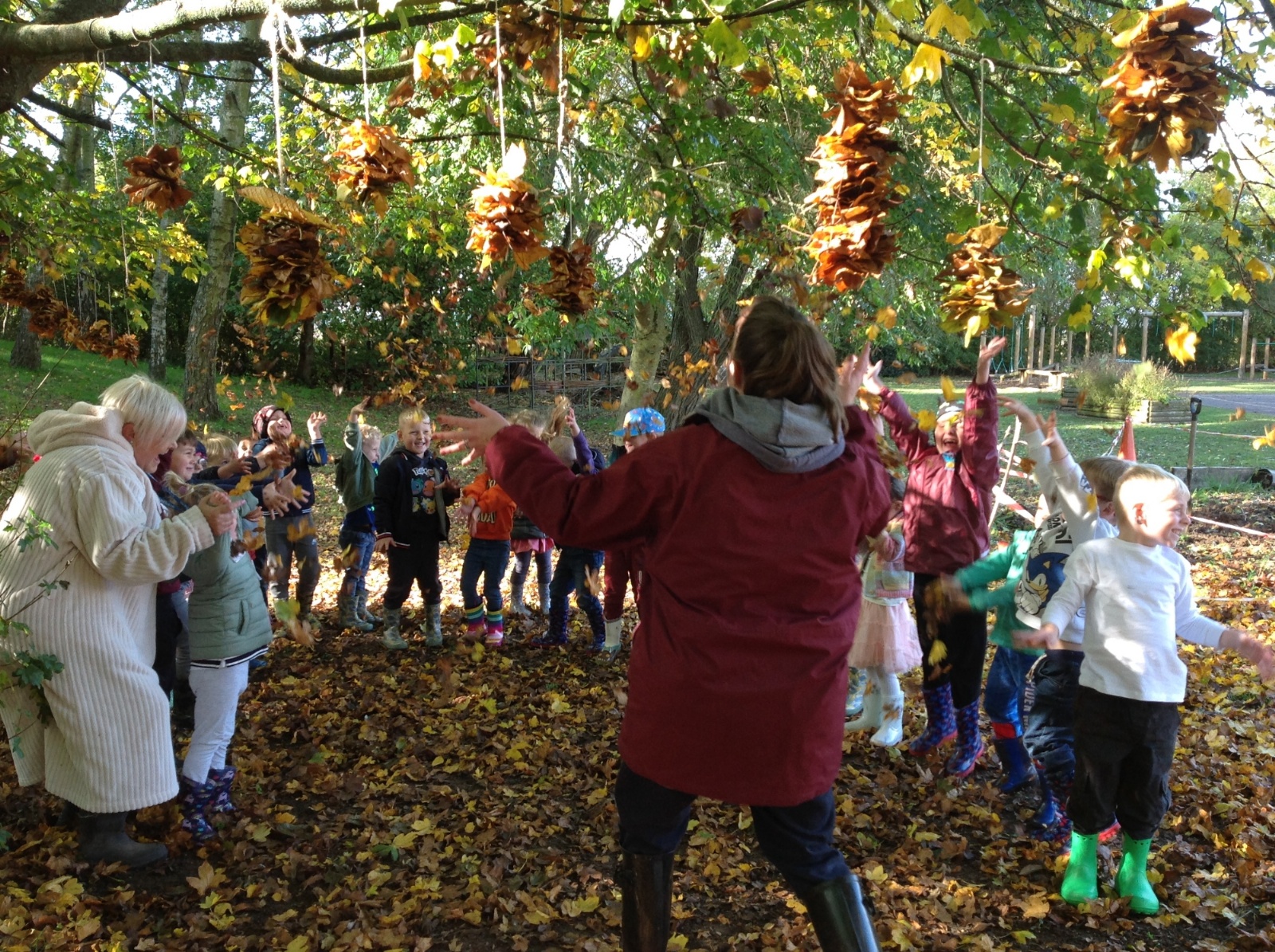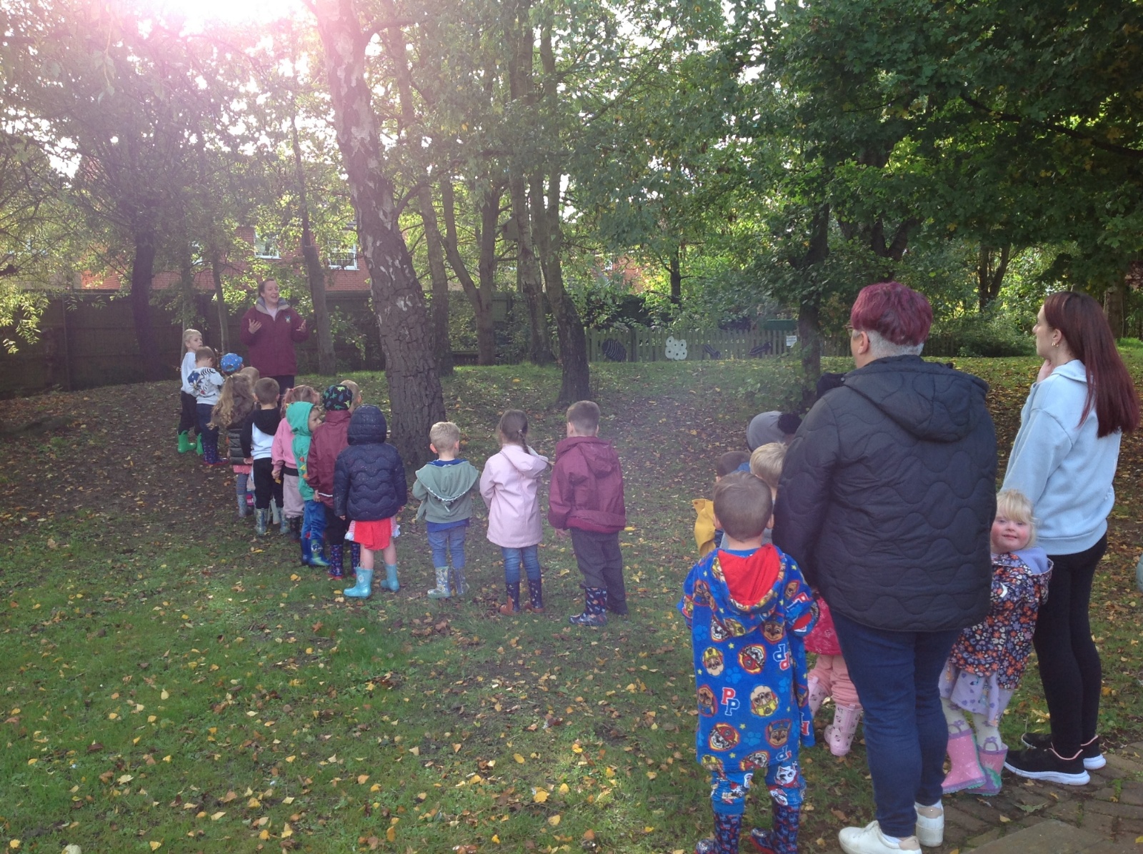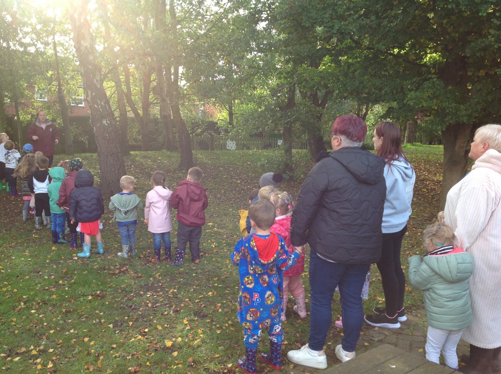 The children enjoyed a lovely walk around the school grounds looking for signs of Autumn, such as leaves on the ground and changing colour. We collected different coloured leaves and had fun throwing them up in the air.