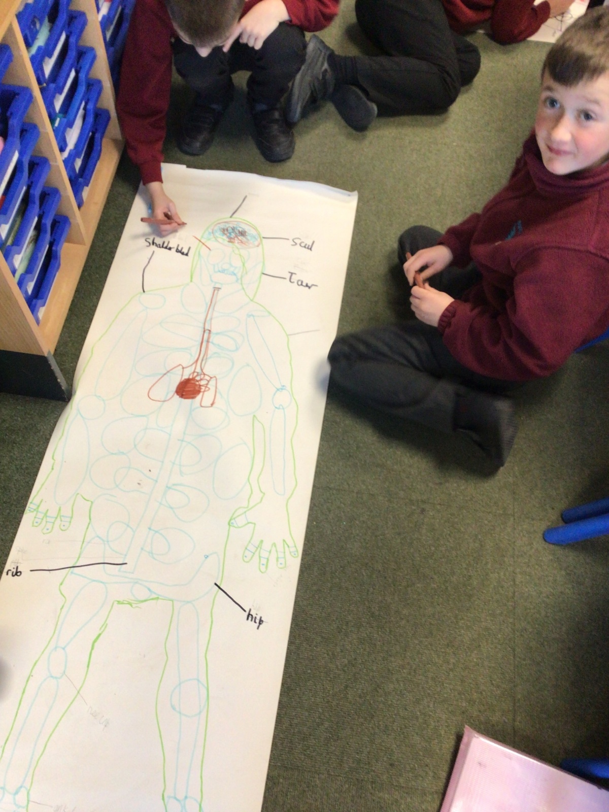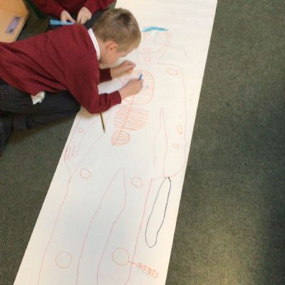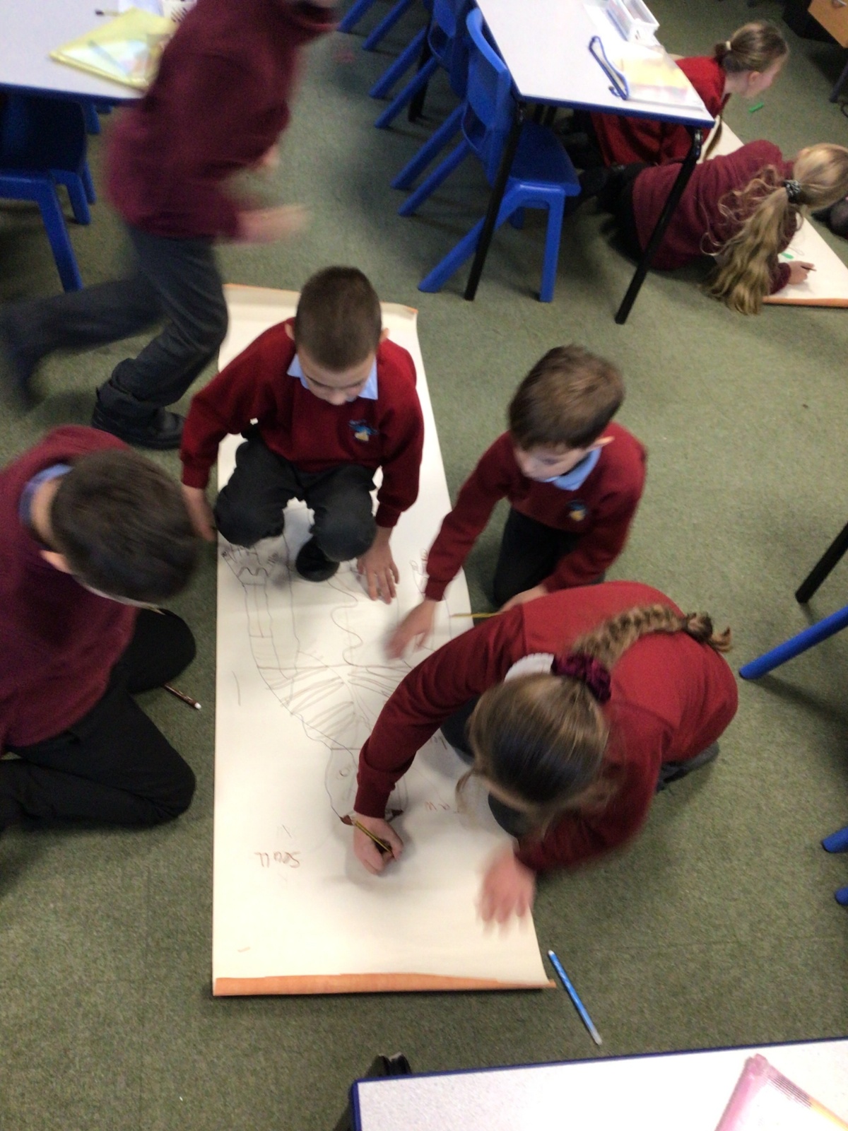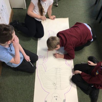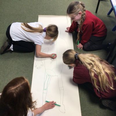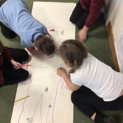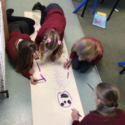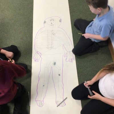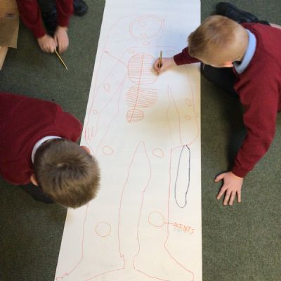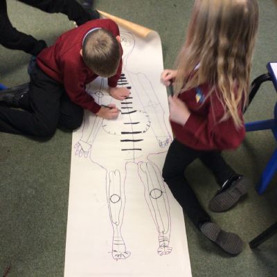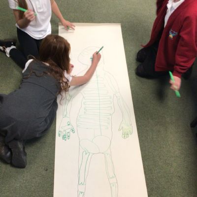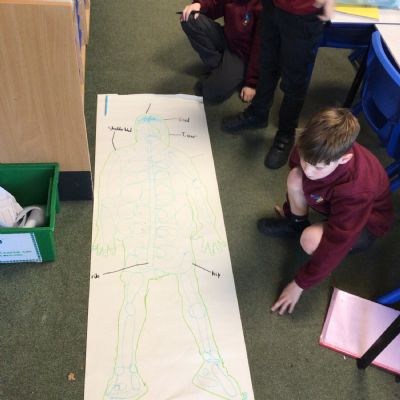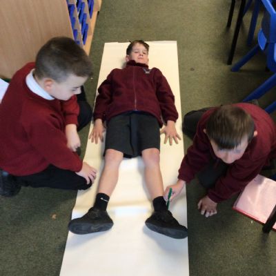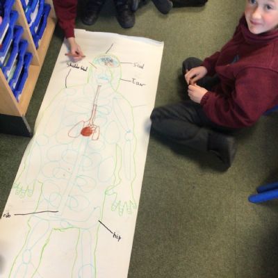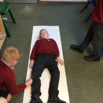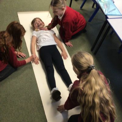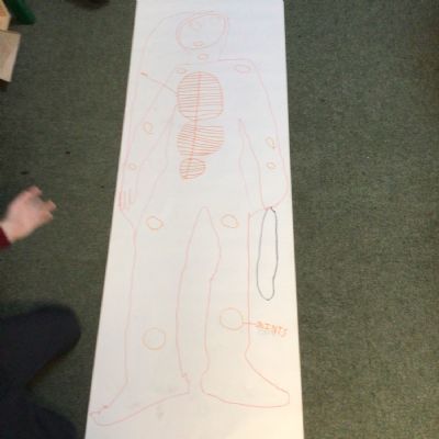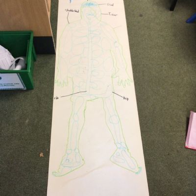We had fun drawing life-sized human bodies, then locating where we thought some of our bones, joints and soft organs might be. We then looked at pictures of human skeletons to see how accurate we had been.