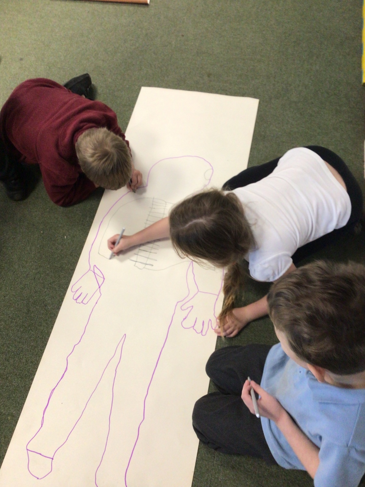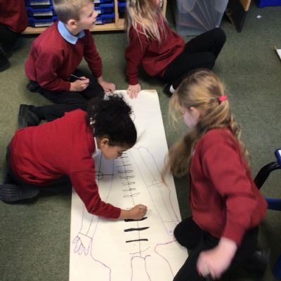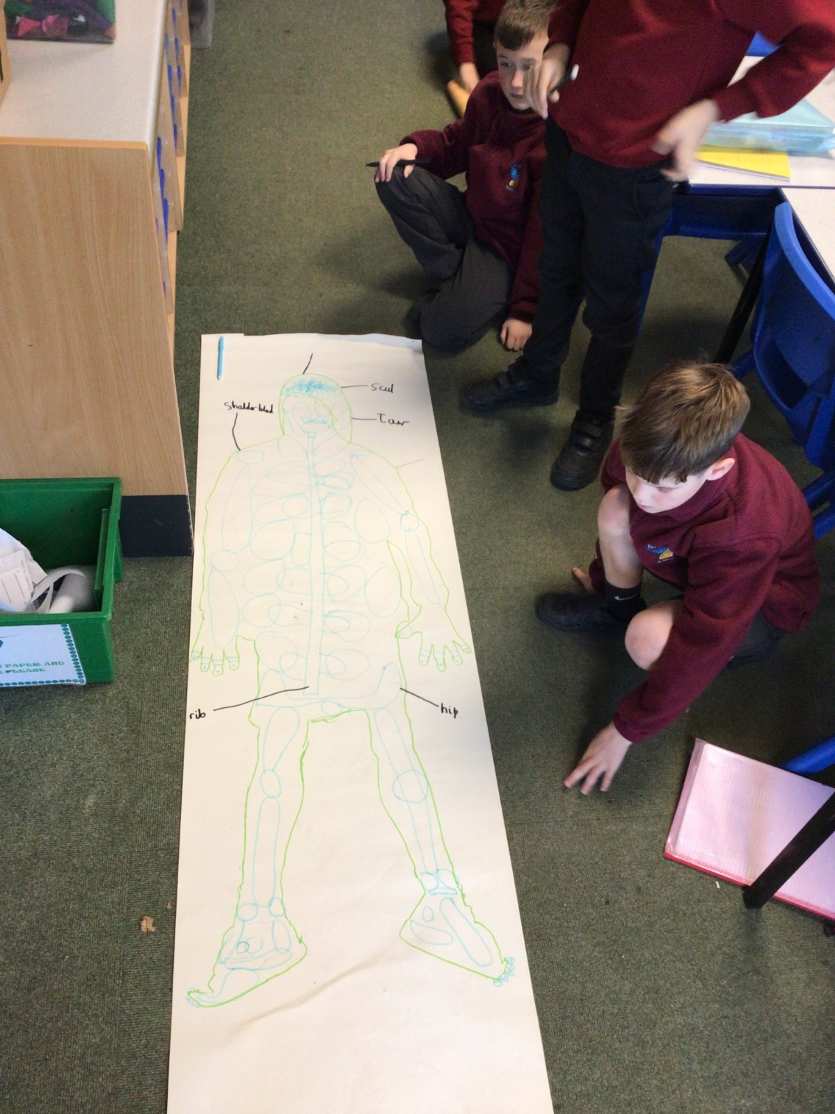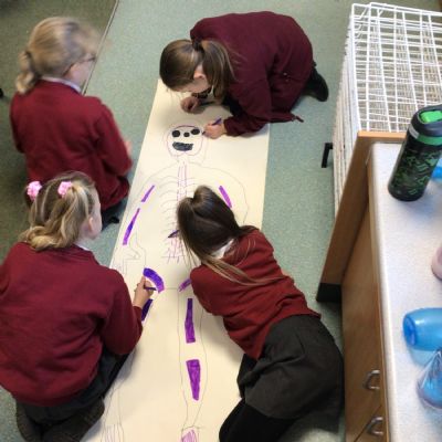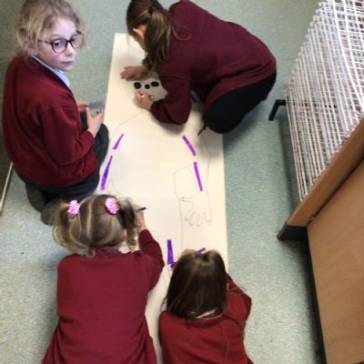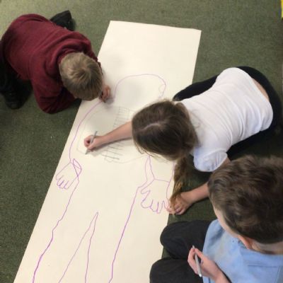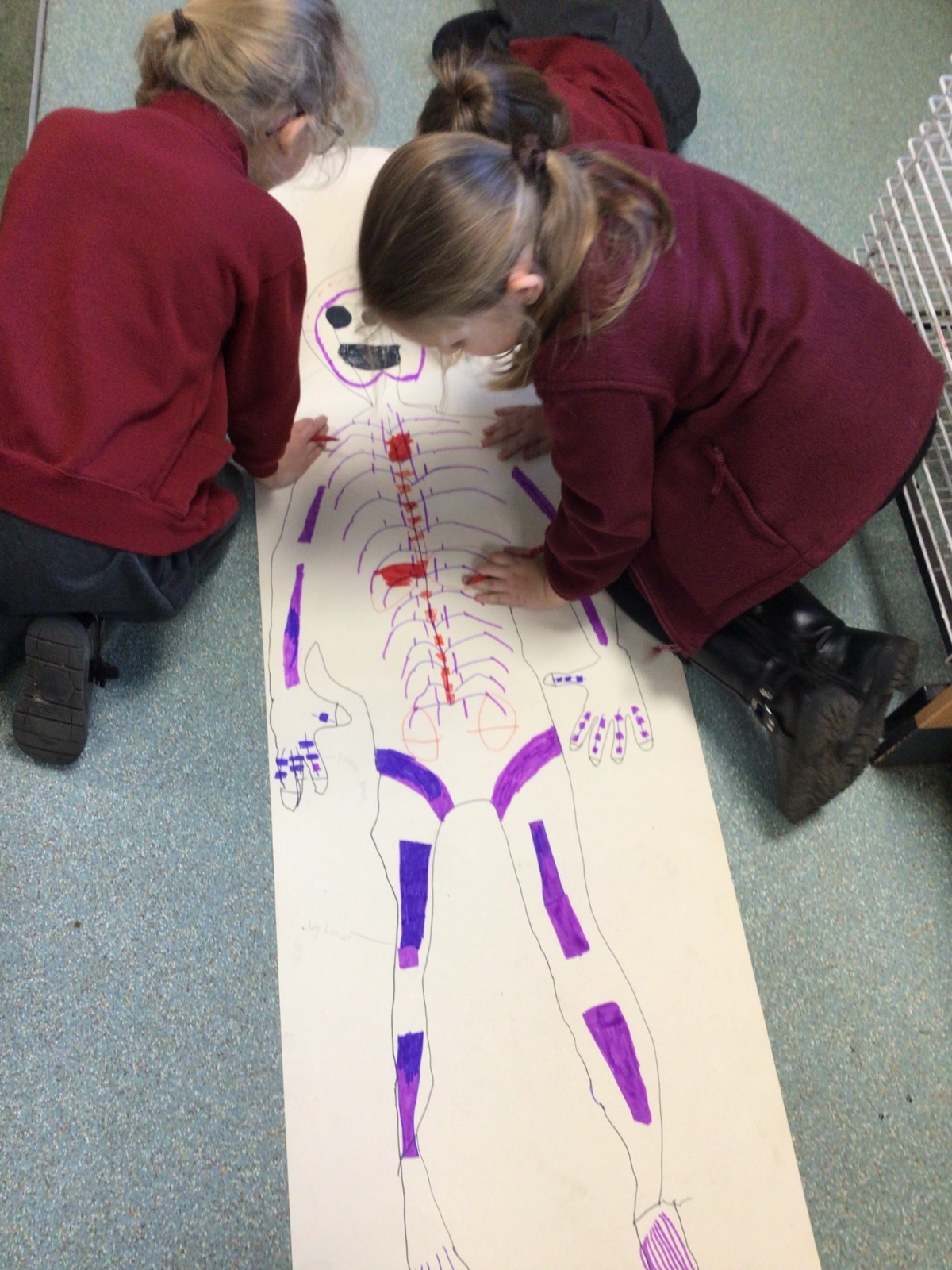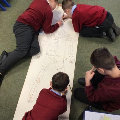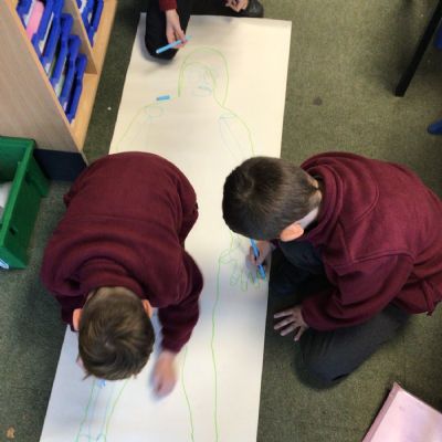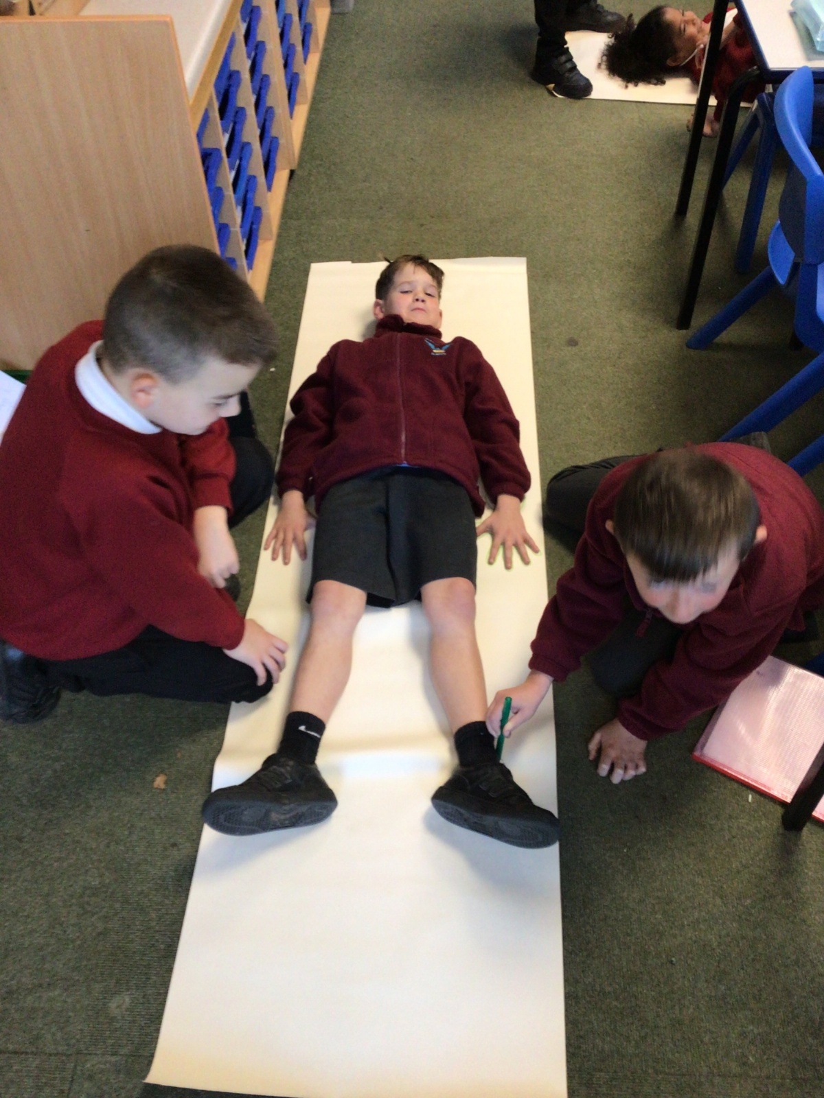 We had fun drawing life-sized human bodies, then locating where we thought some of our bones, joints and soft organs might be. We then looked at pictures of human skeletons to see how accurate we had been.