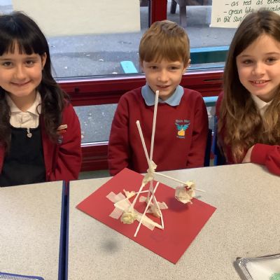 After researching Shaduffs, the children designed their own shaduff to make. They made a mock-up of the Shaduff, practising skills and ensuring their design would be sturdy and that the beam would balance as well as move to collect water.