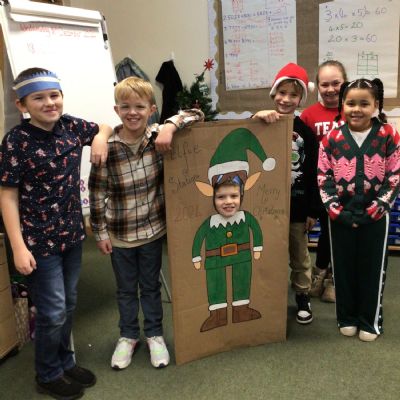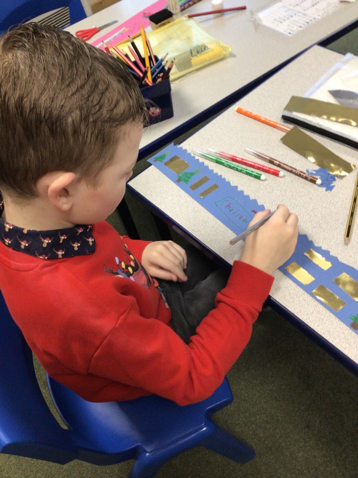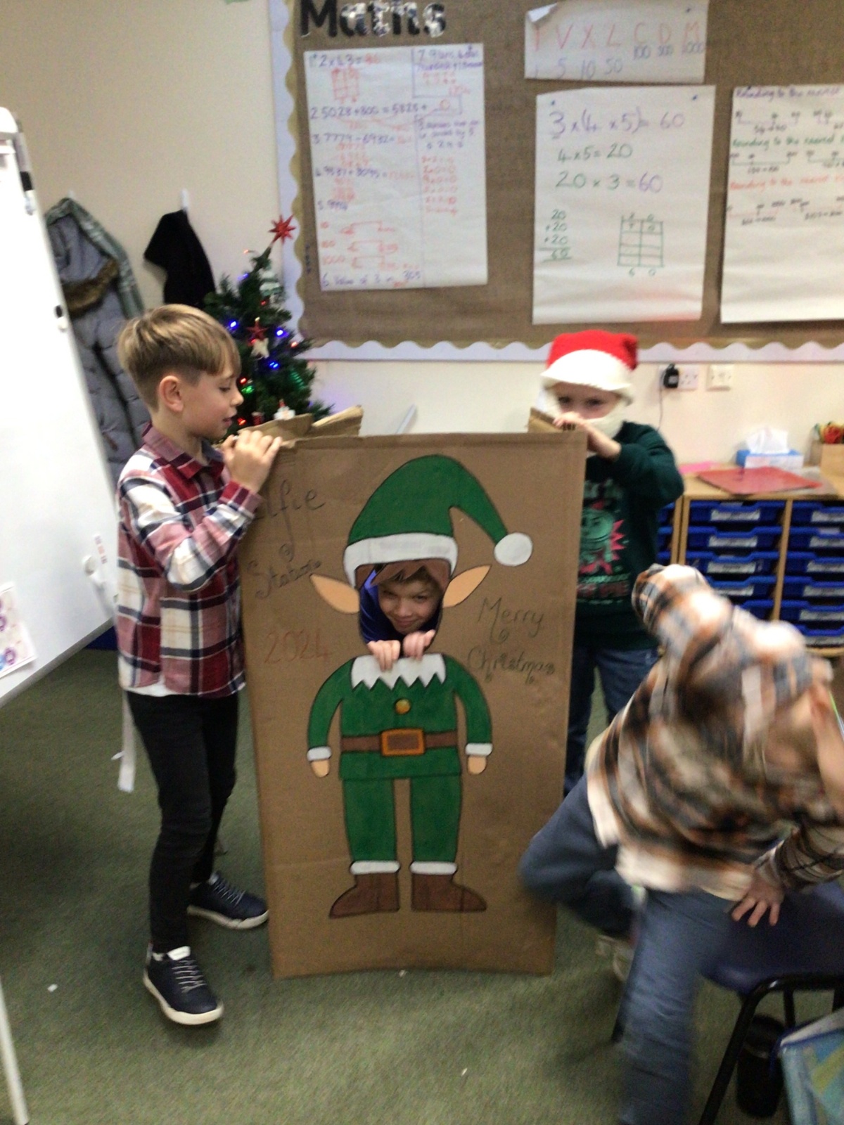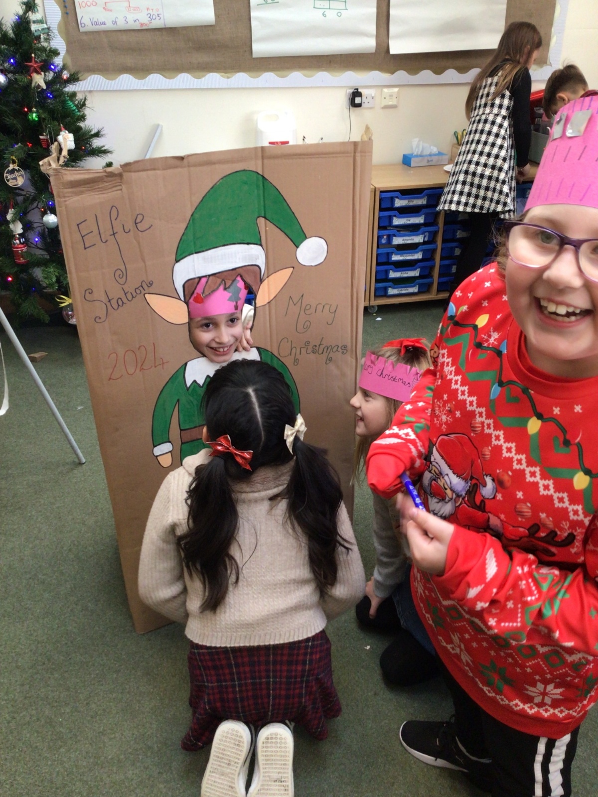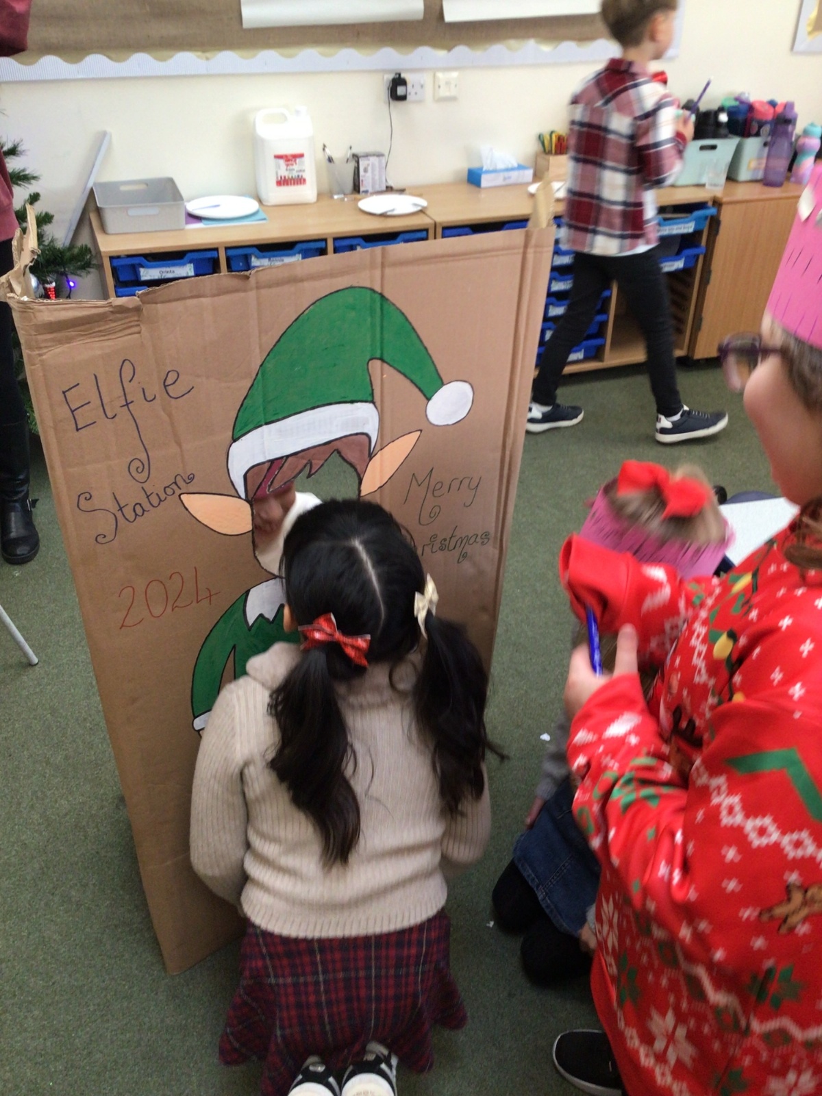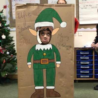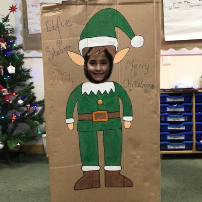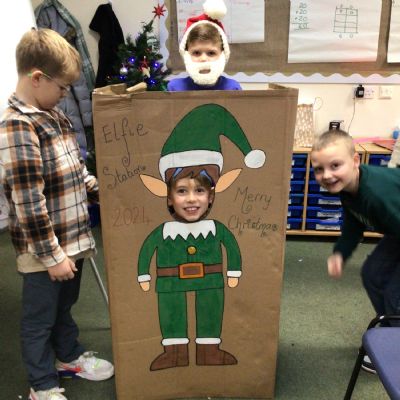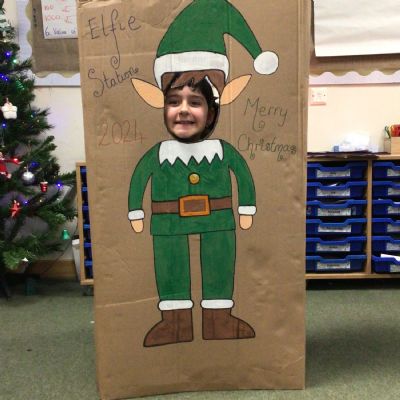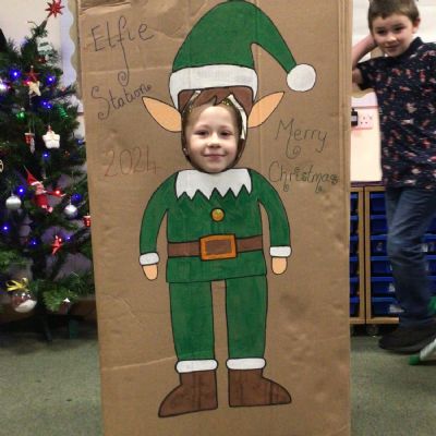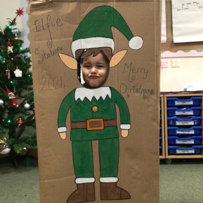 The elf delivered an 'elfie station' this morning which the children have loved! We have made Christmas hats and Christmas cards, sang along to Christmas music and even completed a Christmas quiz.