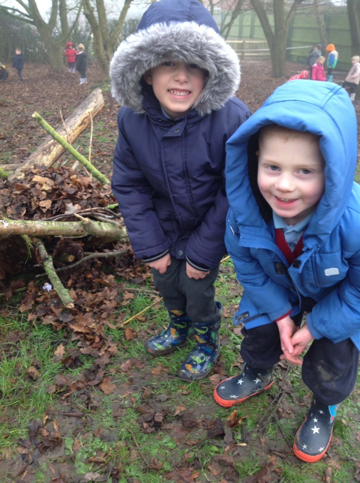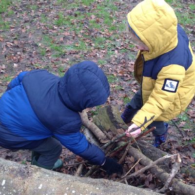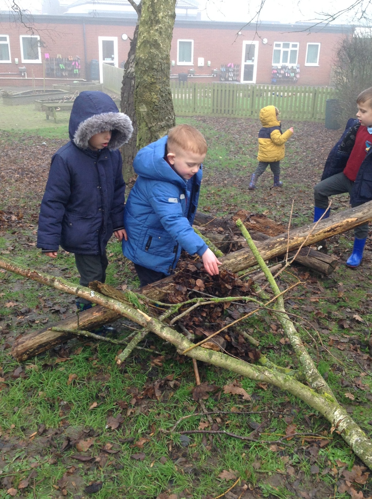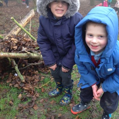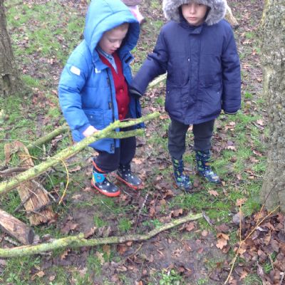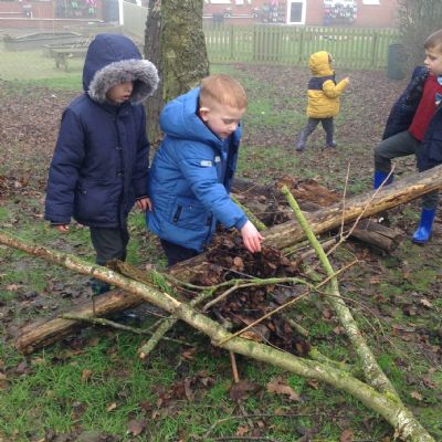 The children showed great teamwork when building a shelter for an astronaut. They used lots of natural resources and carefully thought about how best to use them, making sure the astronaut will be safe, dry and warm.