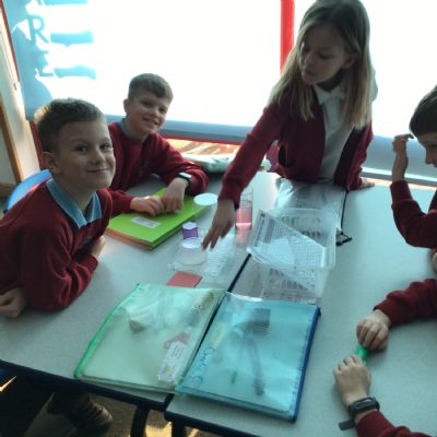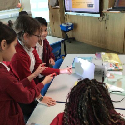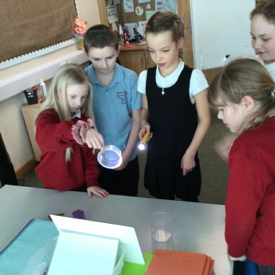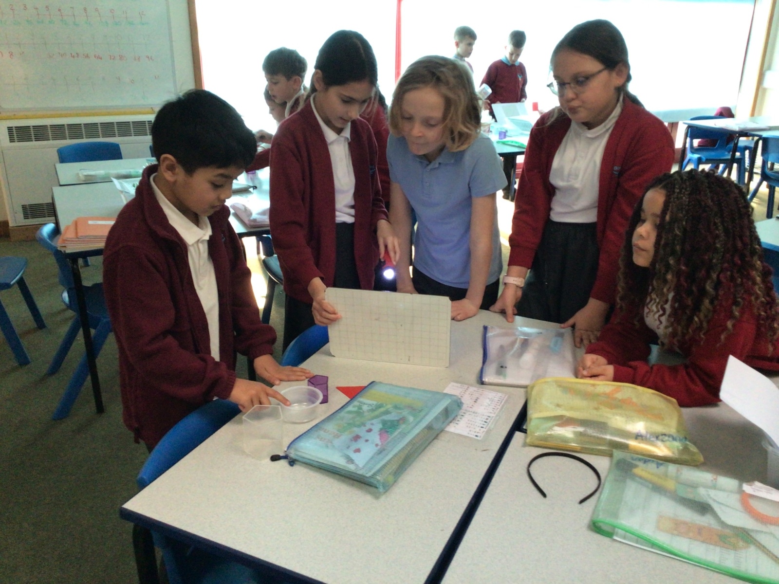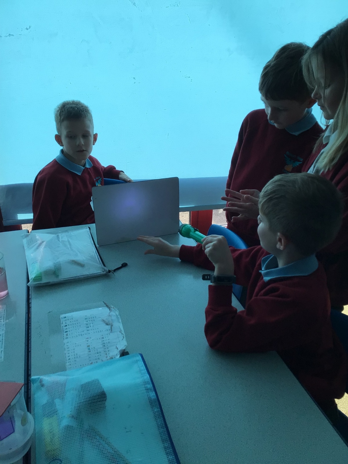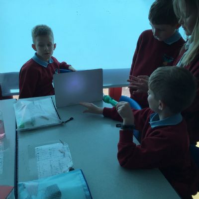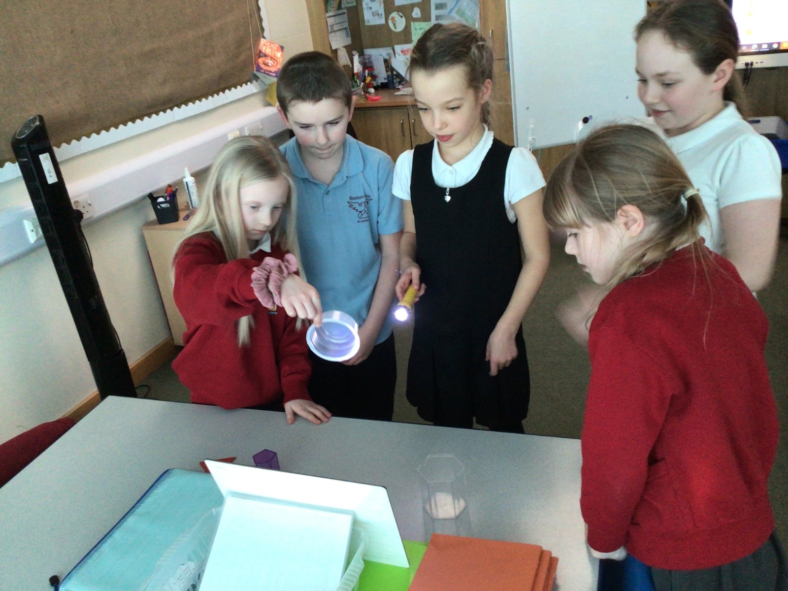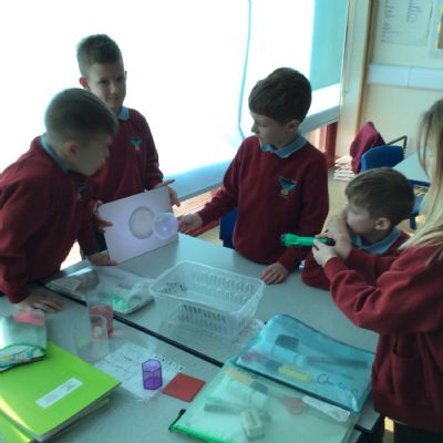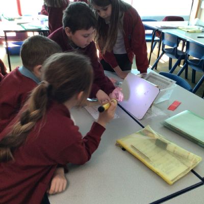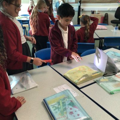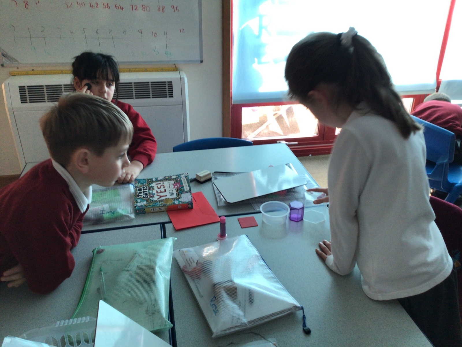Children then looked at different materials to predict which item would make the darkest shadow. The children used the vocabulary of transparent, translucent and opaque to make their predictions, giving reasoning as to why they thought it would make the darkest shadow. The children then checked their predictions with a comparative test. The children discovered that opaque items make the darkest shadows as they do not allow light to pass through them.