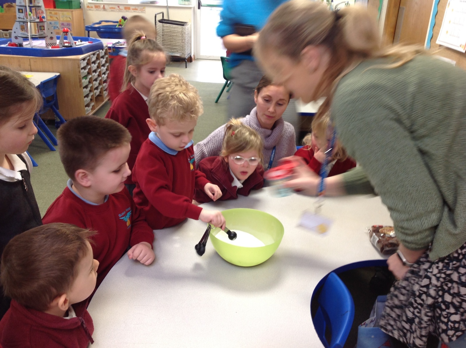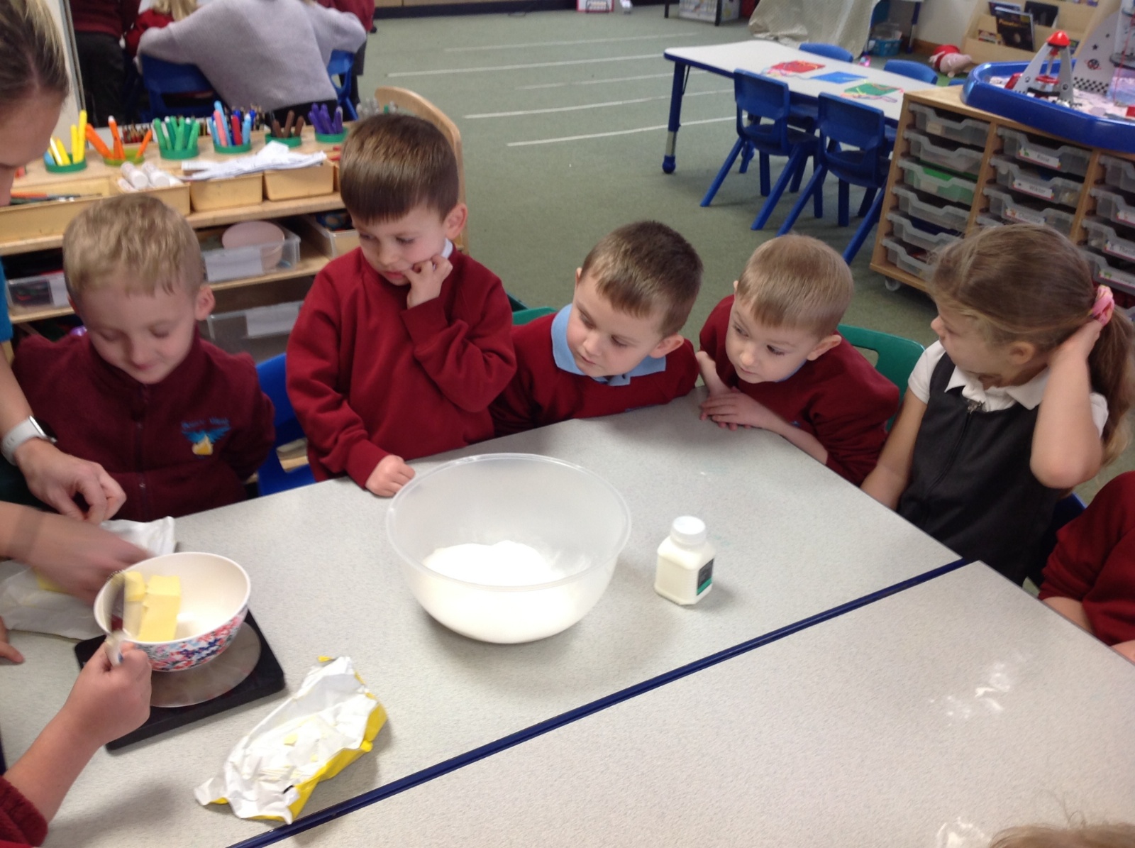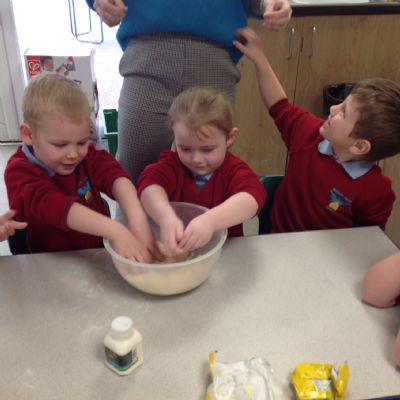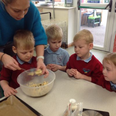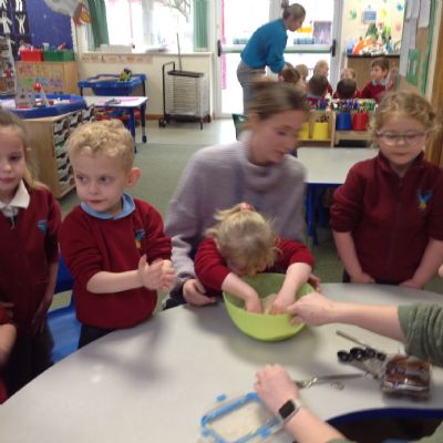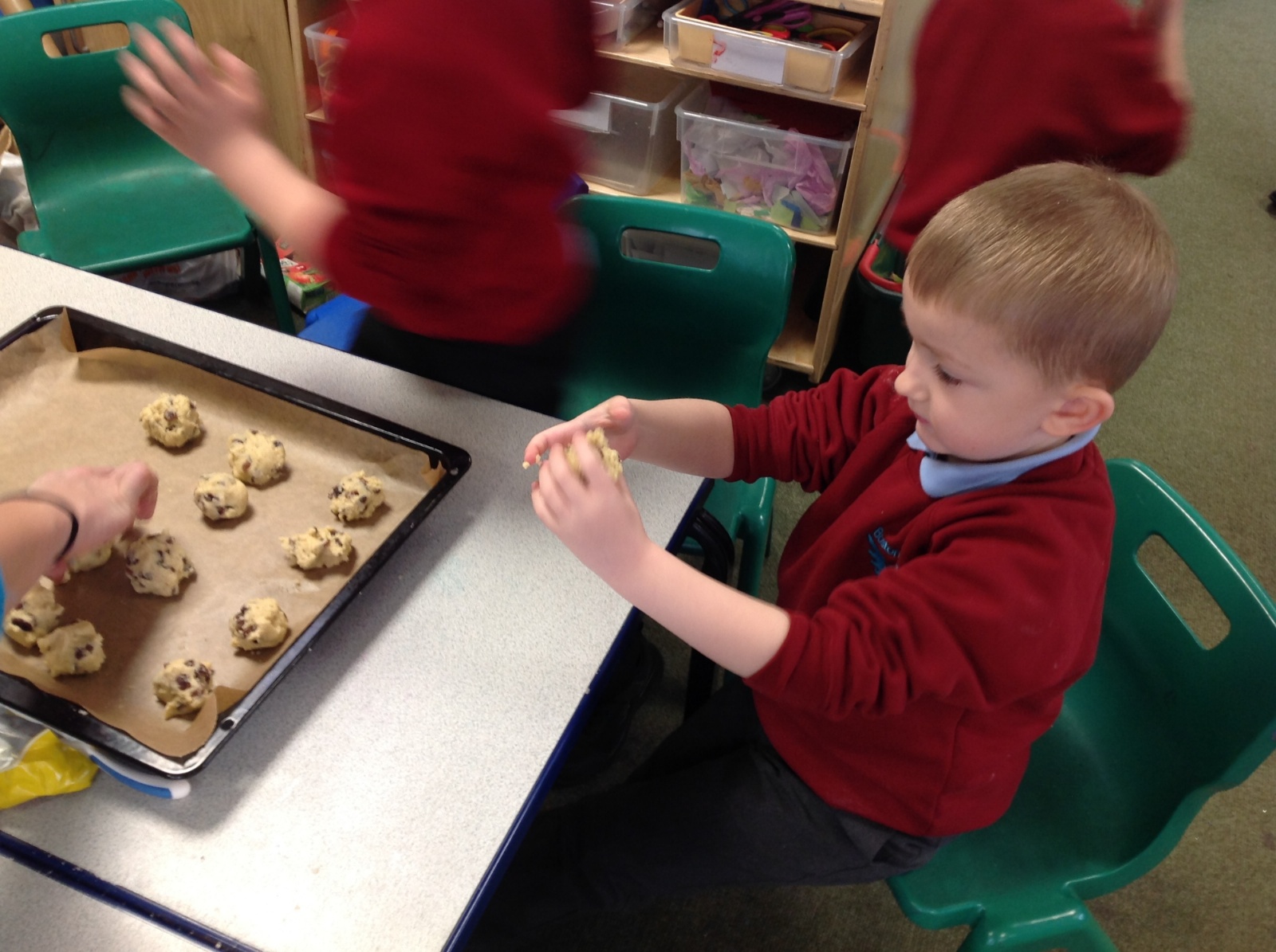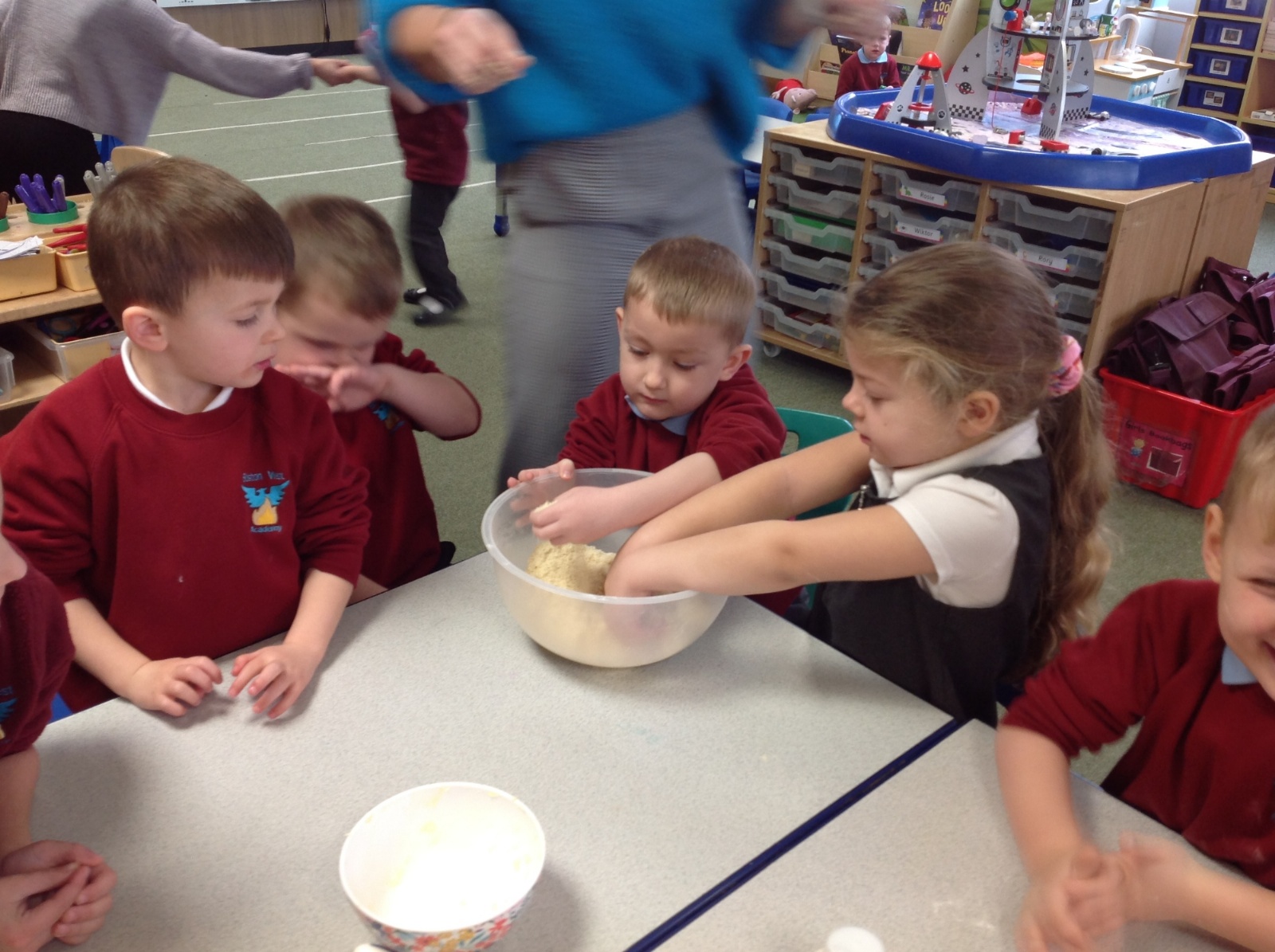 The children have been learning about Space and we have read the story 'Whatever next' which is all about a bear who went to the moon and had a picnic. The children enjoyed making some moon rock cakes to take with them to the moon to join the bears picnic. They all had a turn at helping make the cakes and particularly enjoyed eating them at the end of the day whilst listening to a story. If you would like to make them at home we used the recipe on the BBC website https://www.bbc.co.uk/food/recipes/rock_cakes_03094.