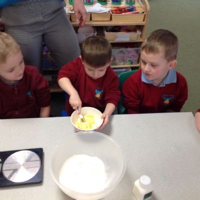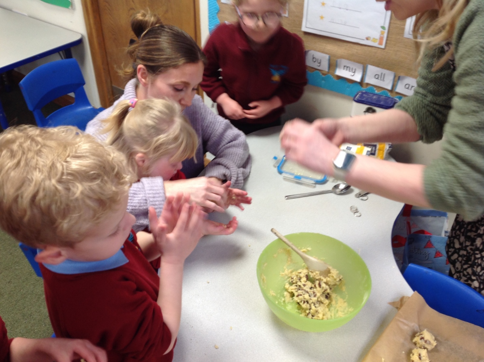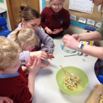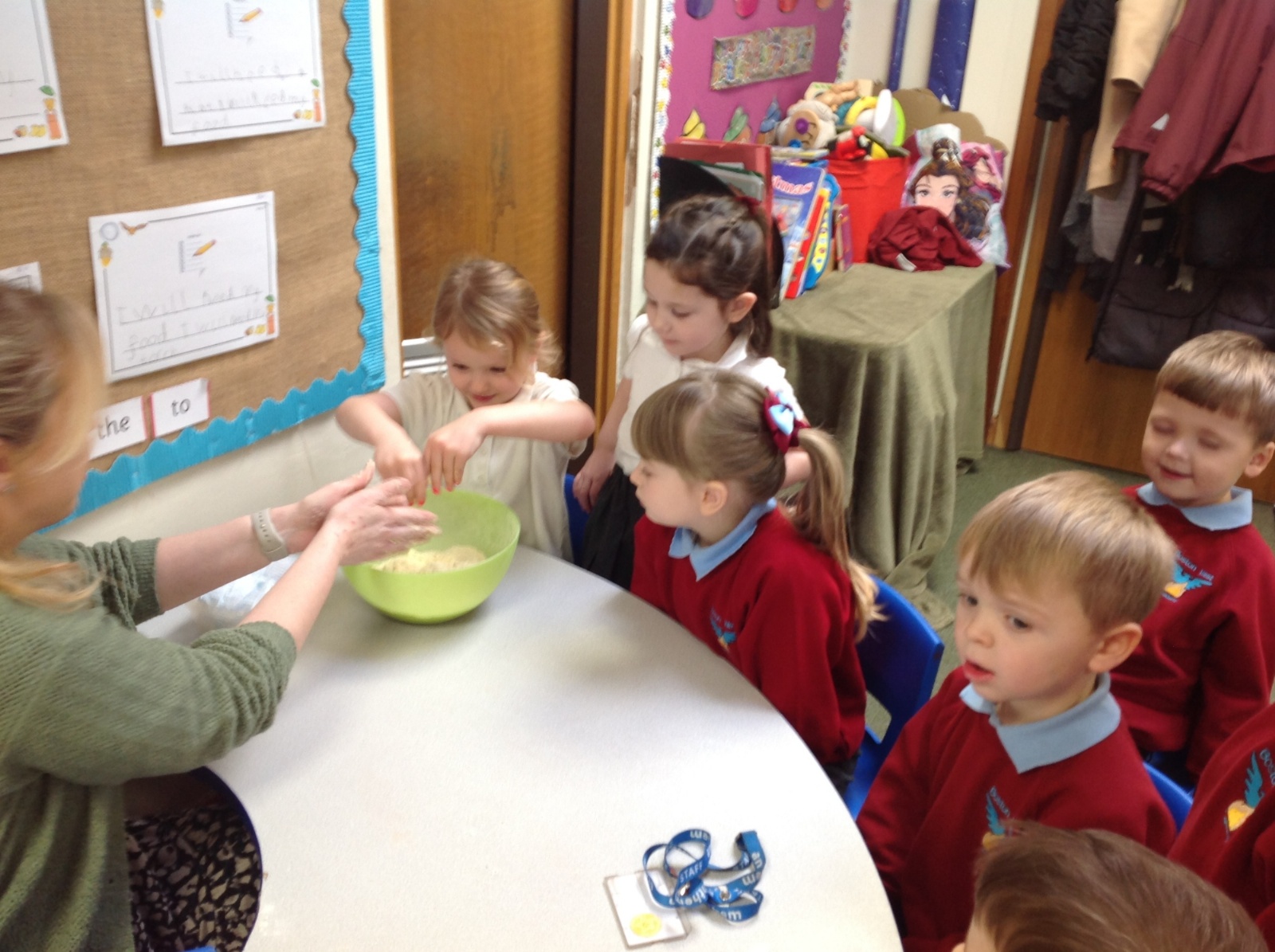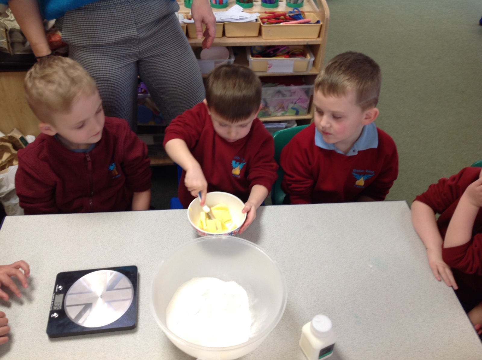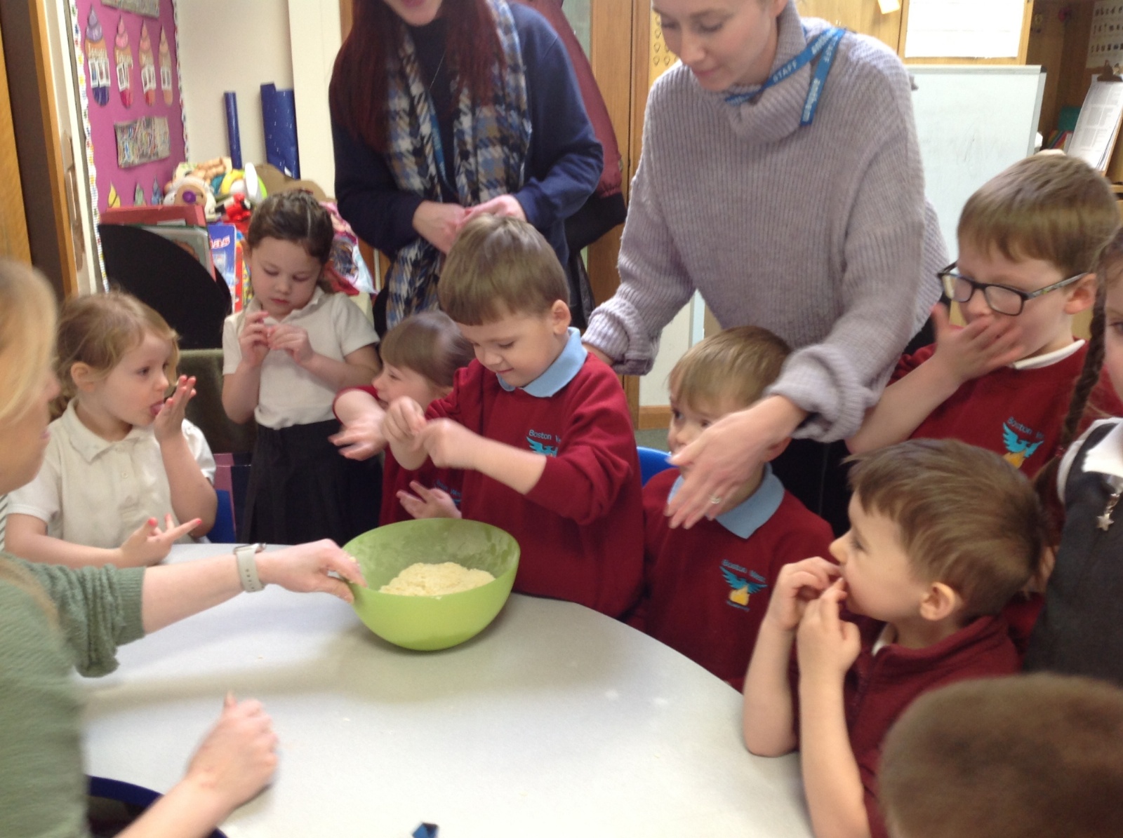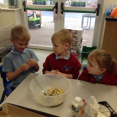 The children have been learning about Space and we have read the story 'Whatever next' which is all about a bear who went to the moon and had a picnic. The children enjoyed making some moon rock cakes to take with them to the moon to join the bears picnic. They all had a turn at helping make the cakes and particularly enjoyed eating them at the end of the day whilst listening to a story. If you would like to make them at home we used the recipe on the BBC website https://www.bbc.co.uk/food/recipes/rock_cakes_03094.