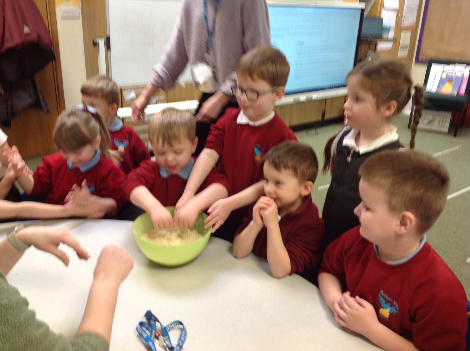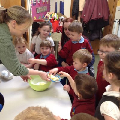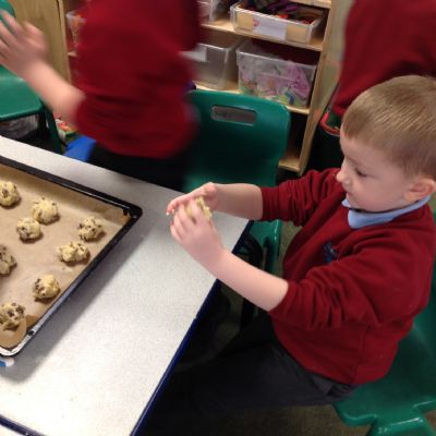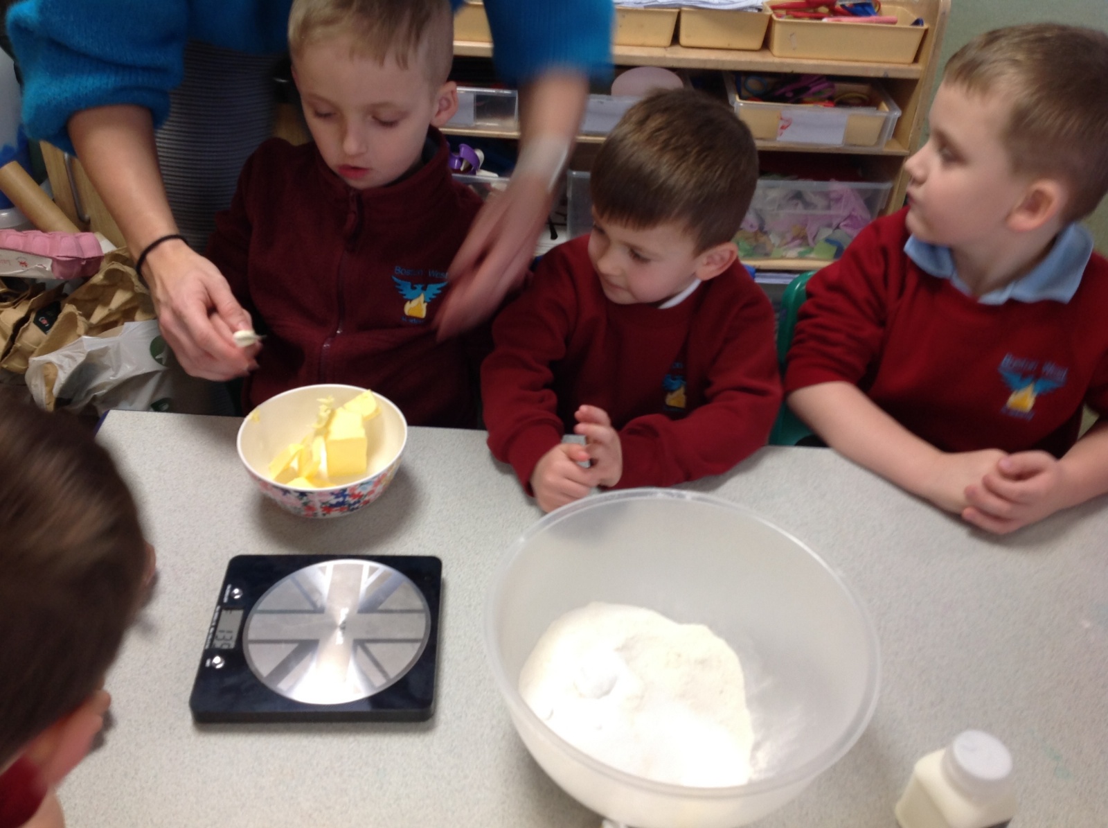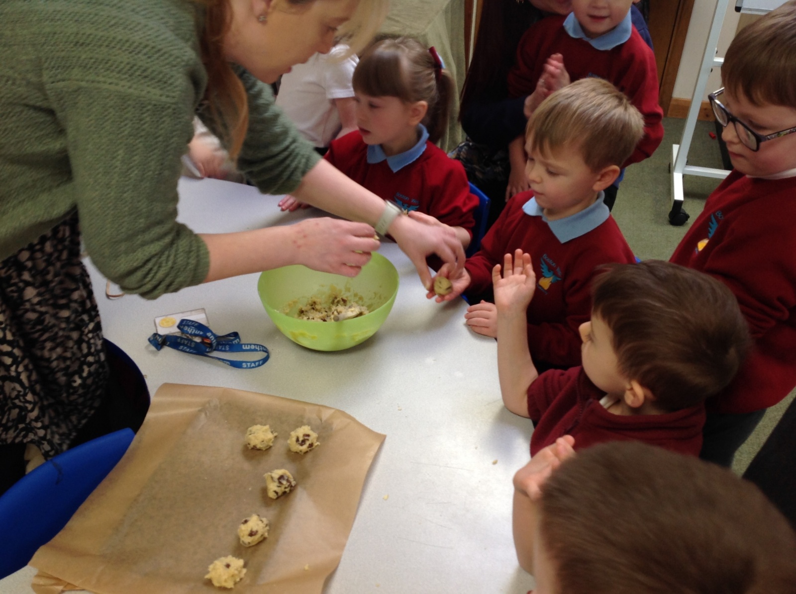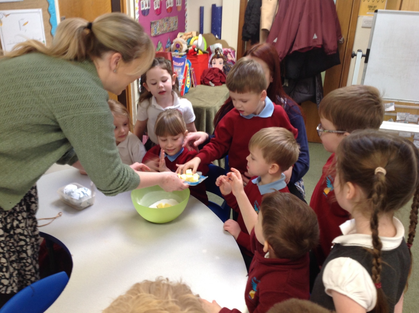 The children have been learning about Space and we have read the story 'Whatever next' which is all about a bear who went to the moon and had a picnic. The children enjoyed making some moon rock cakes to take with them to the moon to join the bears picnic. They all had a turn at helping make the cakes and particularly enjoyed eating them at the end of the day whilst listening to a story. If you would like to make them at home we used the recipe on the BBC website https://www.bbc.co.uk/food/recipes/rock_cakes_03094.