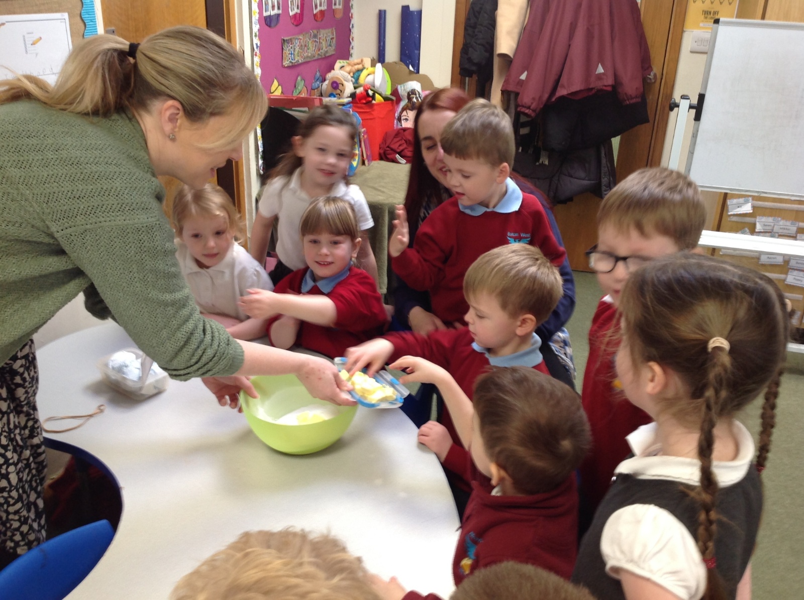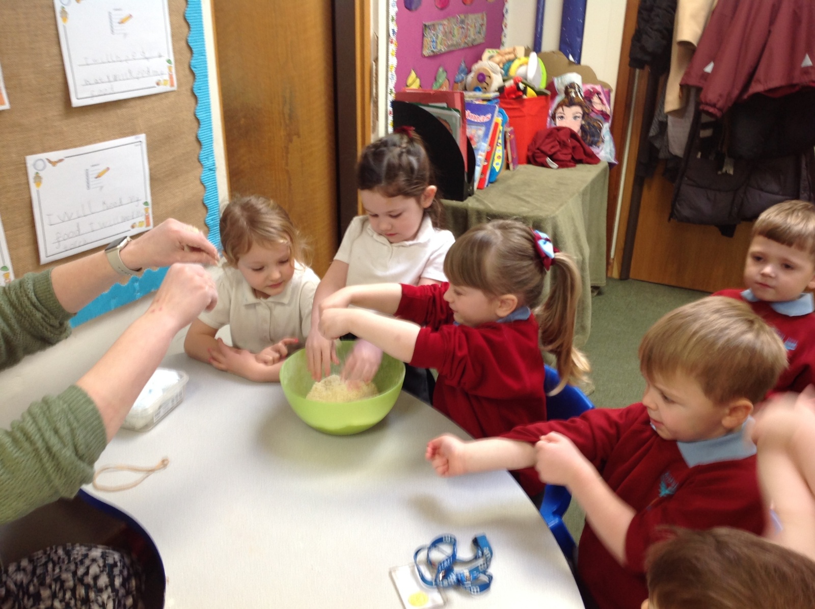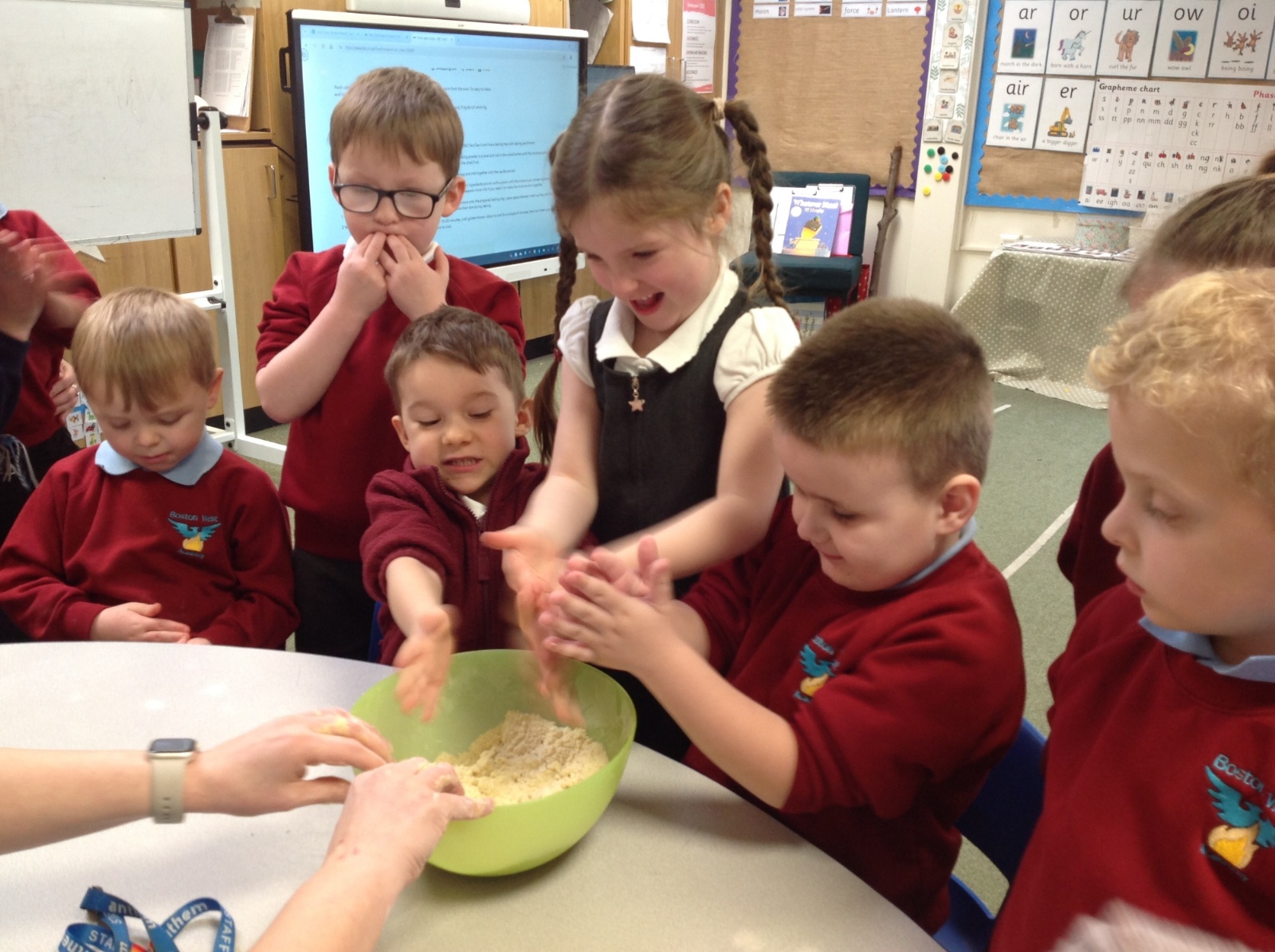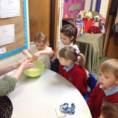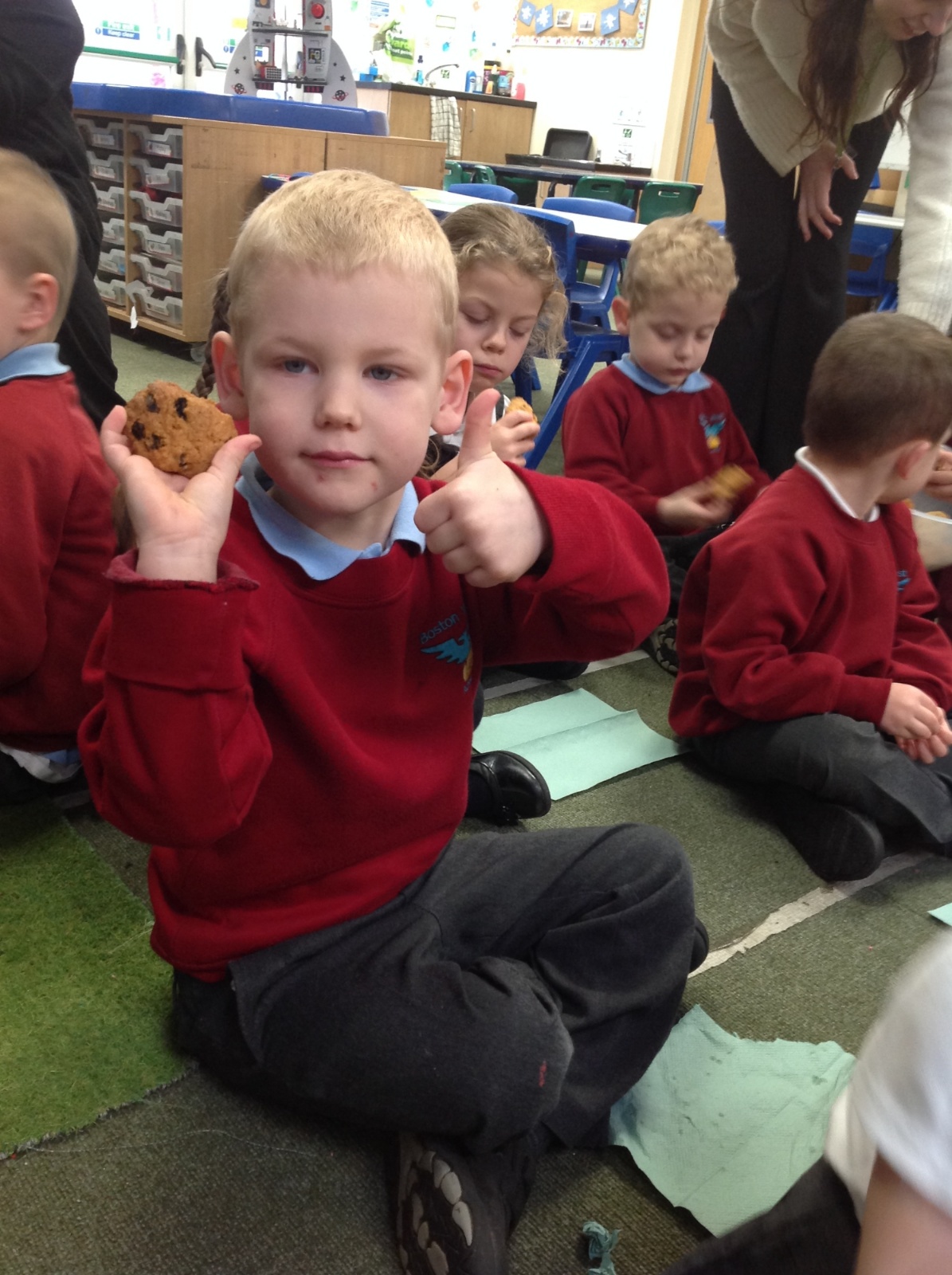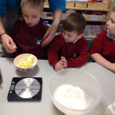 The children have been learning about Space and we have read the story 'Whatever next' which is all about a bear who went to the moon and had a picnic. The children enjoyed making some moon rock cakes to take with them to the moon to join the bears picnic. They all had a turn at helping make the cakes and particularly enjoyed eating them at the end of the day whilst listening to a story. If you would like to make them at home we used the recipe on the BBC website https://www.bbc.co.uk/food/recipes/rock_cakes_03094.
