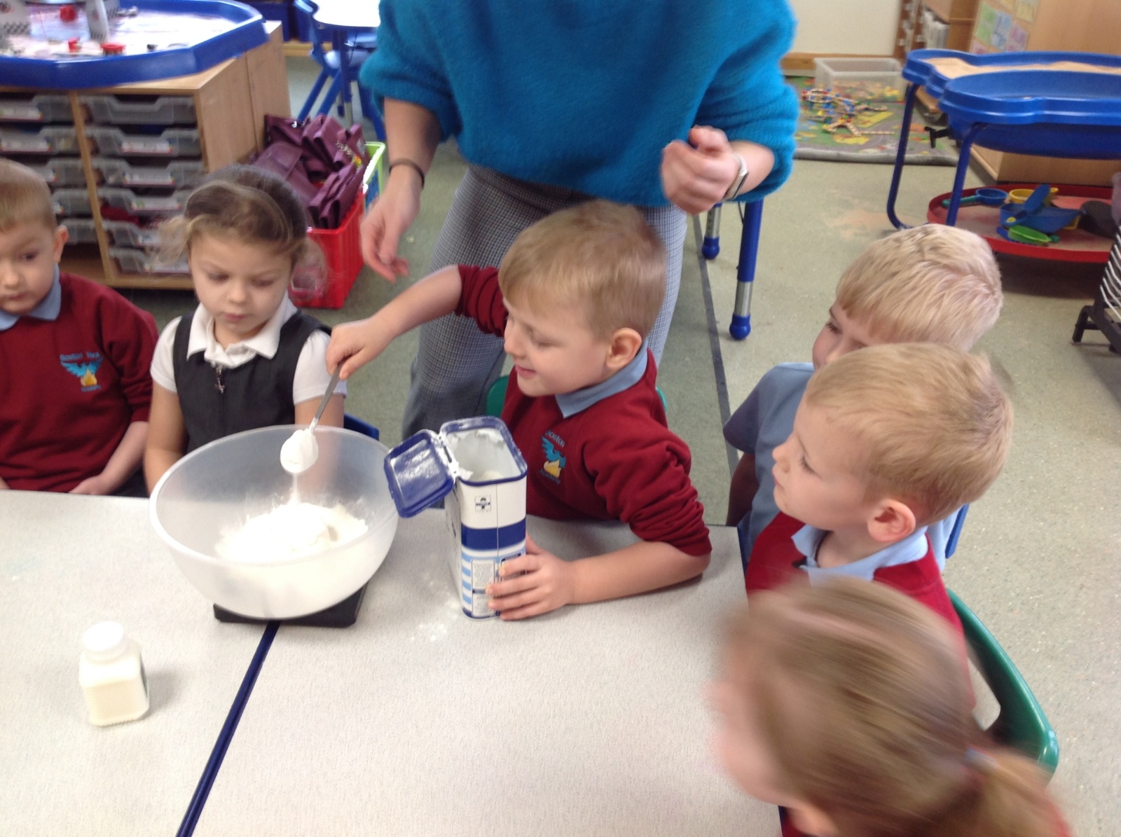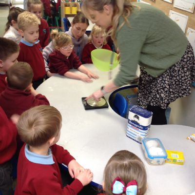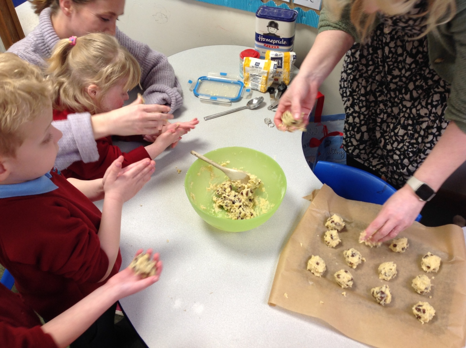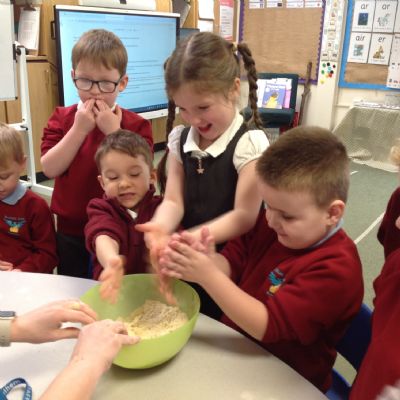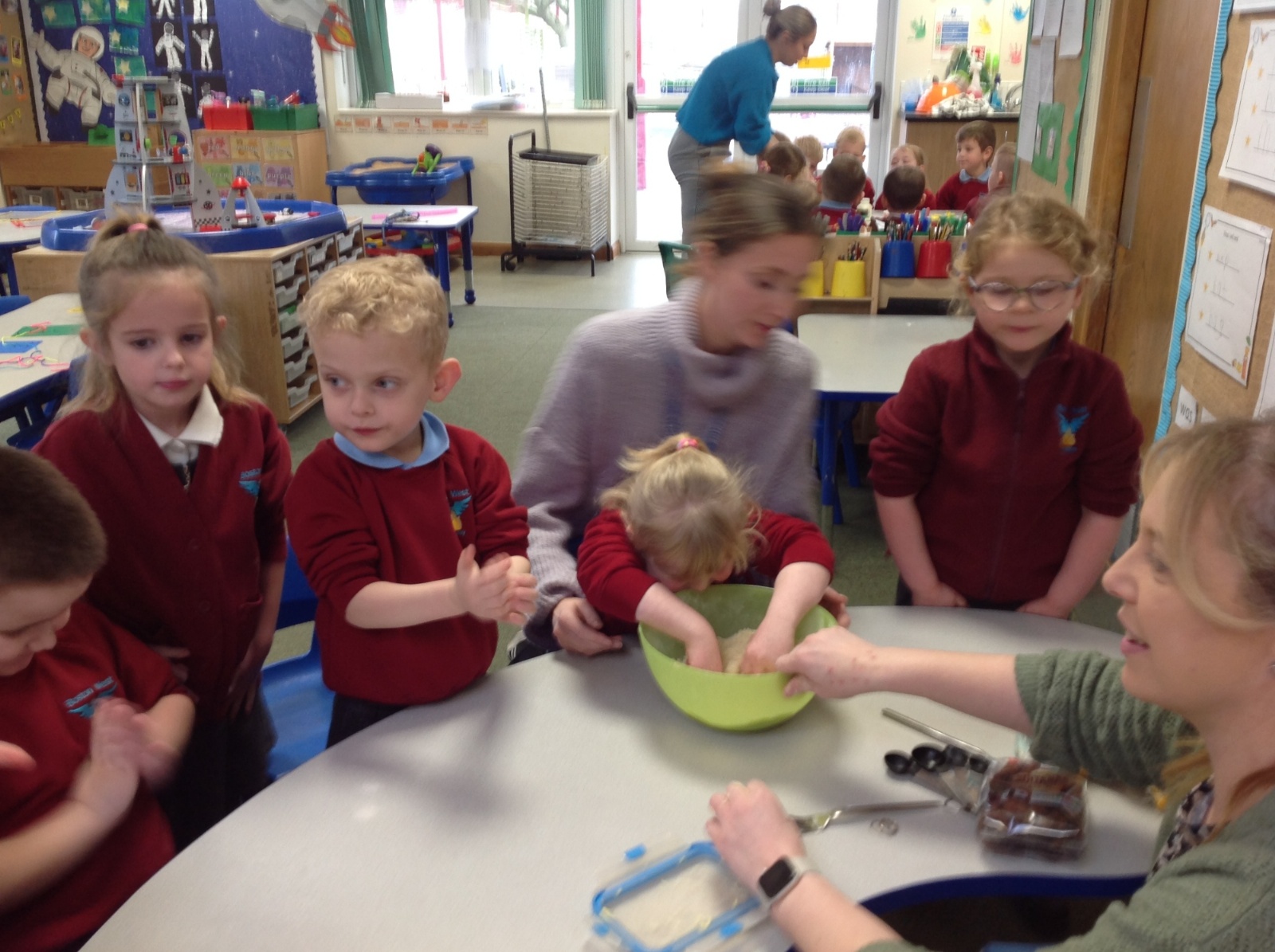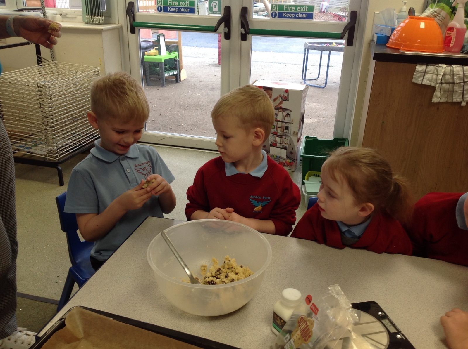The children have been learning about Space and we have read the story 'Whatever next' which is all about a bear who went to the moon and had a picnic. The children enjoyed making some moon rock cakes to take with them to the moon to join the bears picnic. They all had a turn at helping make the cakes and particularly enjoyed eating them at the end of the day whilst listening to a story. If you would like to make them at home we used the recipe on the BBC website https://www.bbc.co.uk/food/recipes/rock_cakes_03094.