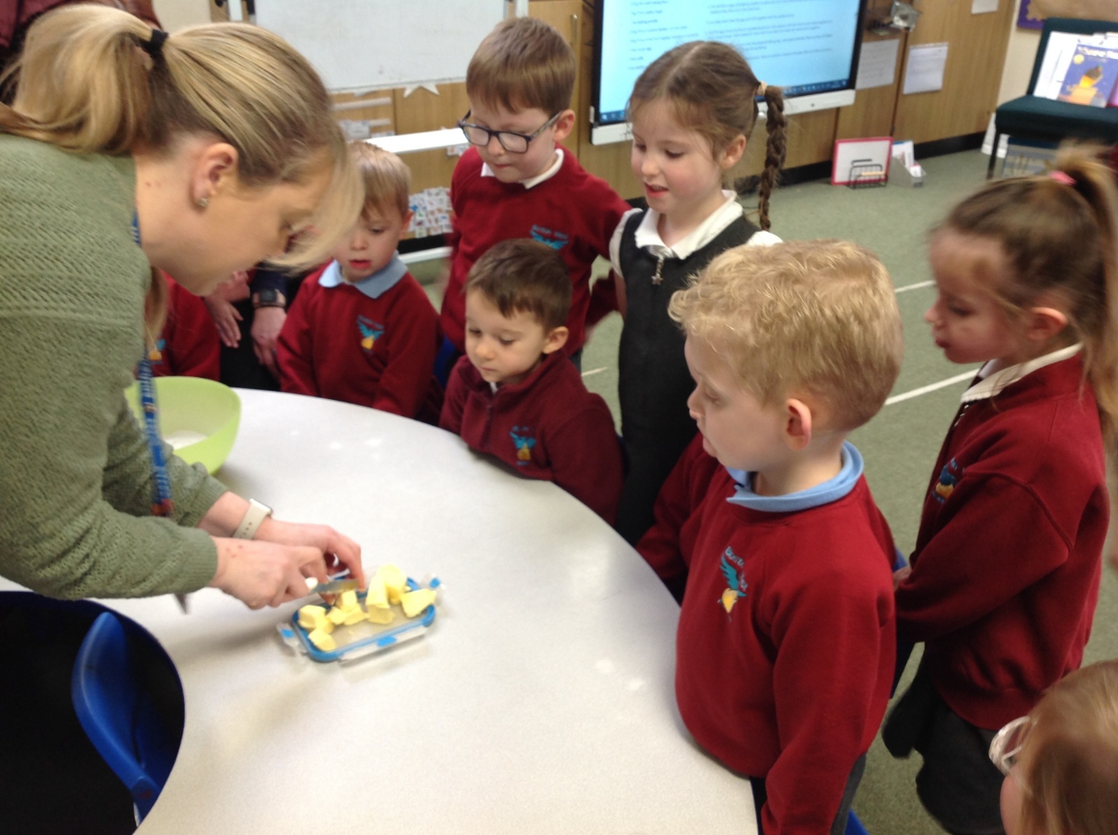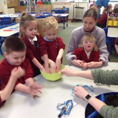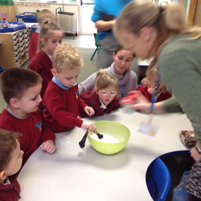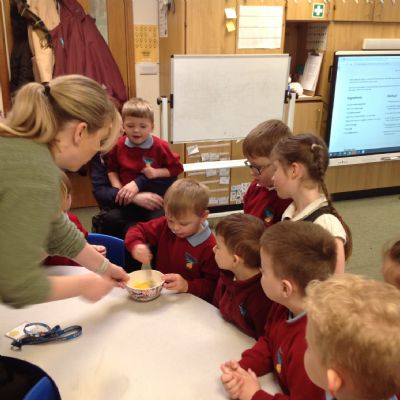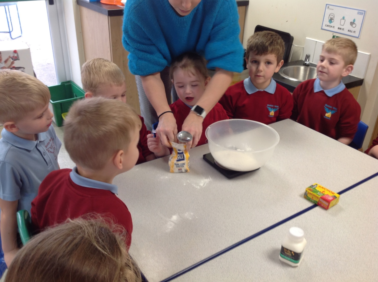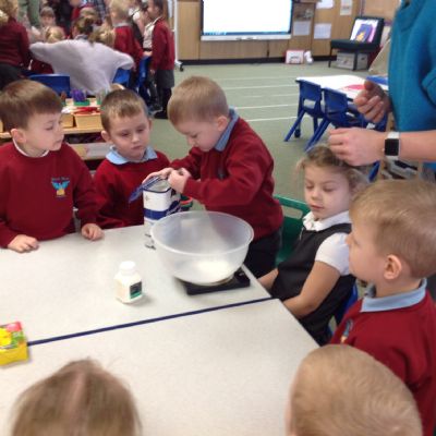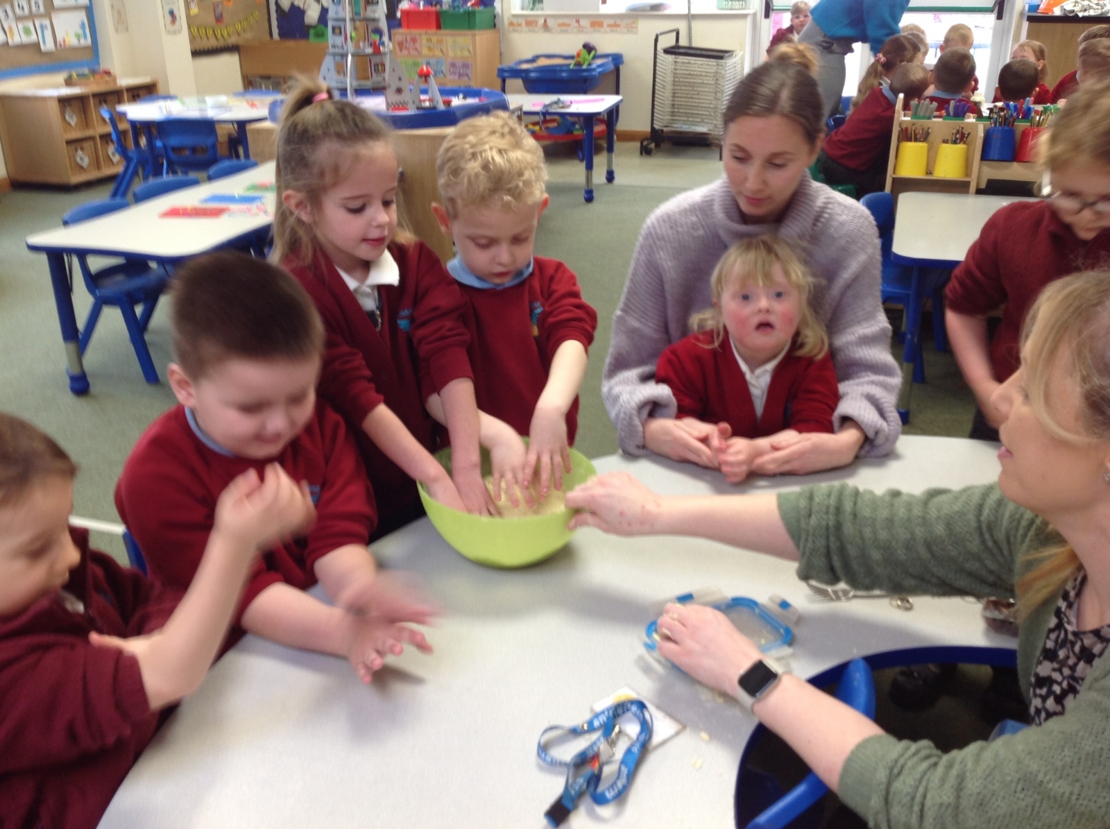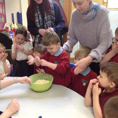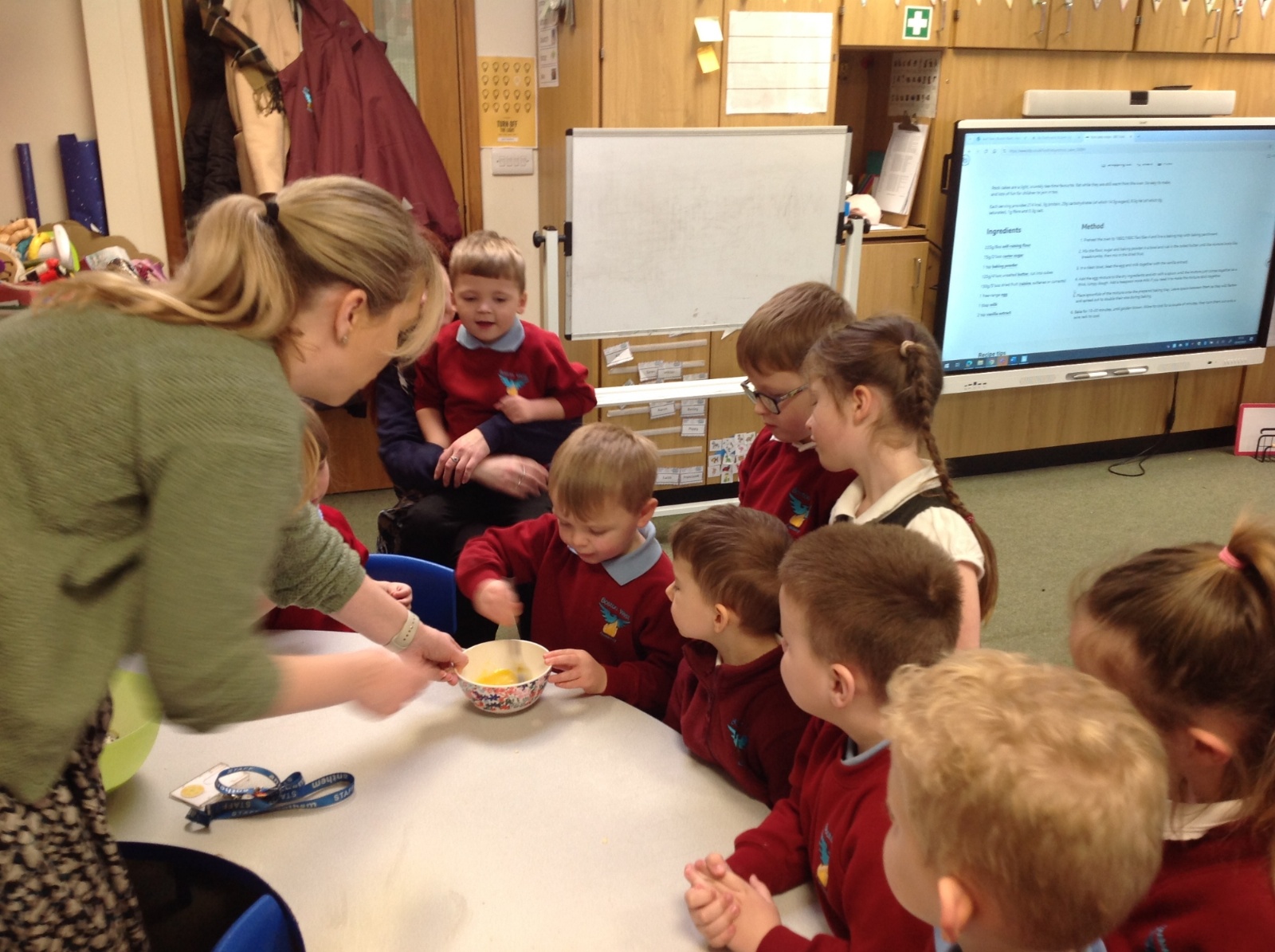 The children have been learning about Space and we have read the story 'Whatever next' which is all about a bear who went to the moon and had a picnic. The children enjoyed making some moon rock cakes to take with them to the moon to join the bears picnic. They all had a turn at helping make the cakes and particularly enjoyed eating them at the end of the day whilst listening to a story. If you would like to make them at home we used the recipe on the BBC website https://www.bbc.co.uk/food/recipes/rock_cakes_03094.