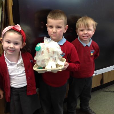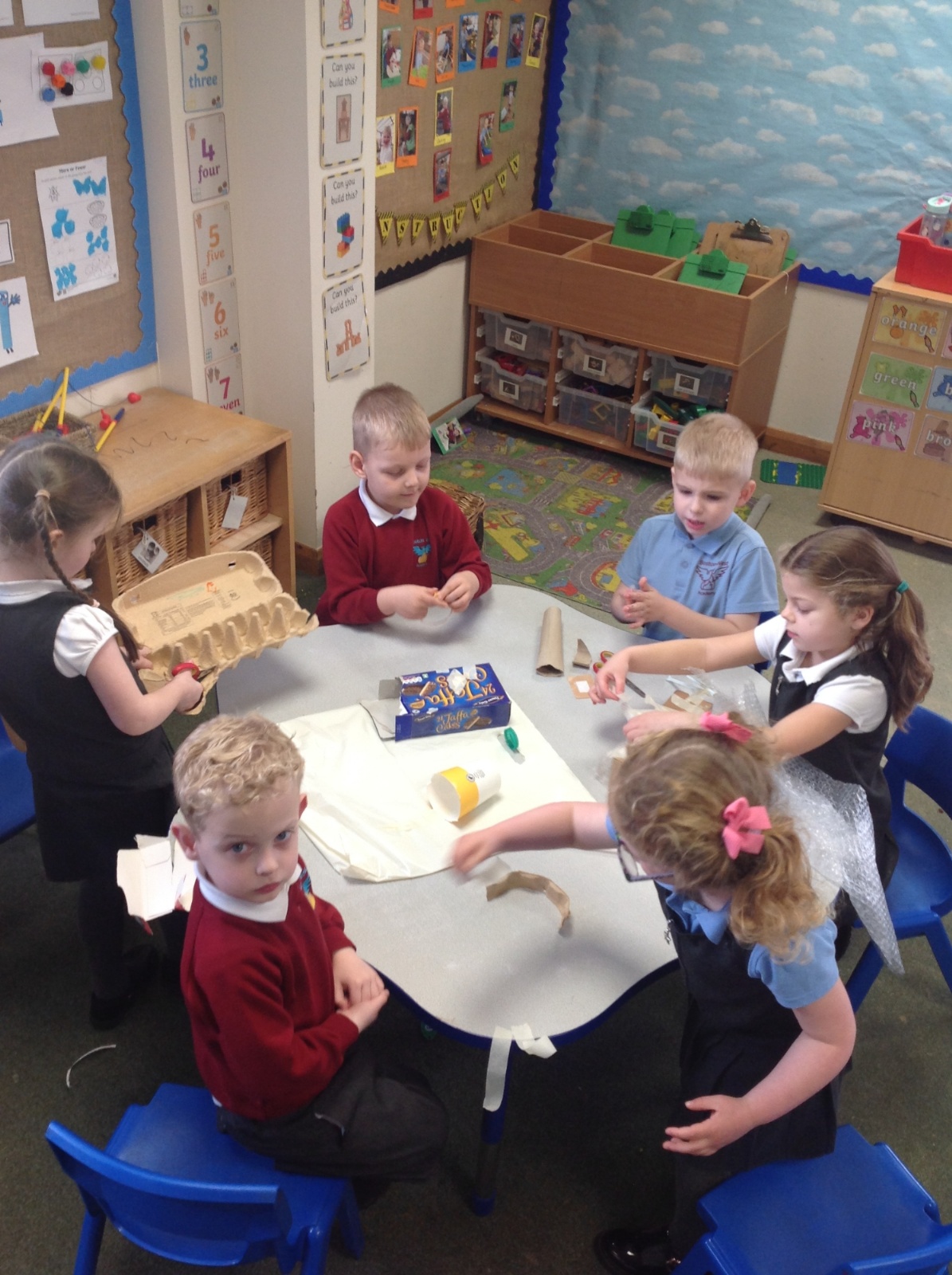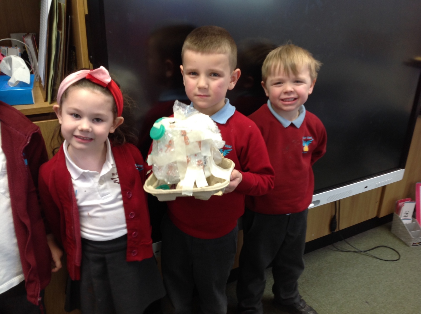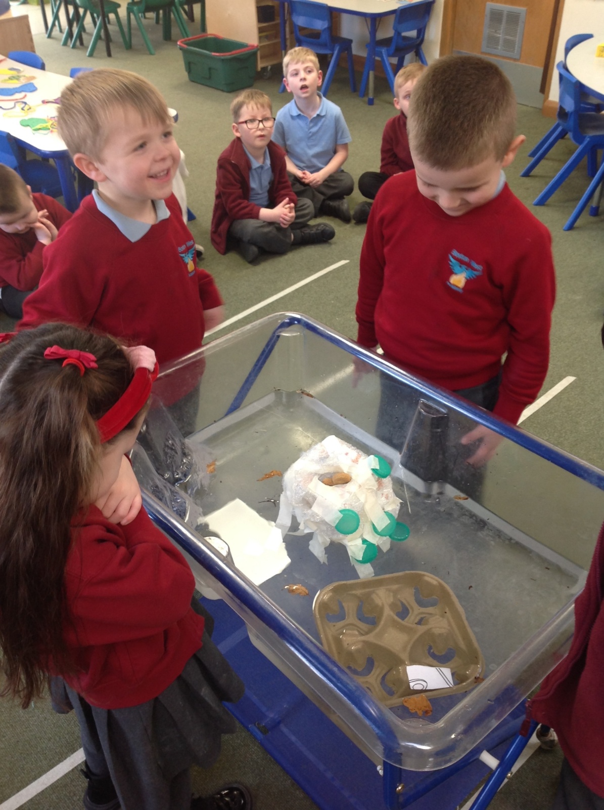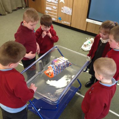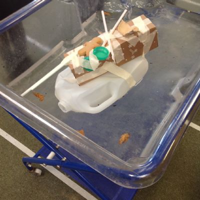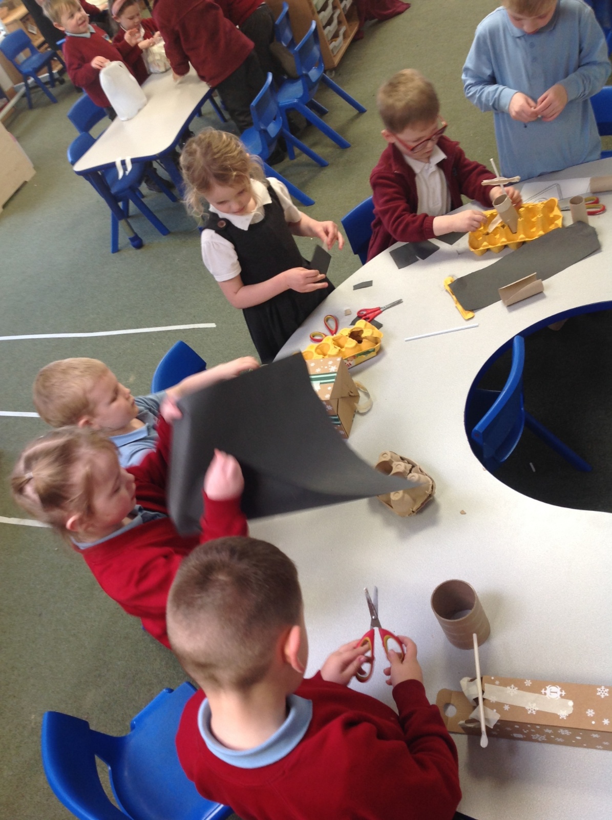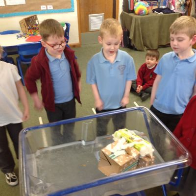 The children had to work together in teams to collaborate their ideas for making a good raft that would float across the water, to enable the Gingerbread Man to safely cross to the other side. They used junk materials and masking tape to build their rafts. Some were successful, some were not as successful but it was great fun to watch and the children demonstrated good teamwork skills.