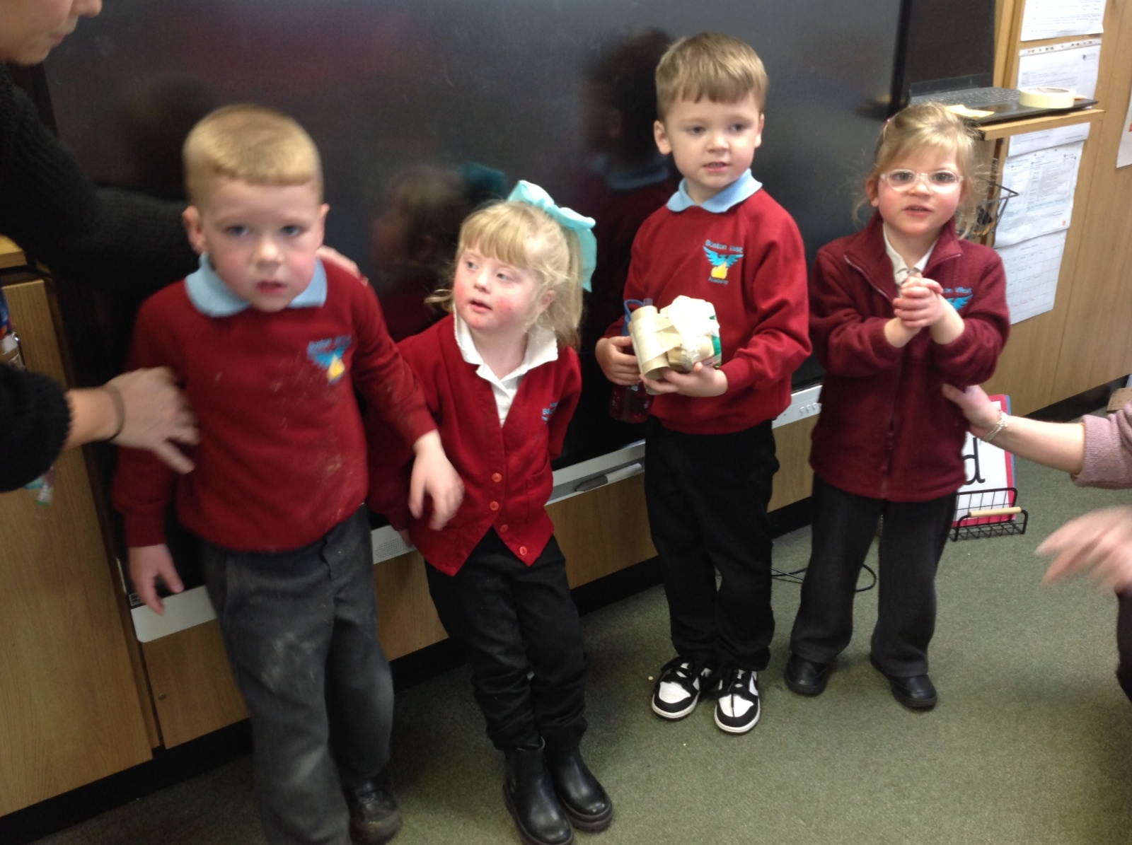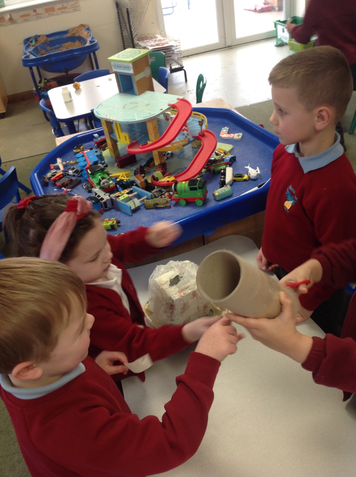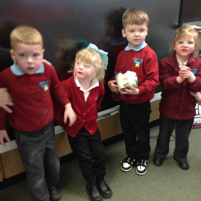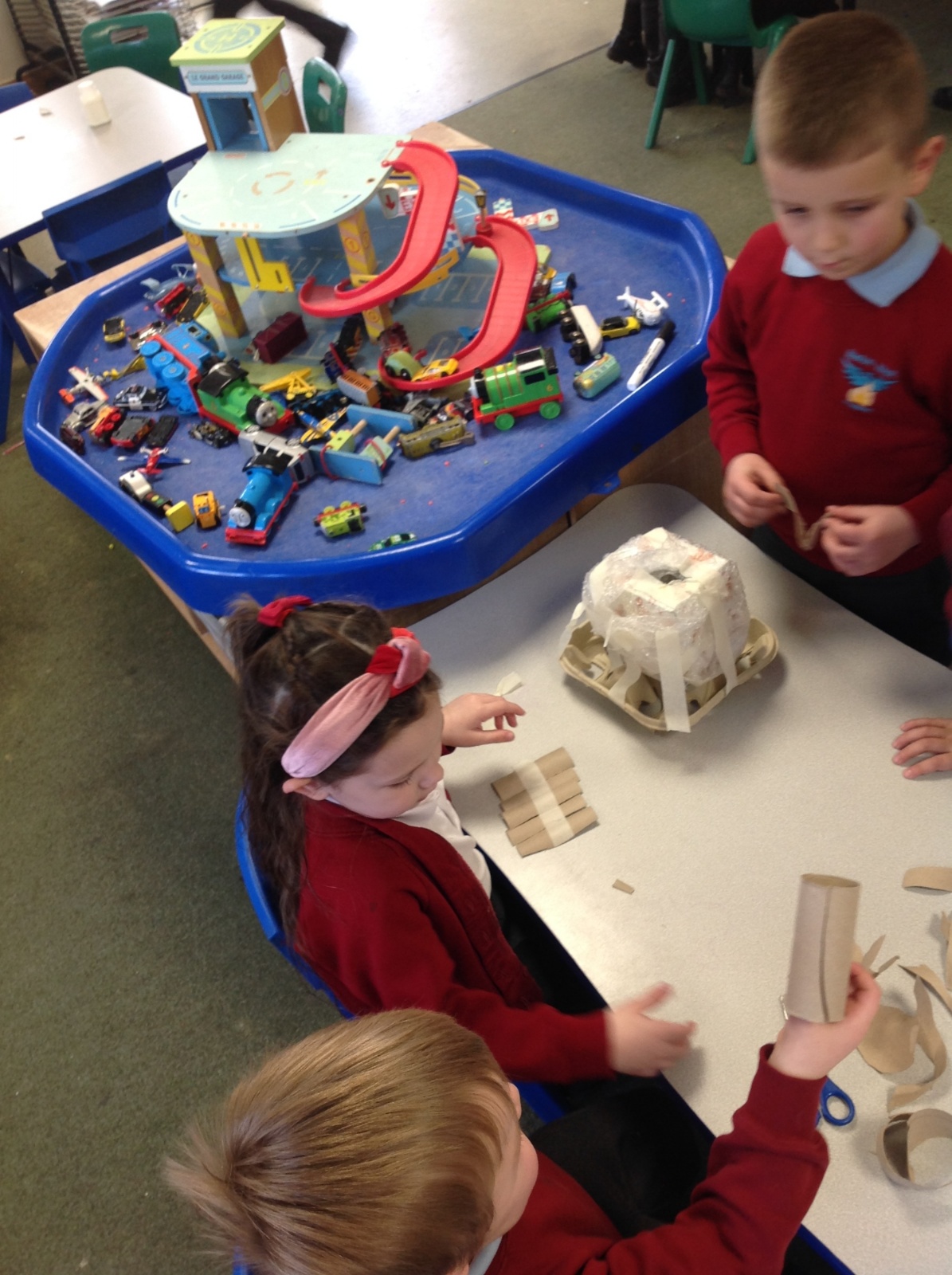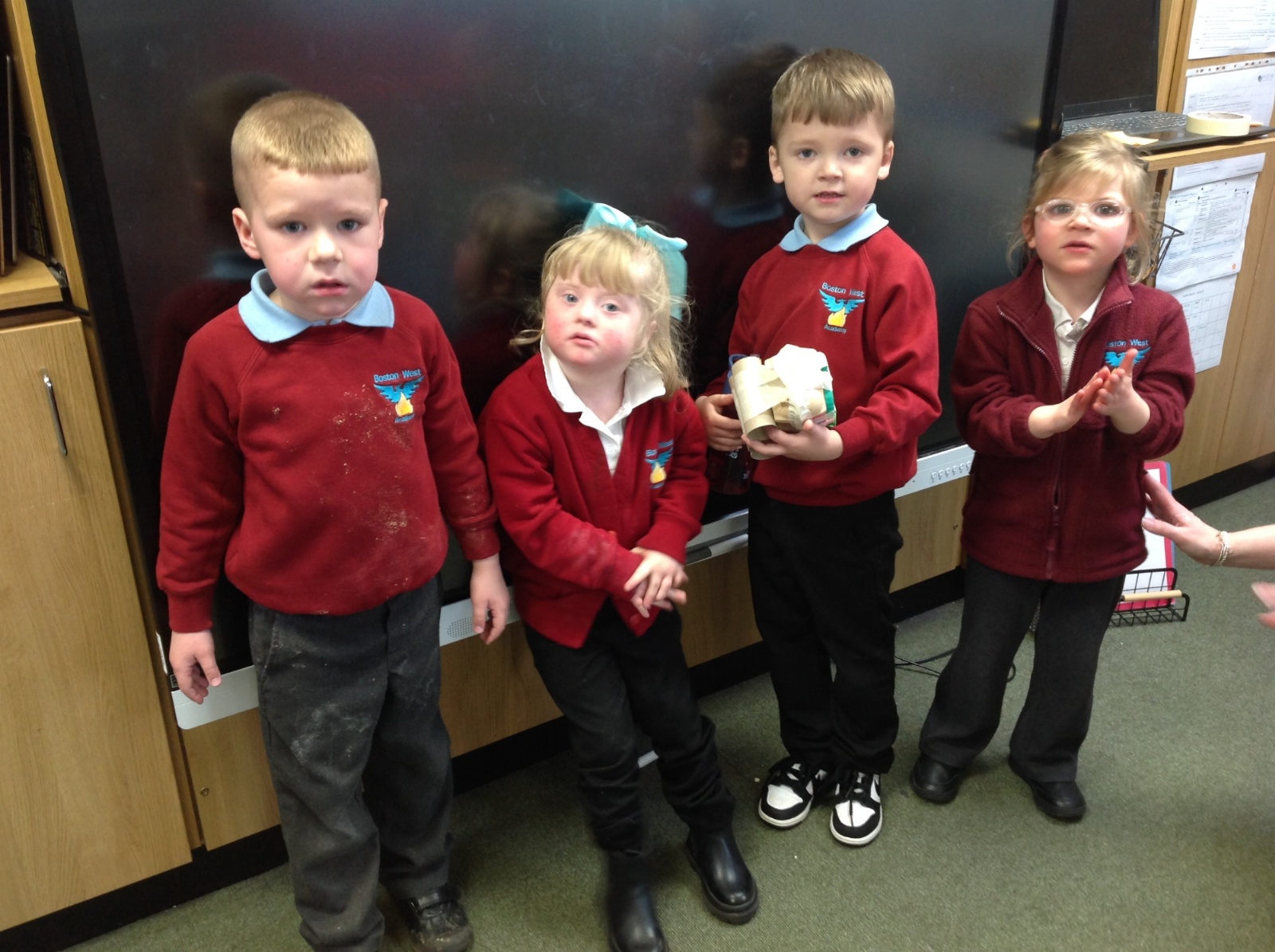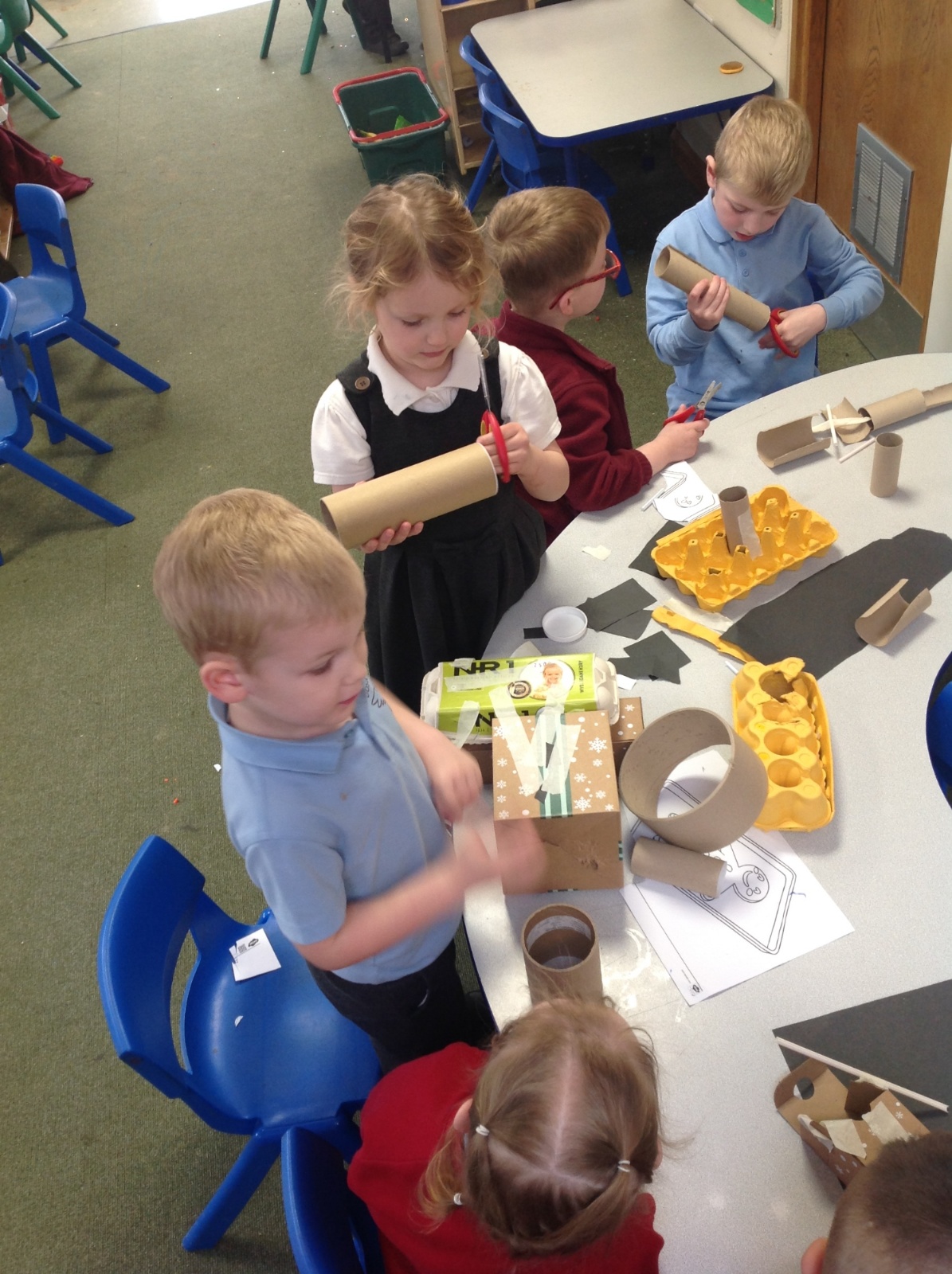 The children had to work together in teams to collaborate their ideas for making a good raft that would float across the water, to enable the Gingerbread Man to safely cross to the other side. They used junk materials and masking tape to build their rafts. Some were successful, some were not as successful but it was great fun to watch and the children demonstrated good teamwork skills.