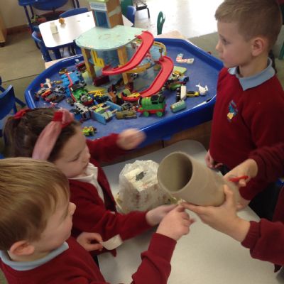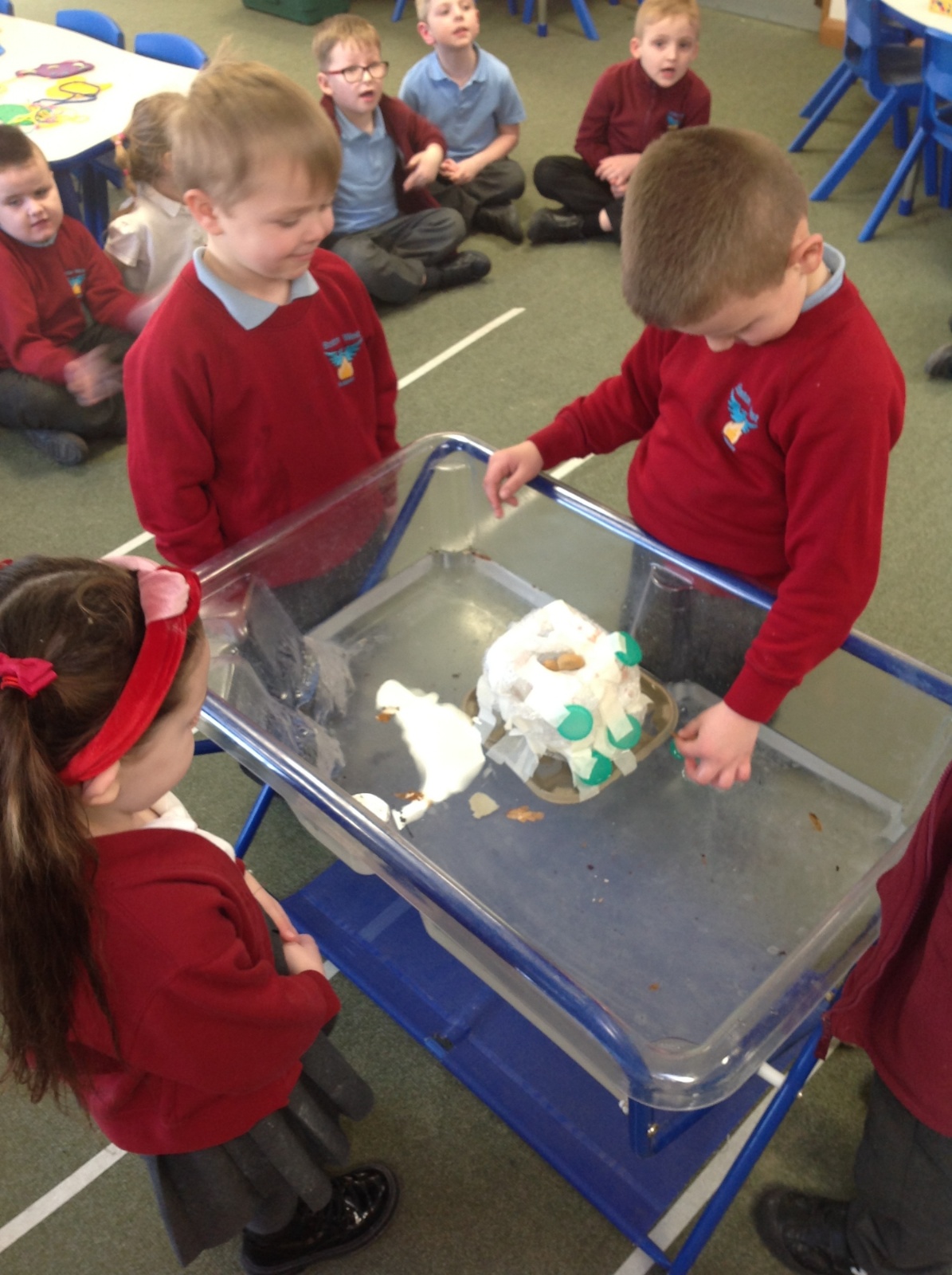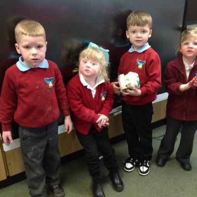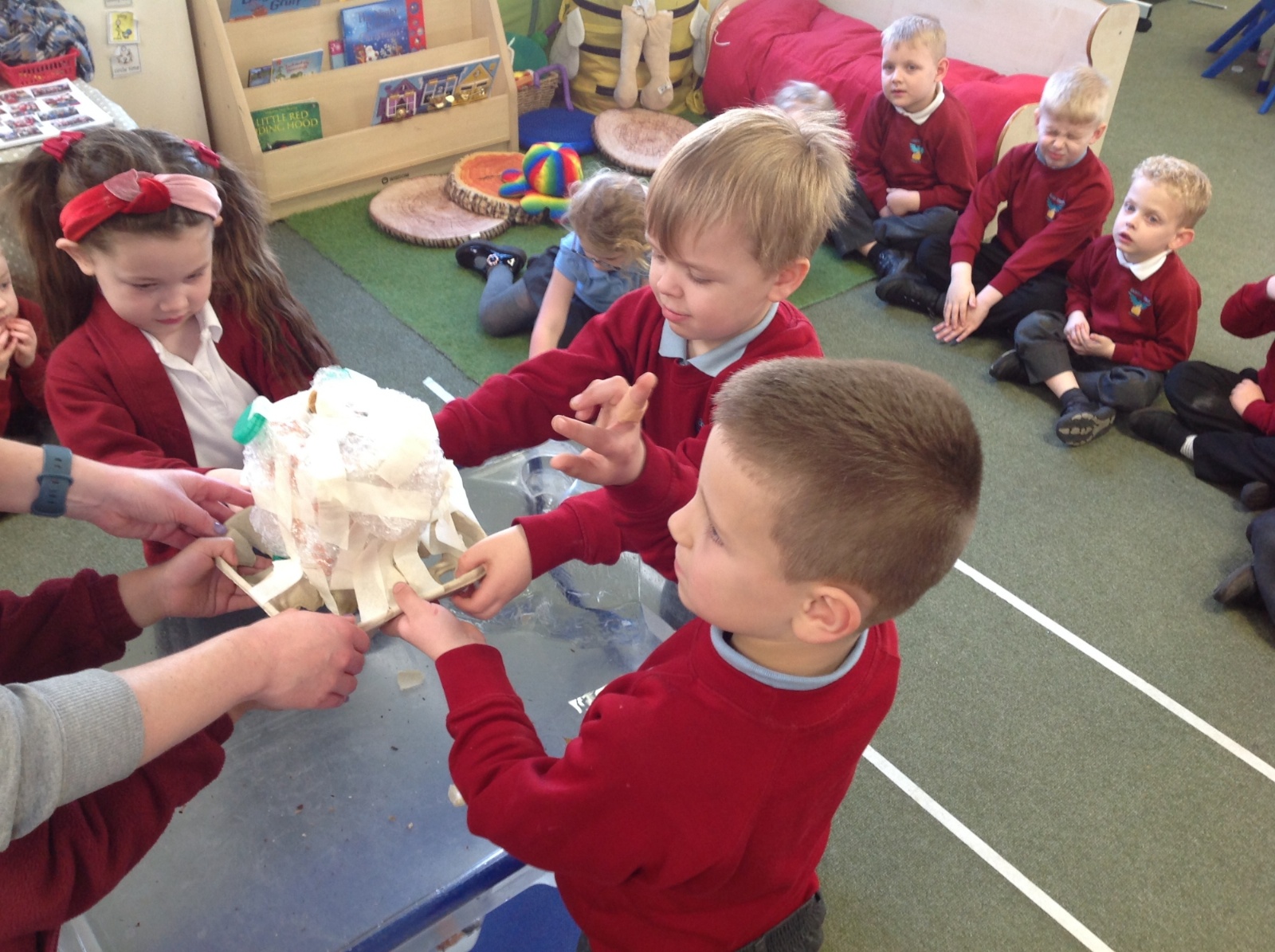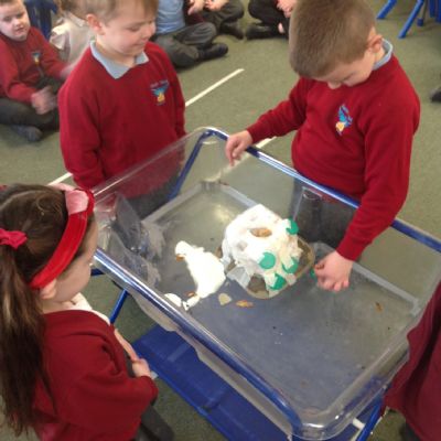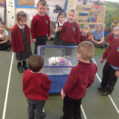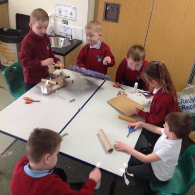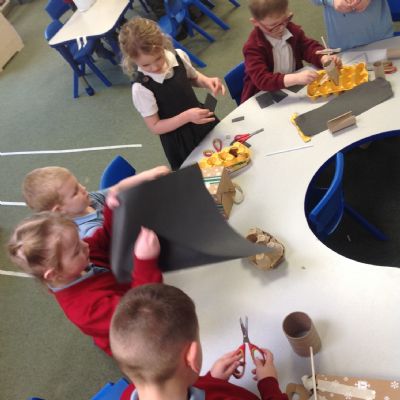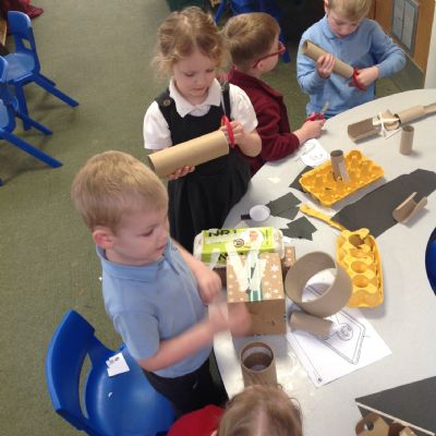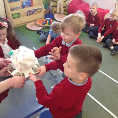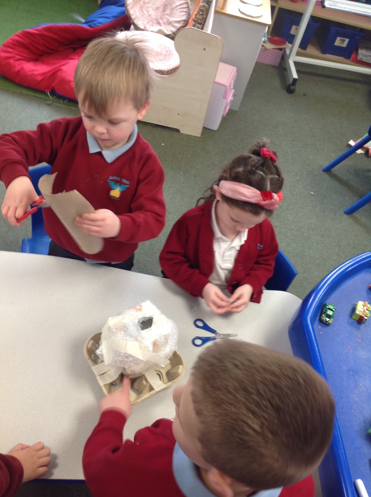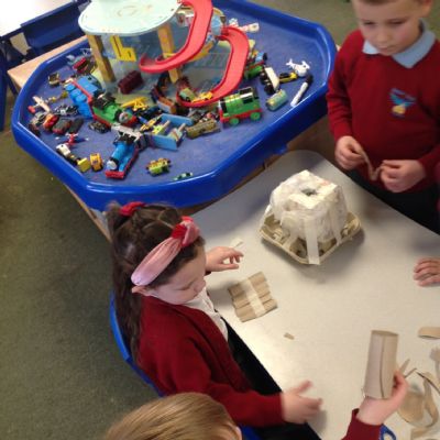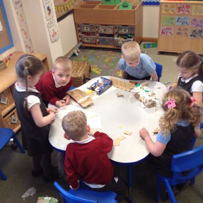 The children had to work together in teams to collaborate their ideas for making a good raft that would float across the water, to enable the Gingerbread Man to safely cross to the other side. They used junk materials and masking tape to build their rafts. Some were successful, some were not as successful but it was great fun to watch and the children demonstrated good teamwork skills.