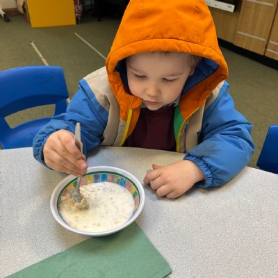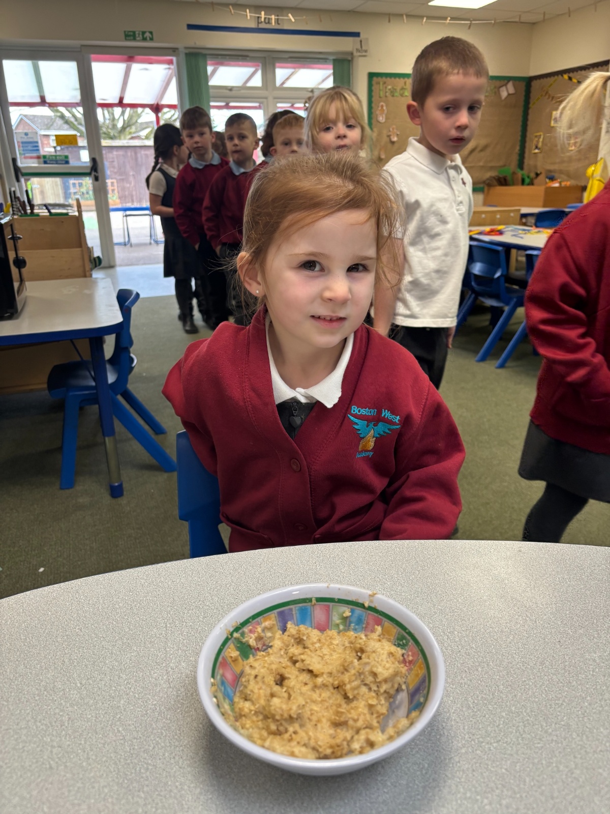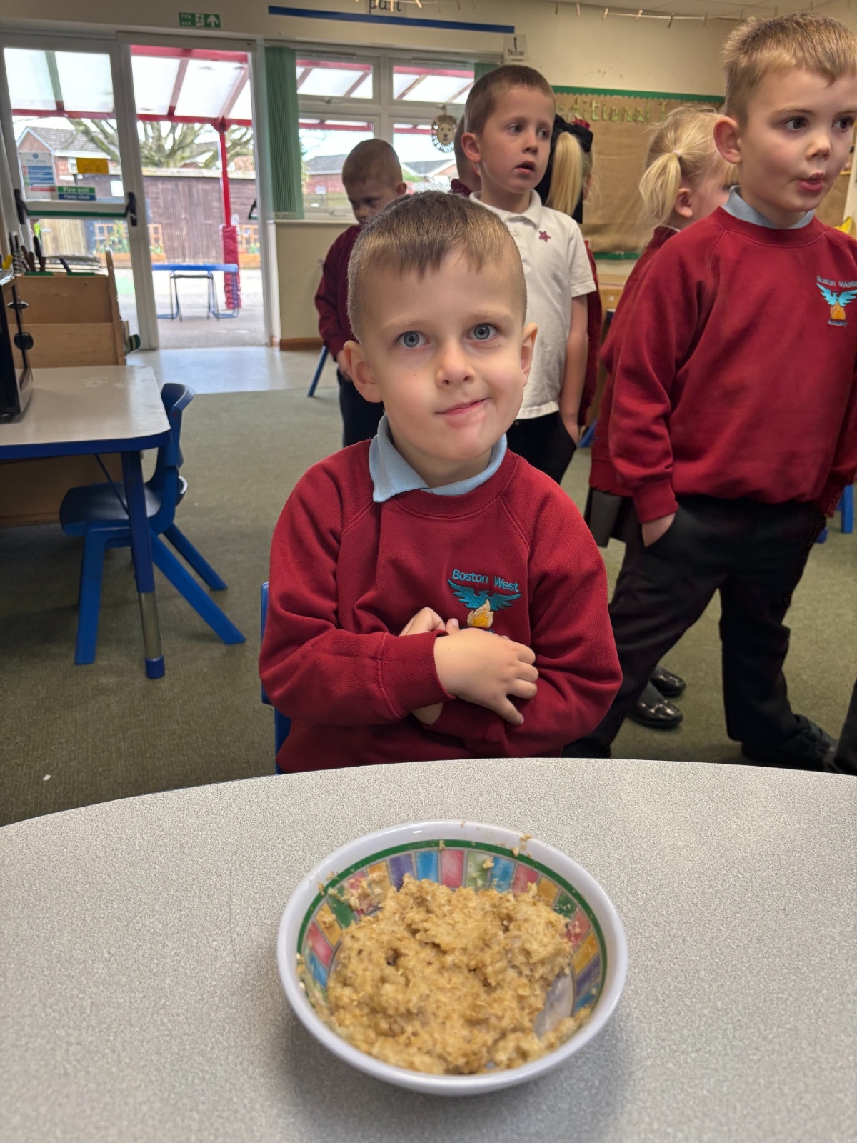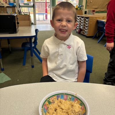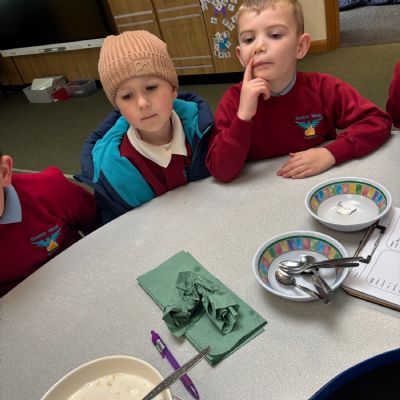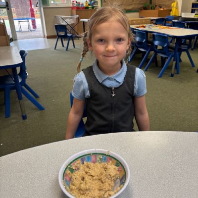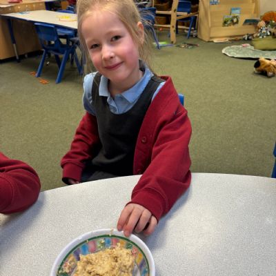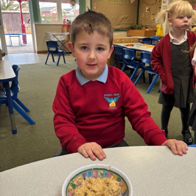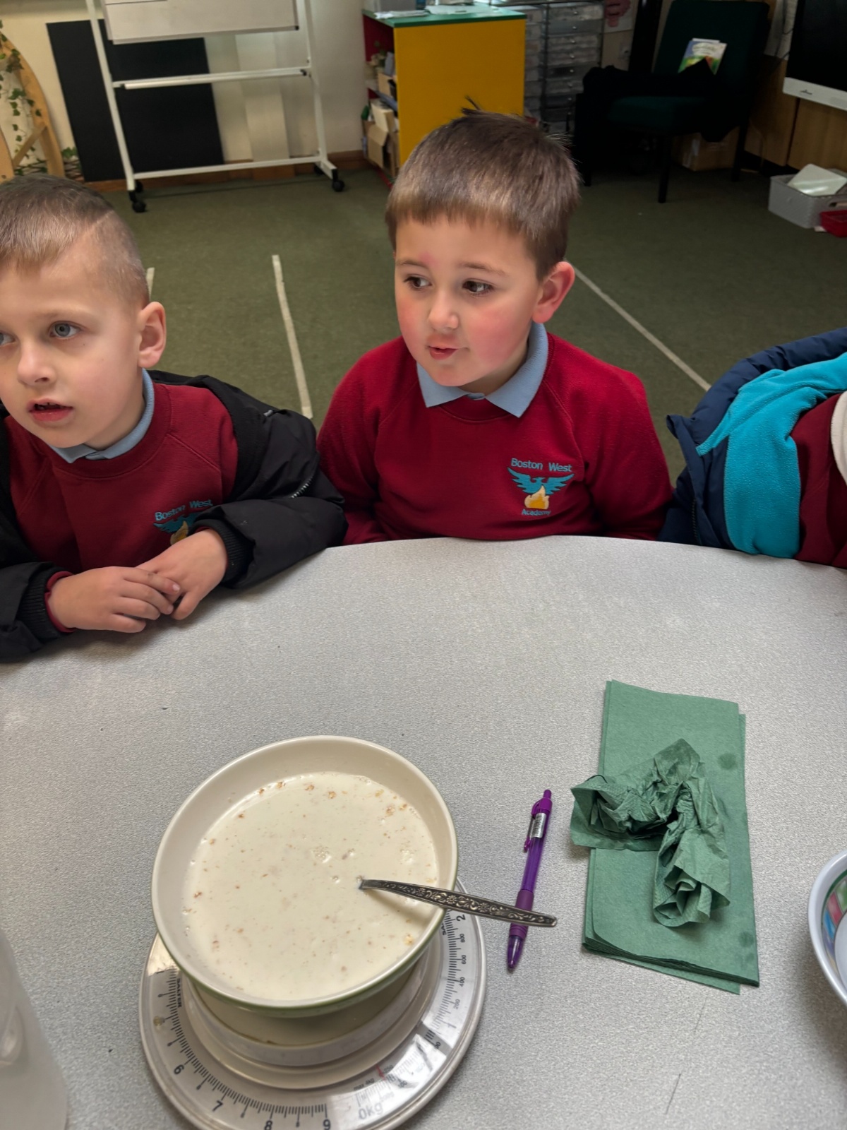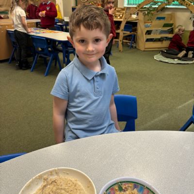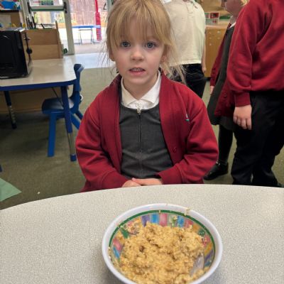 This week the children have been exploring and reading the book 'Goldilocks and the Three Bears'. In the story, Goldilocks tries all three bowls of porridge and describes the temperature and consistency of them. In groups throughout science week, we created our own porridge and discussed the method and changes made throughout the process of making porridge. The children really enjoyed this activity, especially the taste test at the end.