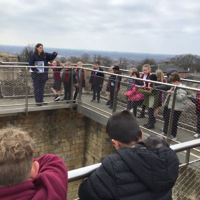 We walked all the way around the castle wall. We identified features of a castle and learnt lots of interesting facts about the castle.