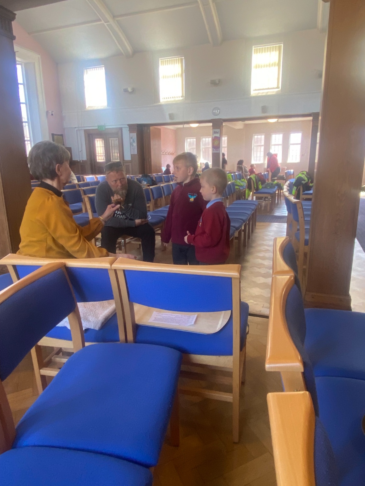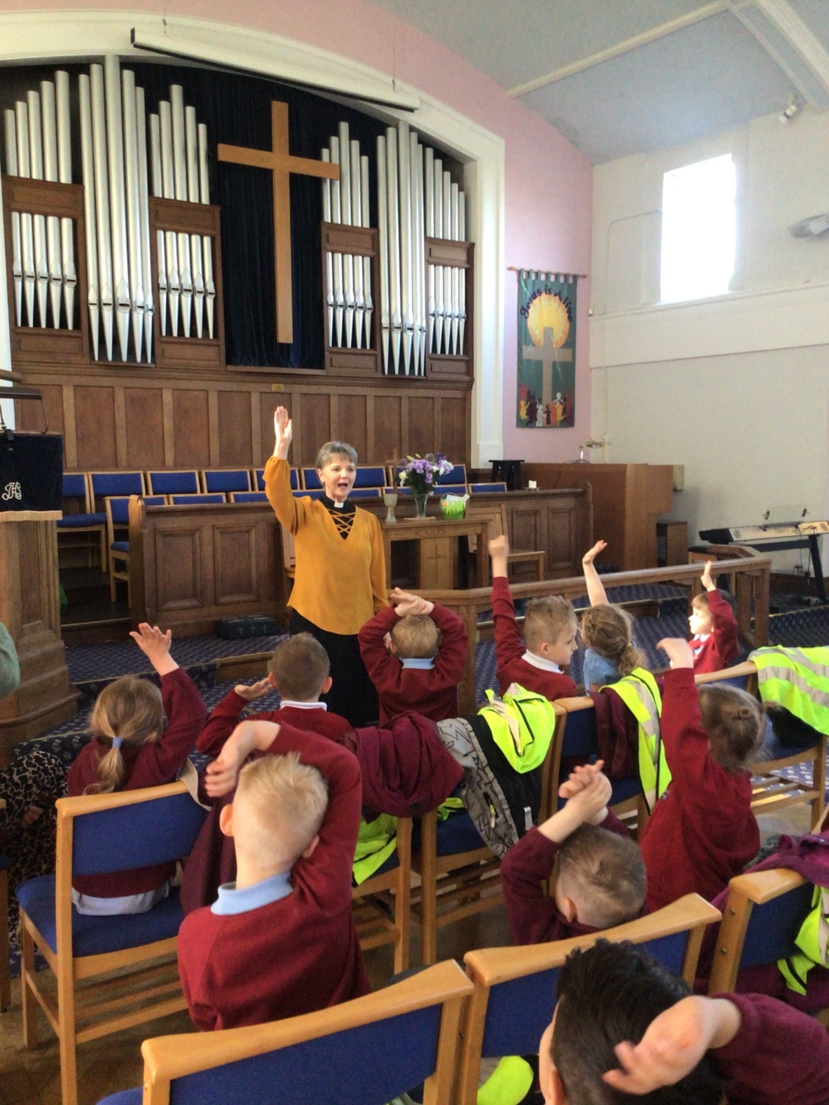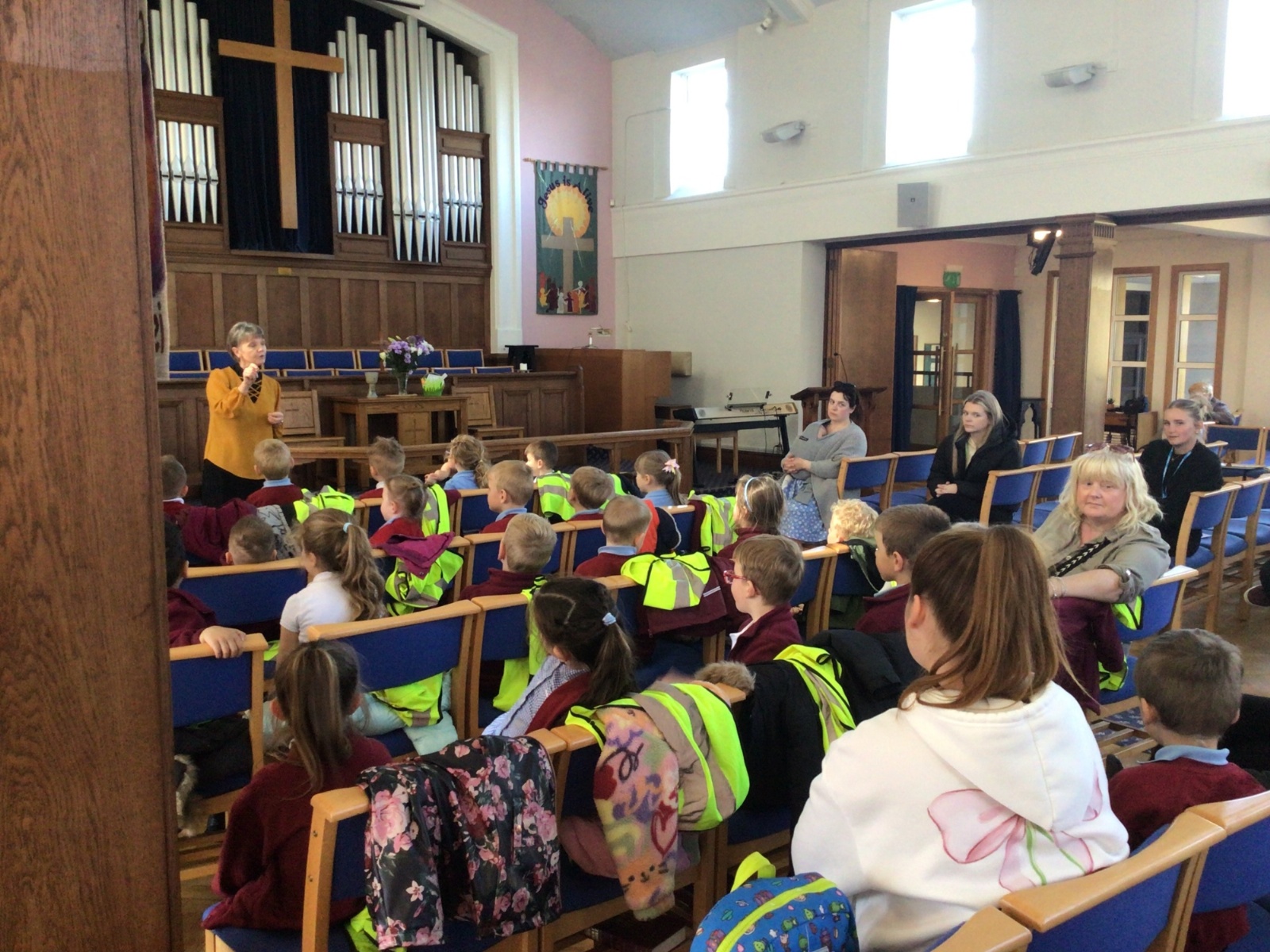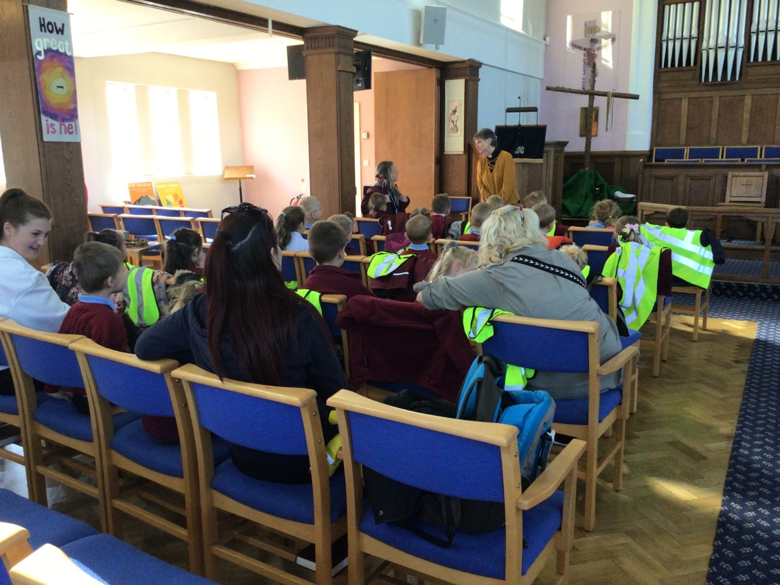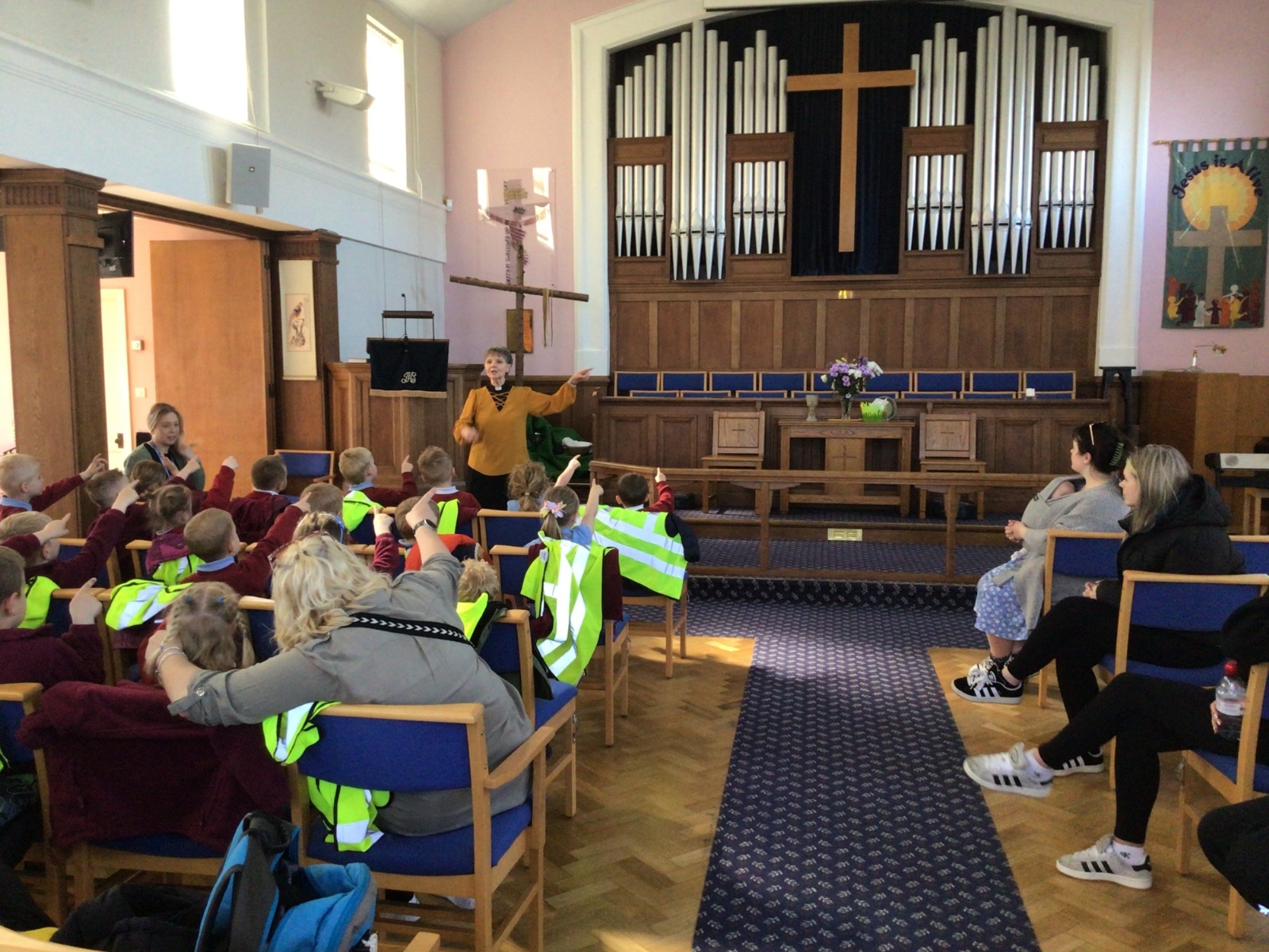 The children have been on their first school trip. We went to the Zion Methodist Church and learnt all about Easter. We were welcomed by Reverend Val and other members of the church, who talked to the children about the different parts of the story and the reason behind Easter. Some of the activities included flipping a pancake, trying pitta bread (The last supper), rolling the stone away from the tomb and waving a palm leaf. The children were fantastic and represented the school really well.