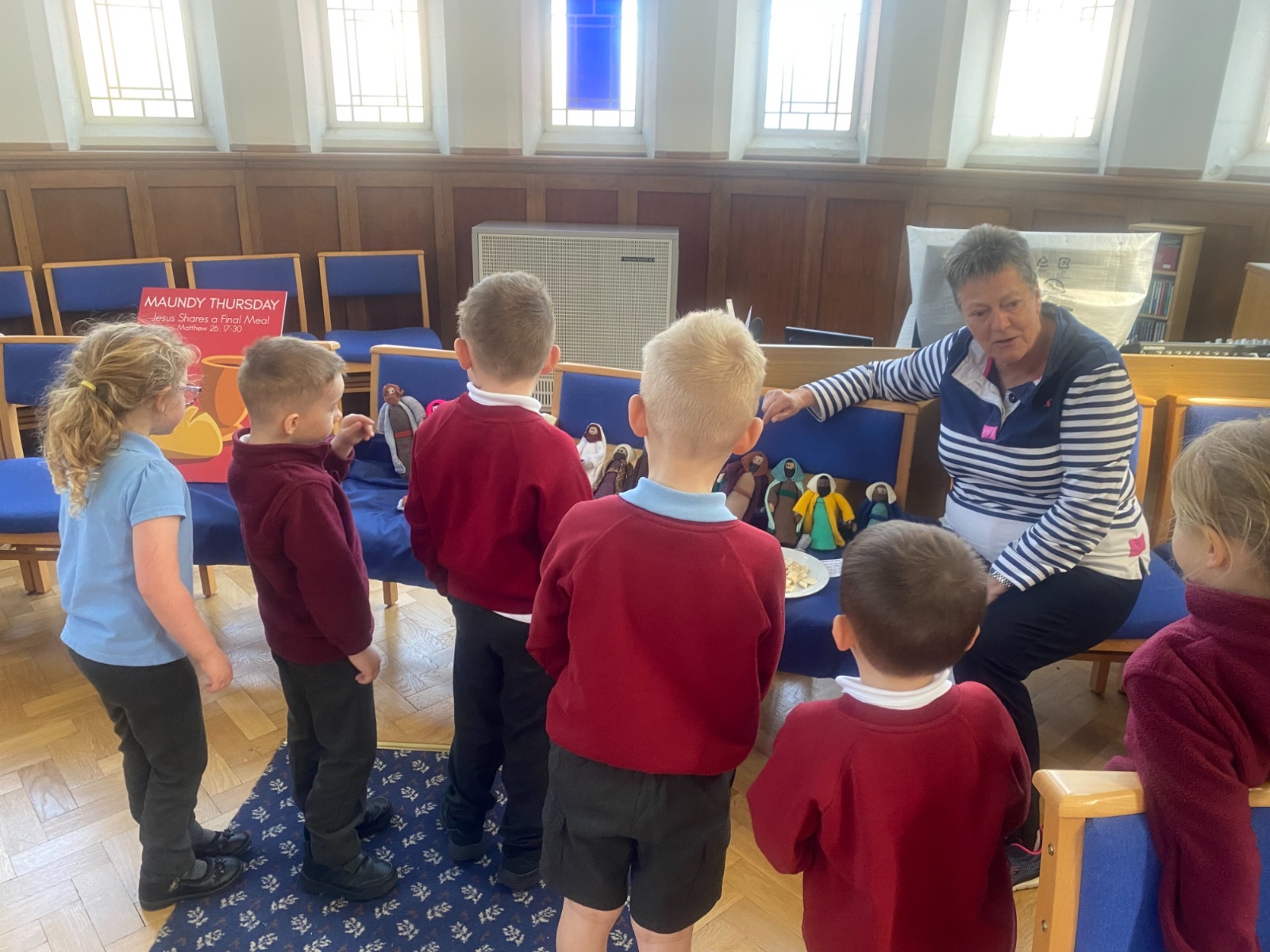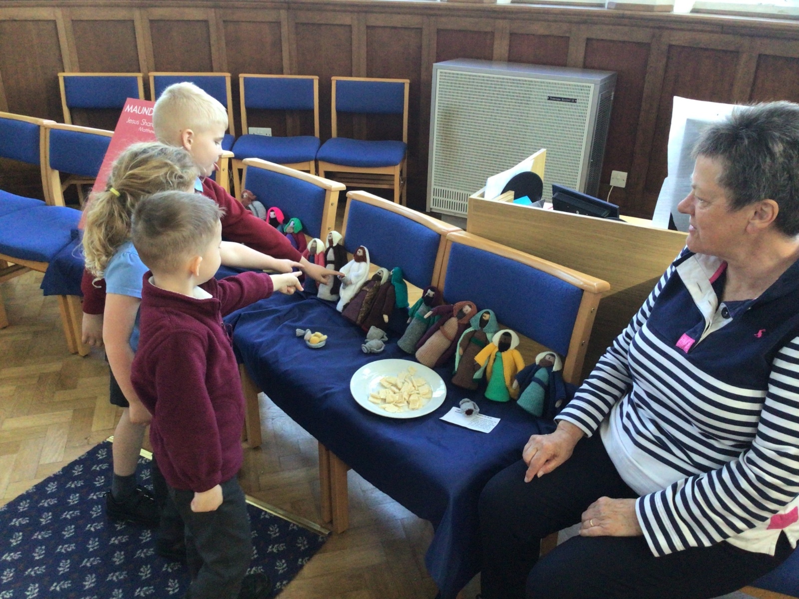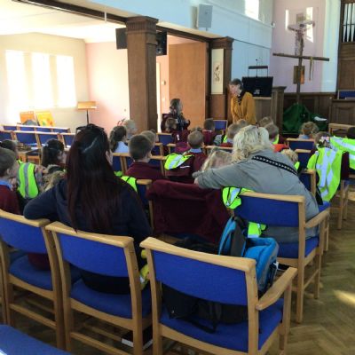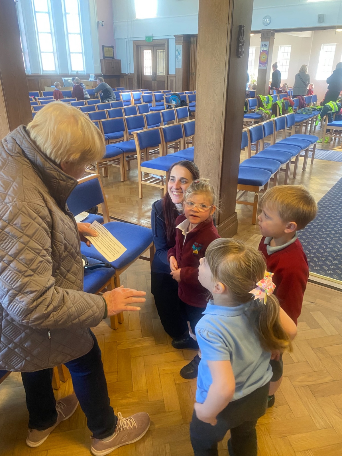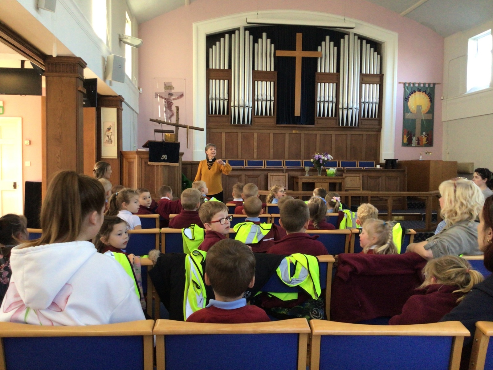 The children have been on their first school trip. We went to the Zion Methodist Church and learnt all about Easter. We were welcomed by Reverend Val and other members of the church, who talked to the children about the different parts of the story and the reason behind Easter. Some of the activities included flipping a pancake, trying pitta bread (The last supper), rolling the stone away from the tomb and waving a palm leaf. The children were fantastic and represented the school really well.