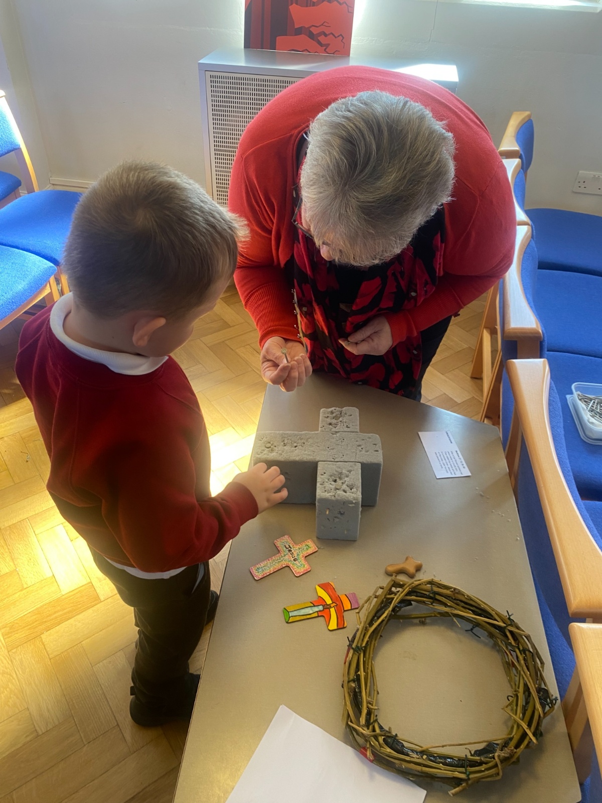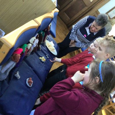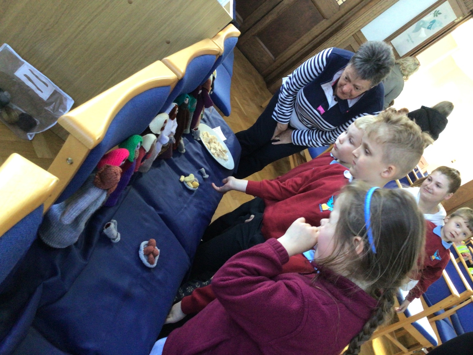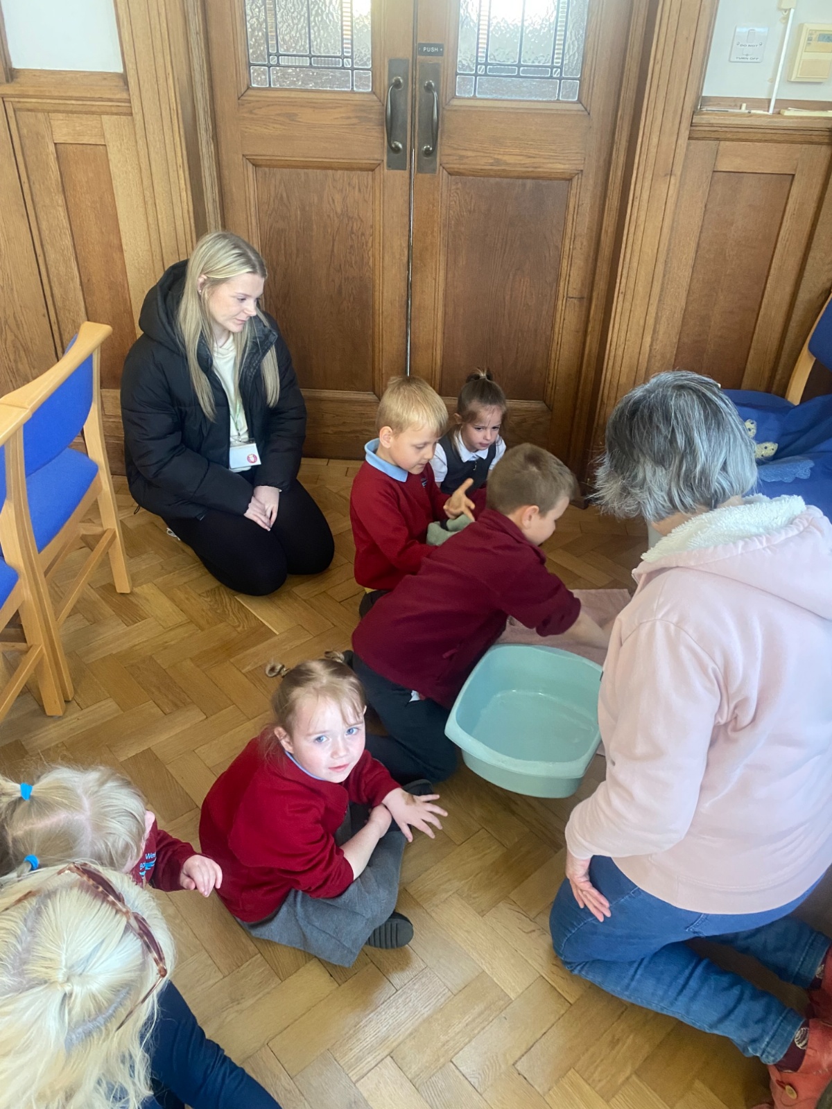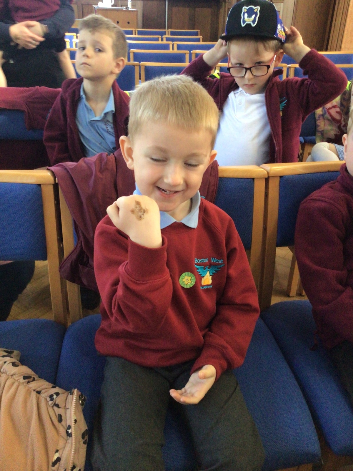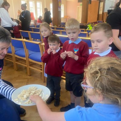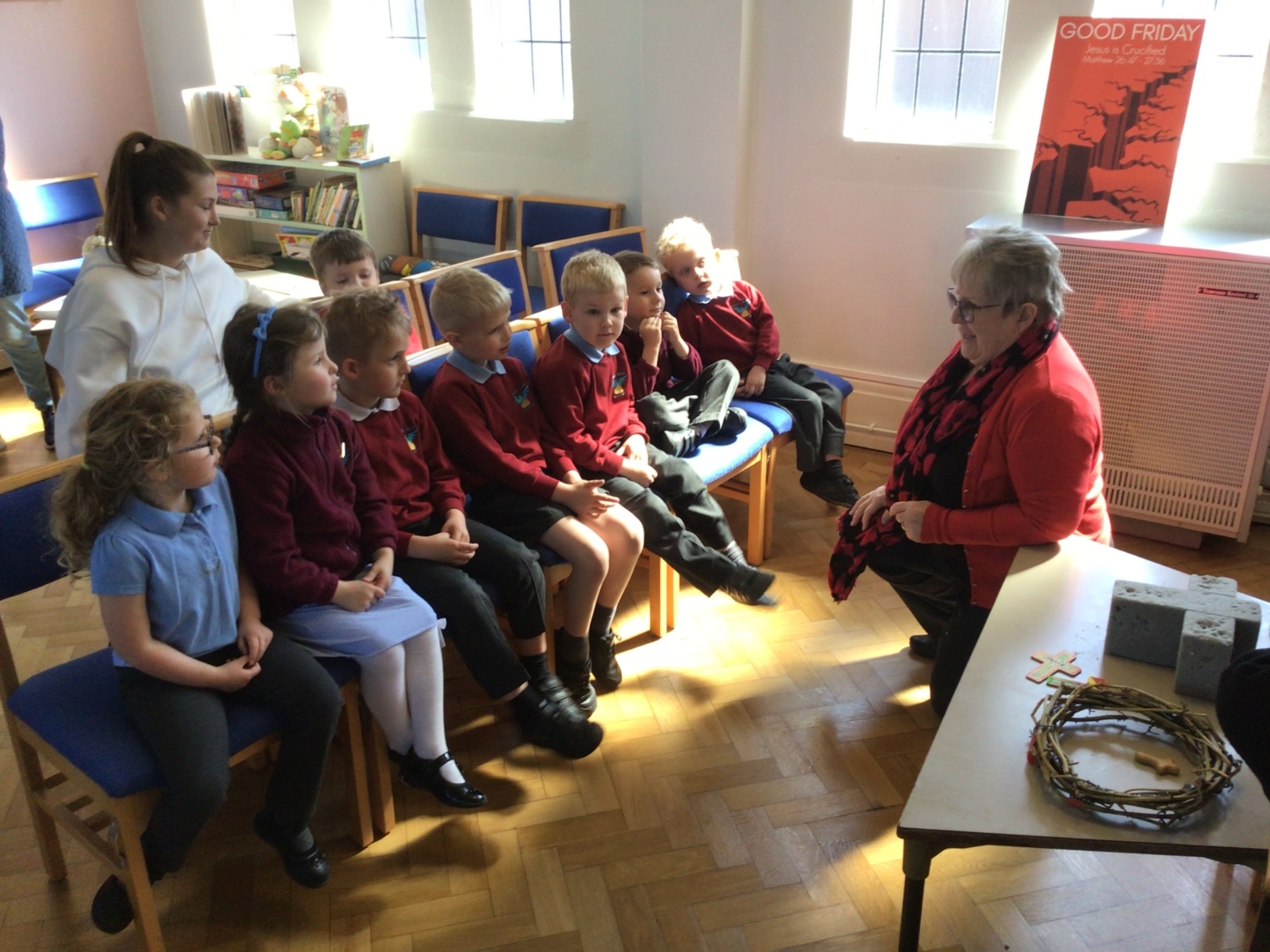 The children have been on their first school trip. We went to the Zion Methodist Church and learnt all about Easter. We were welcomed by Reverend Val and other members of the church, who talked to the children about the different parts of the story and the reason behind Easter. Some of the activities included flipping a pancake, trying pitta bread (The last supper), rolling the stone away from the tomb and waving a palm leaf. The children were fantastic and represented the school really well.