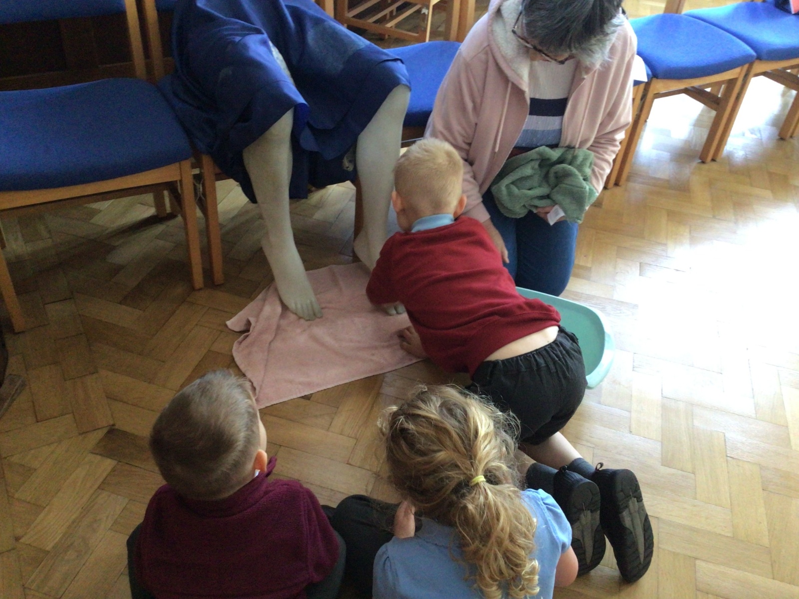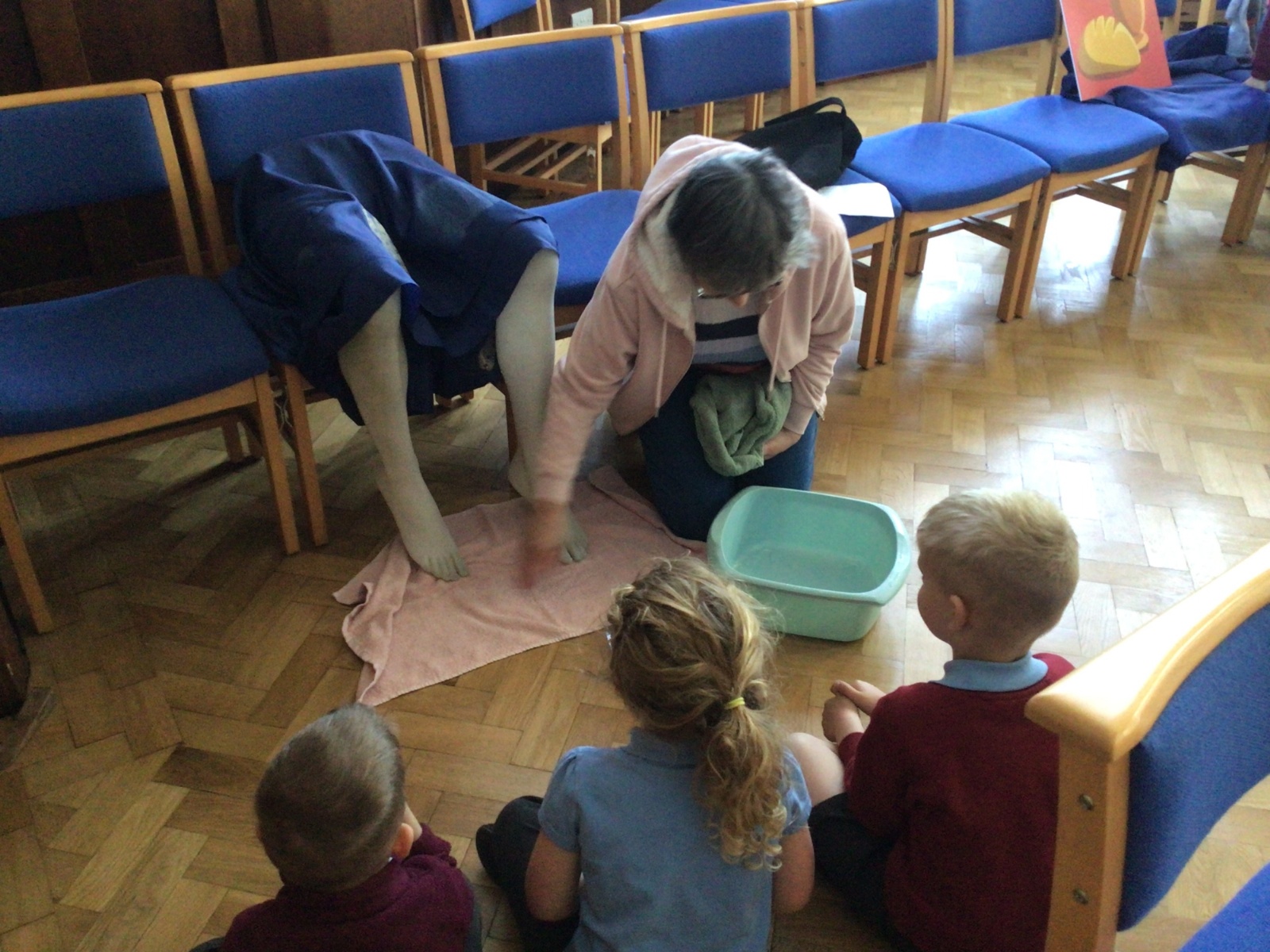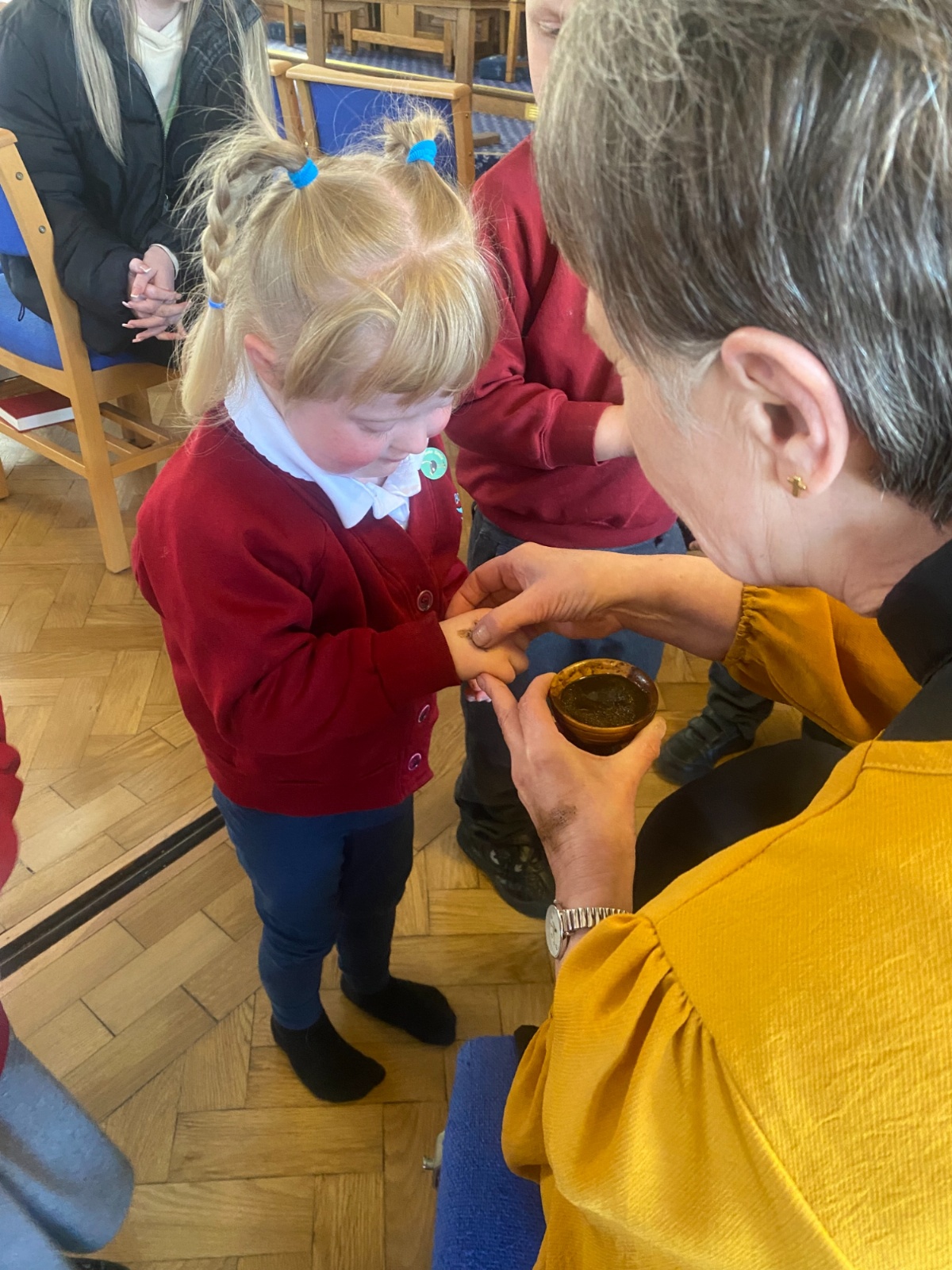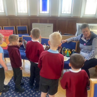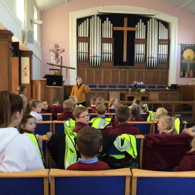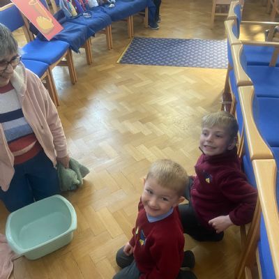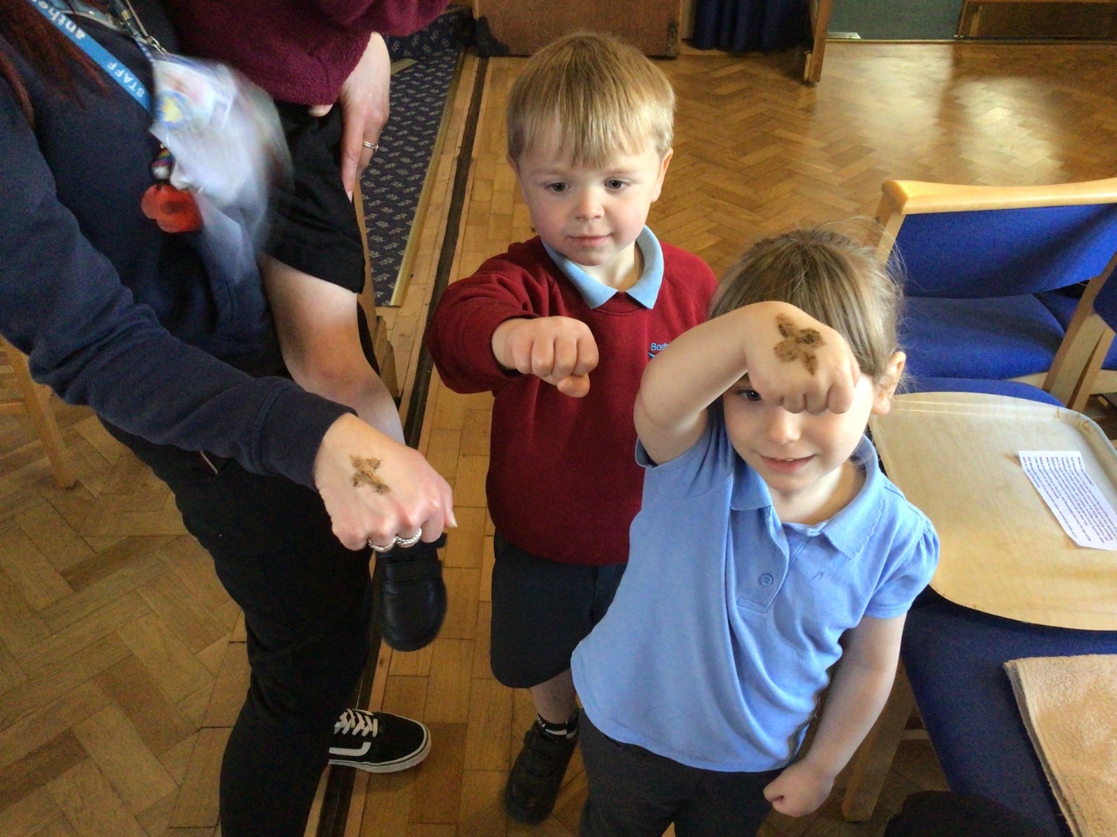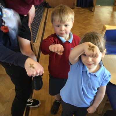 The children have been on their first school trip. We went to the Zion Methodist Church and learnt all about Easter. We were welcomed by Reverend Val and other members of the church, who talked to the children about the different parts of the story and the reason behind Easter. Some of the activities included flipping a pancake, trying pitta bread (The last supper), rolling the stone away from the tomb and waving a palm leaf. The children were fantastic and represented the school really well.