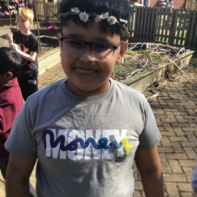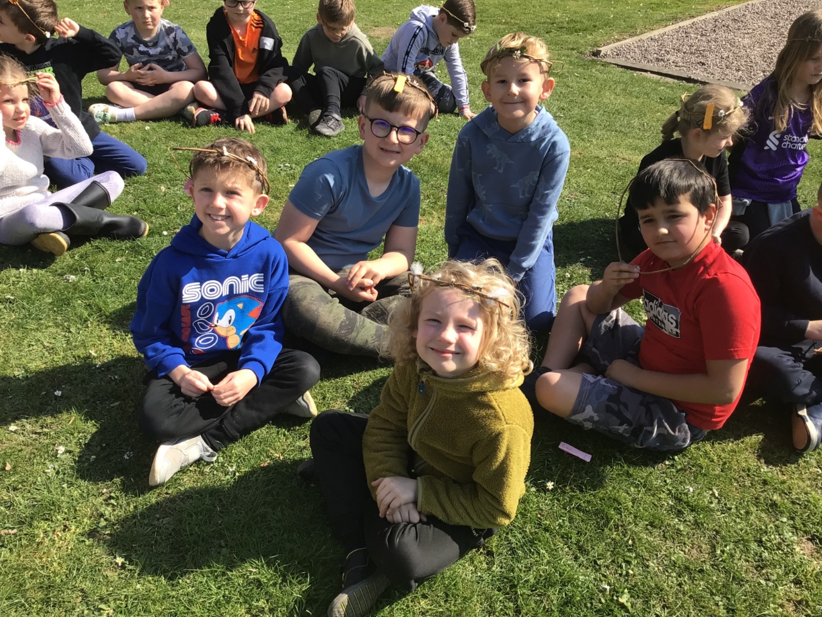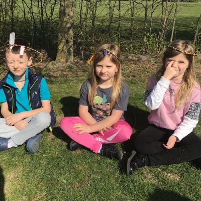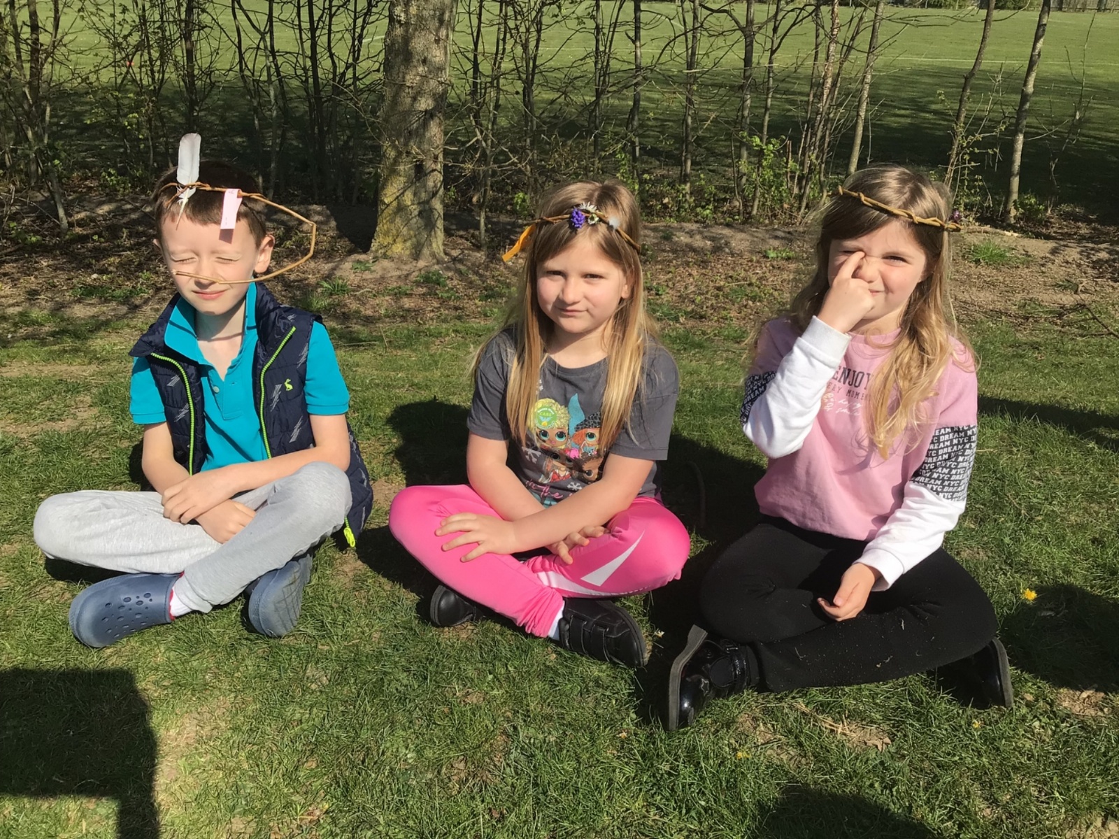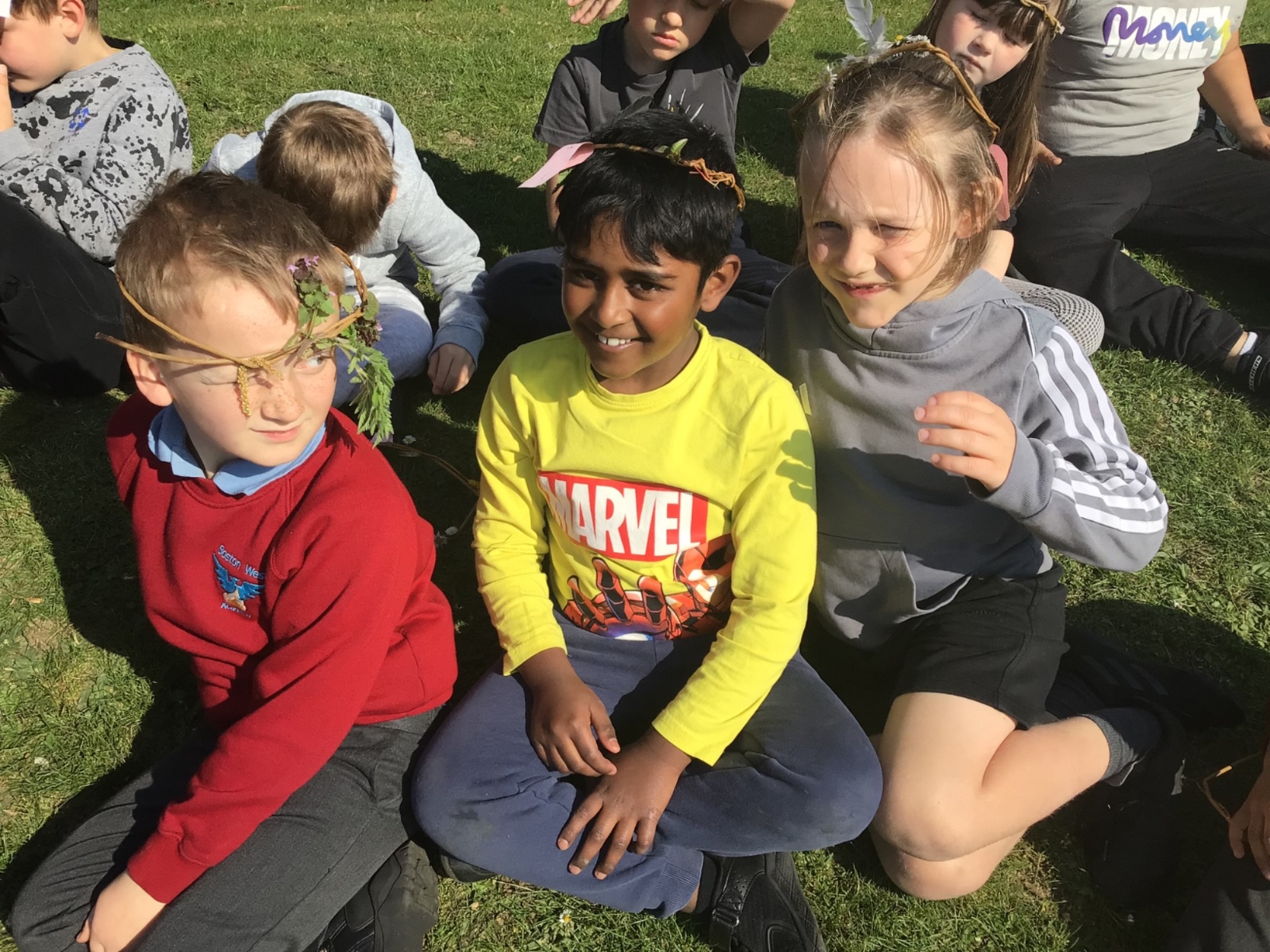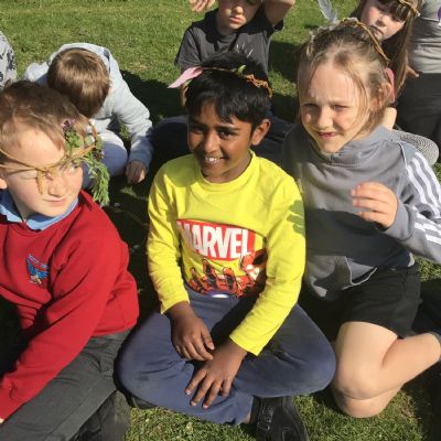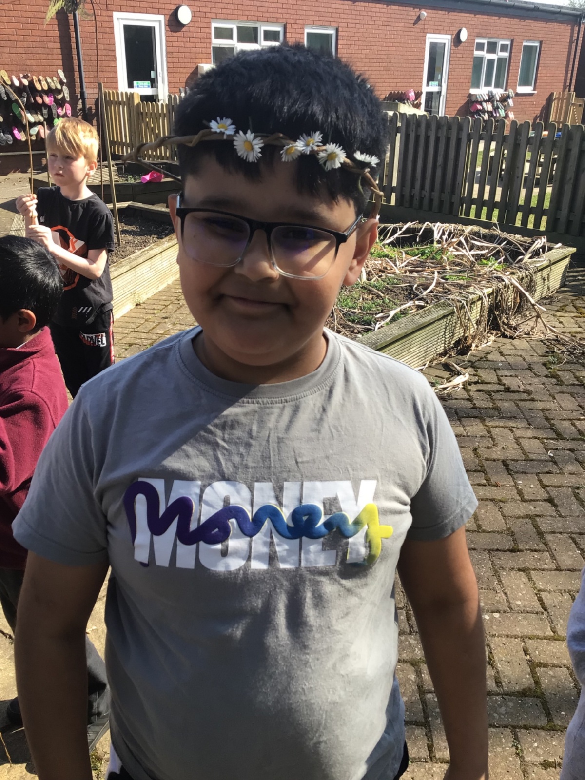 We weaved willow to make a crown and used natural objects from outside to decorate it.