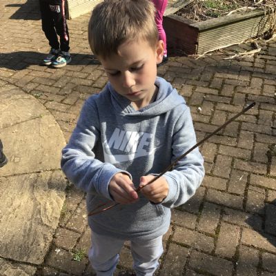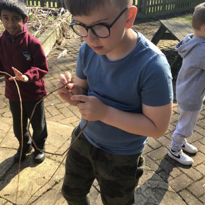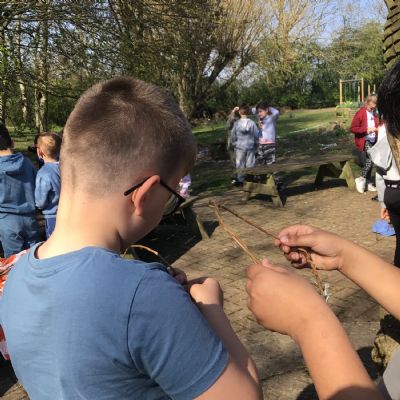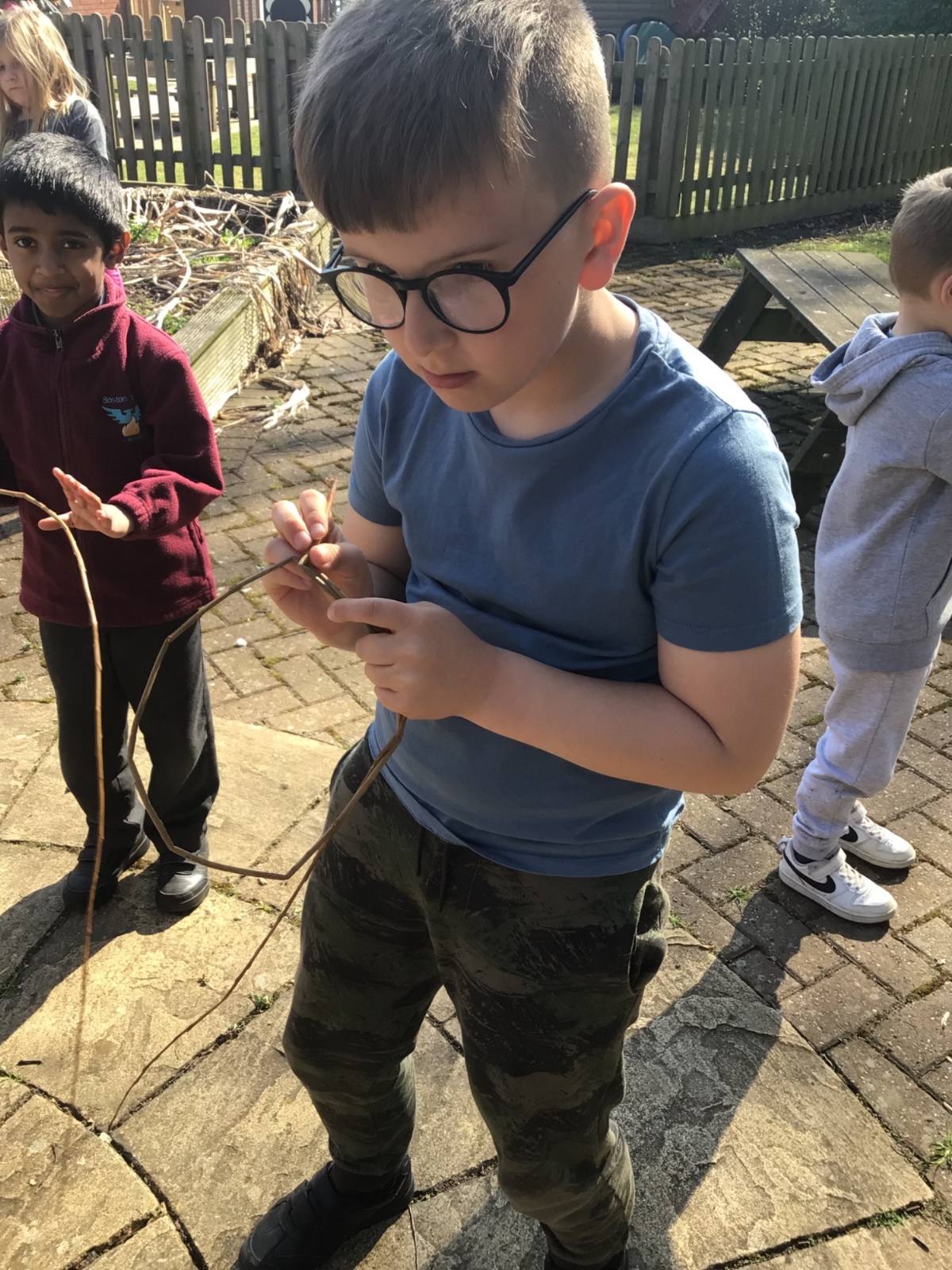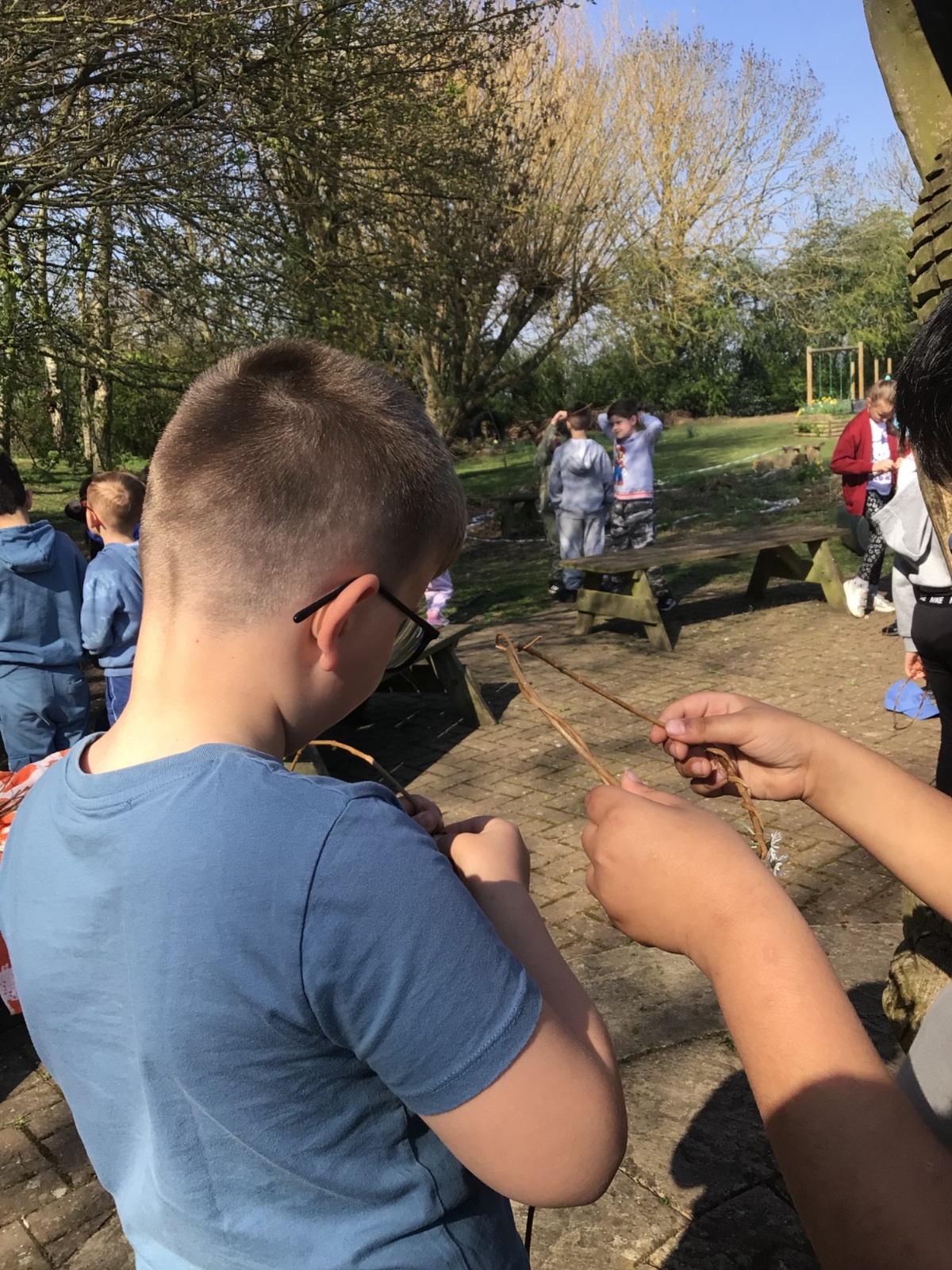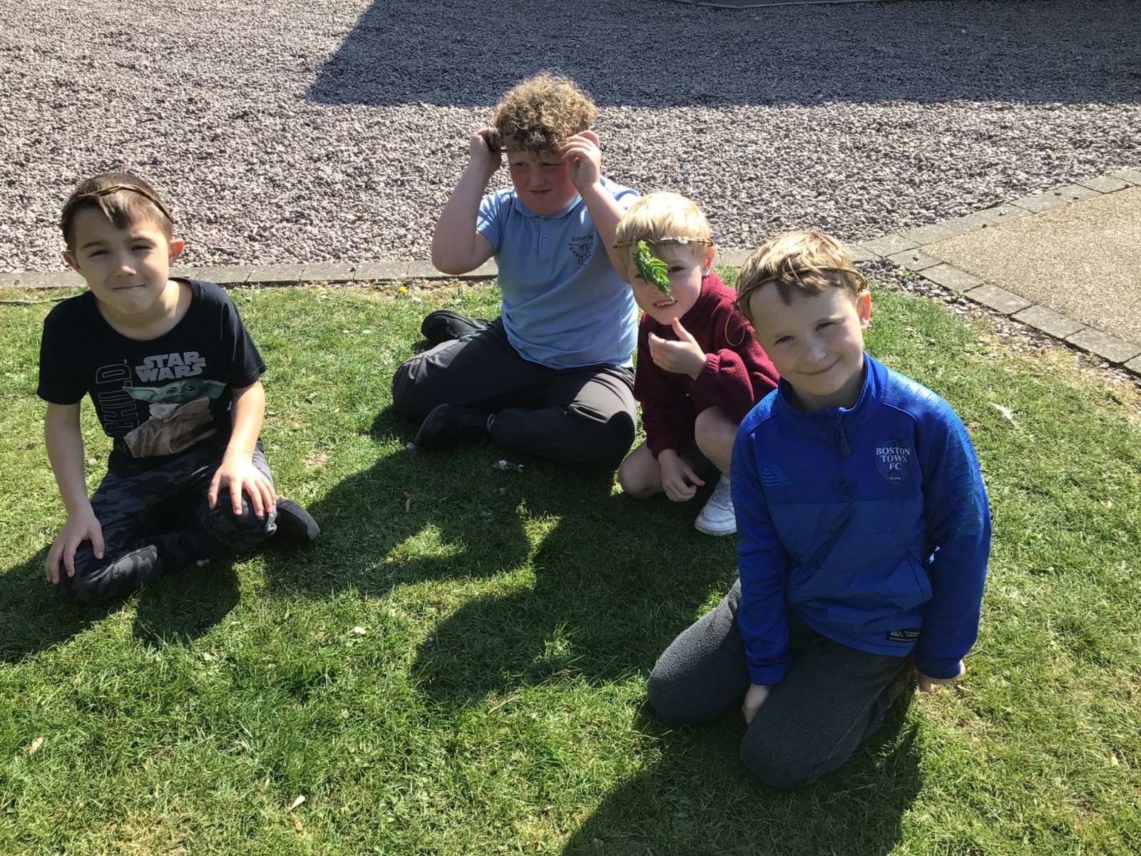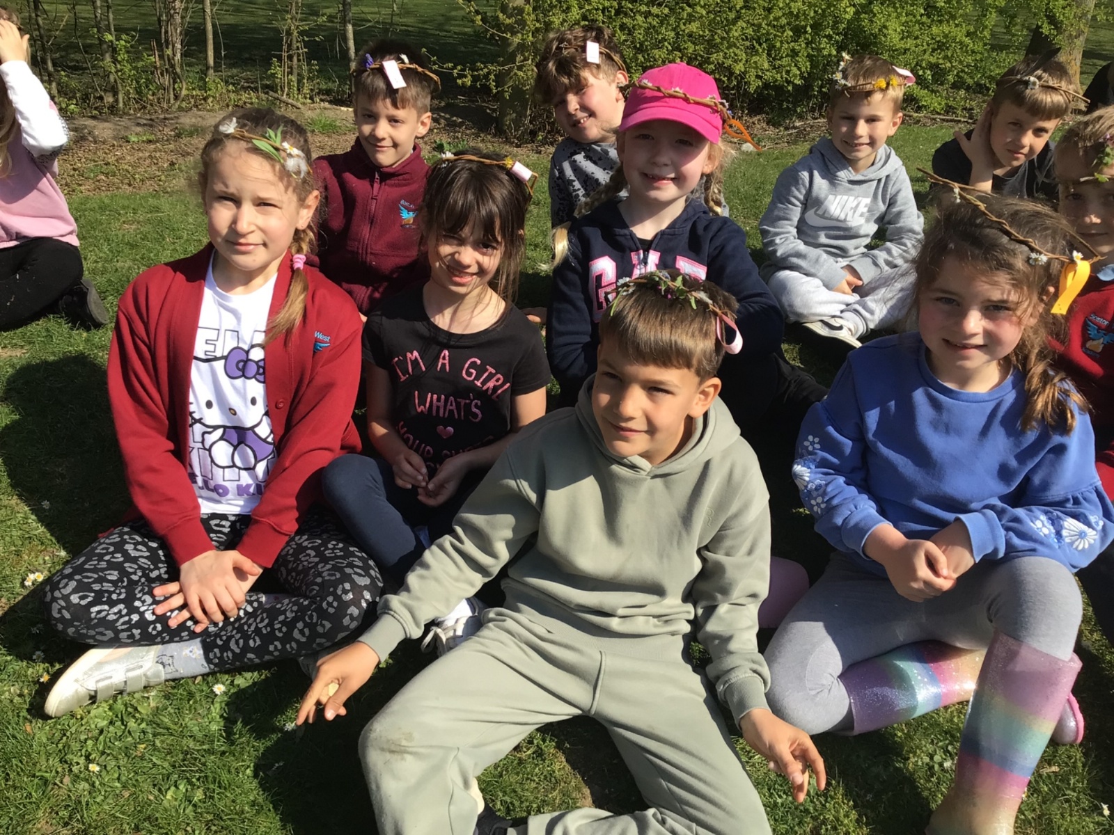We weaved willow to make a crown and used natural objects from outside to decorate it.