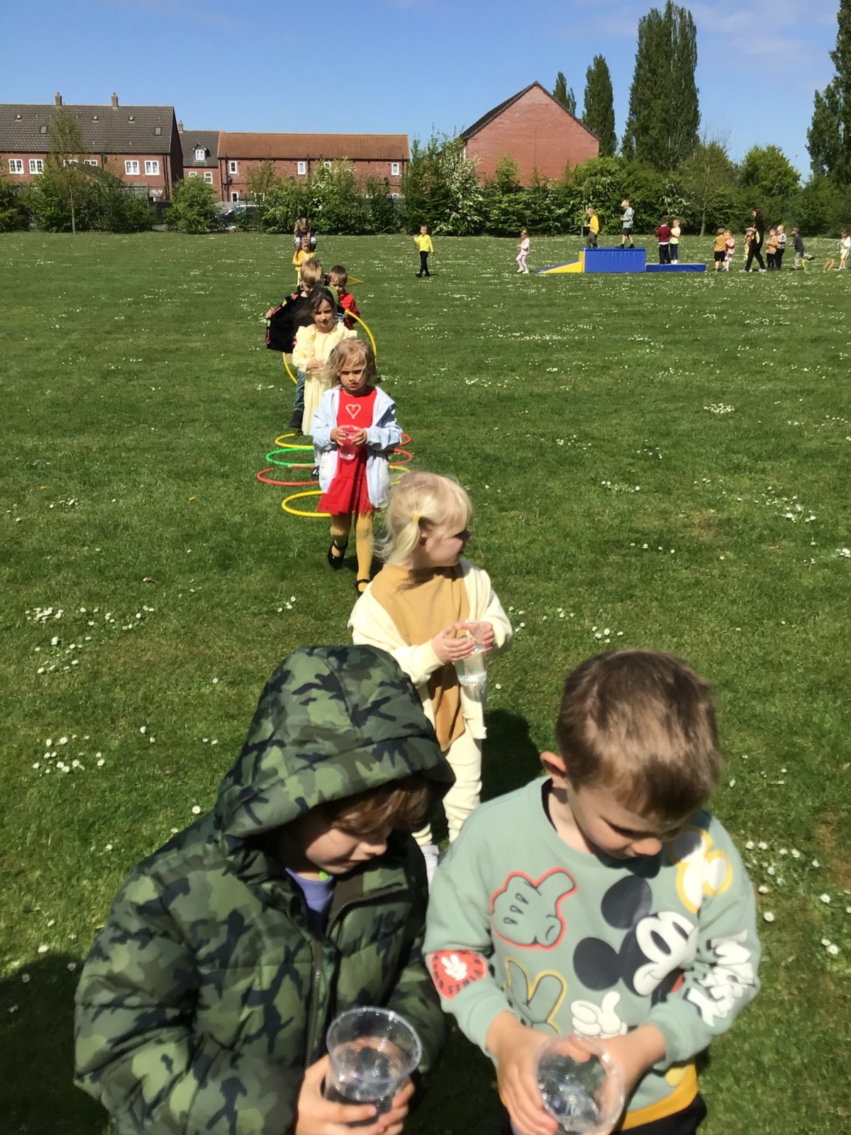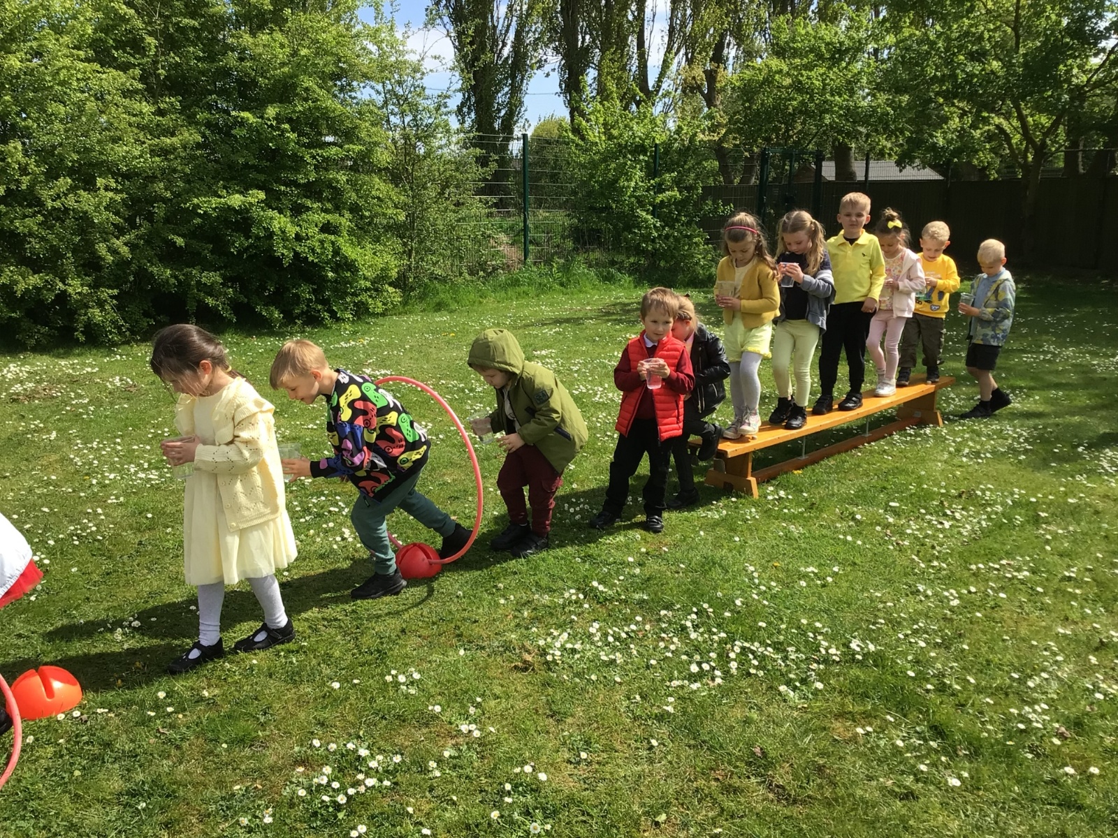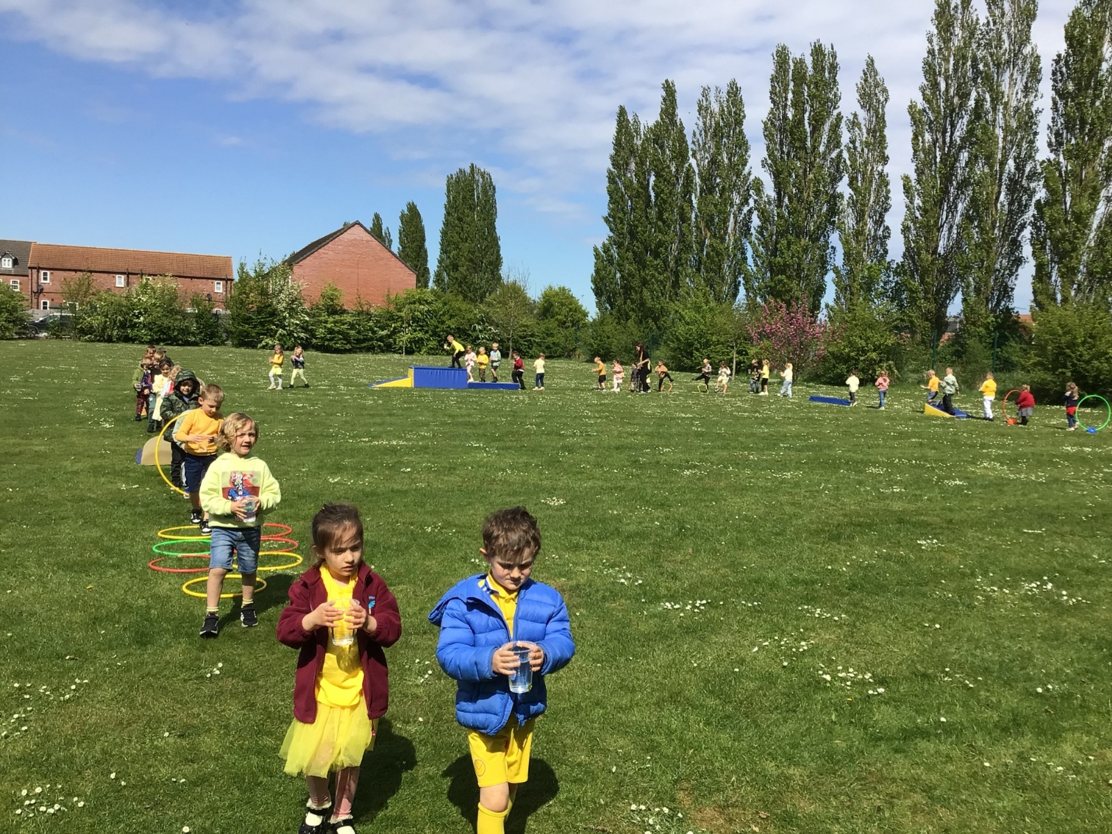 What a great day! The children came to school wearing yellow and completed their chick fund-raising event in the afternoon. The children were set a challenge to carry a cup of water around an obstacle course to fill a container. They all rose to the occasion and finished in a record-breaking time - 30 mins! Well done everyone, great collaboration.