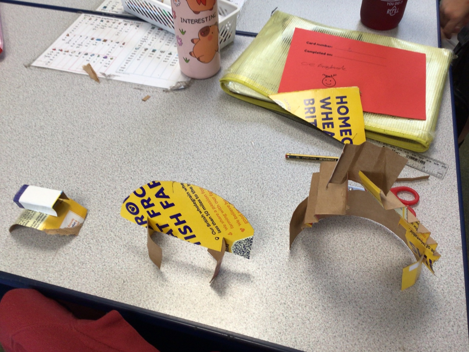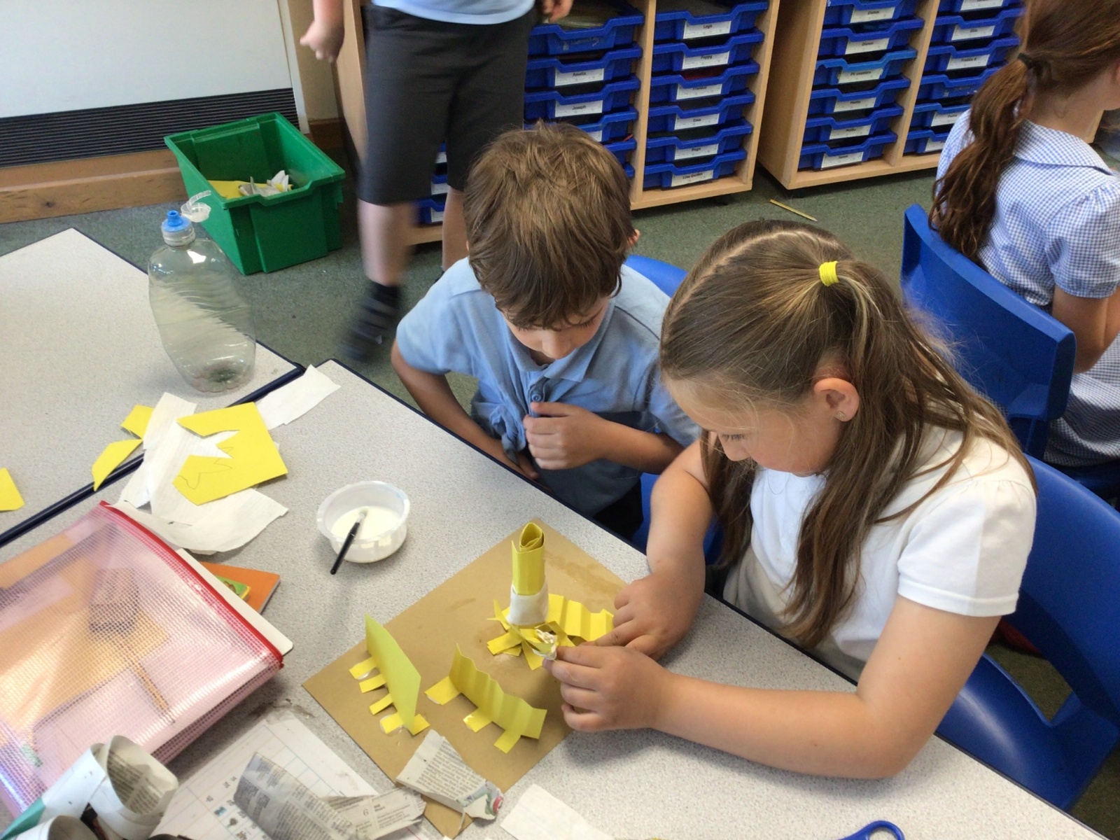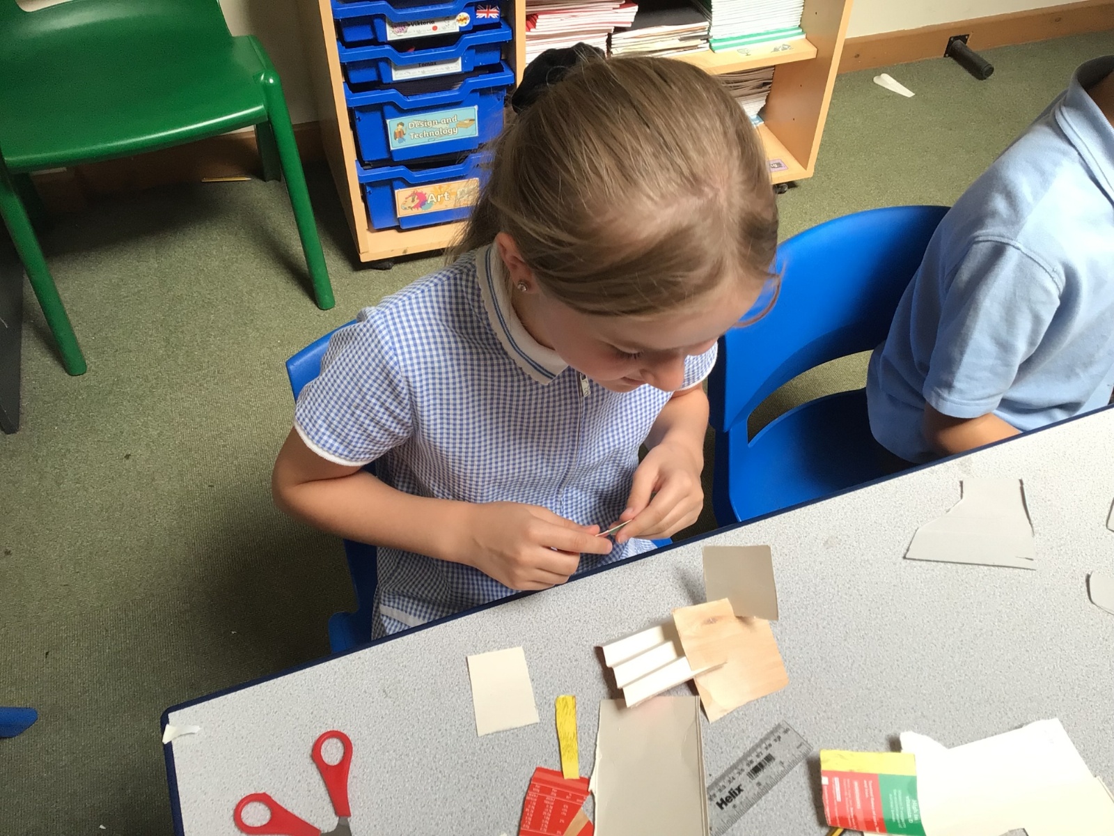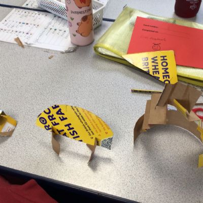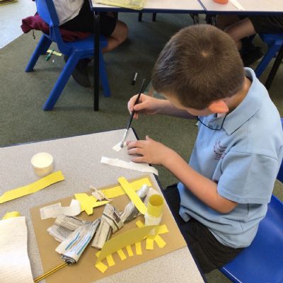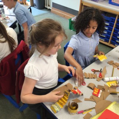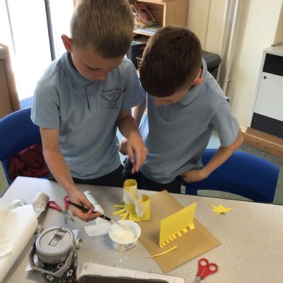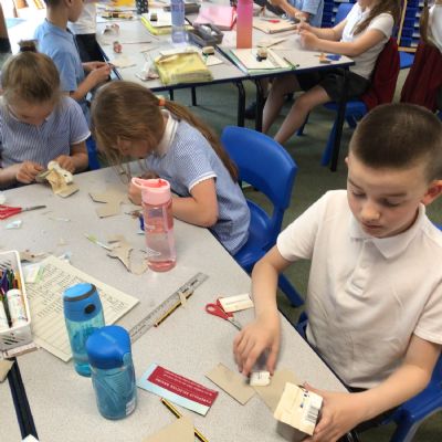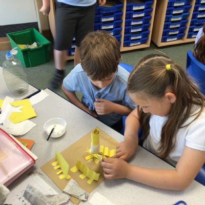 In art, we have been studying the work in English sculptor, Anthony Caro. We've practised joining card to make our own 3d sculptures using techniques such as, twisting, creating tabs, tying, rolling and making slots.