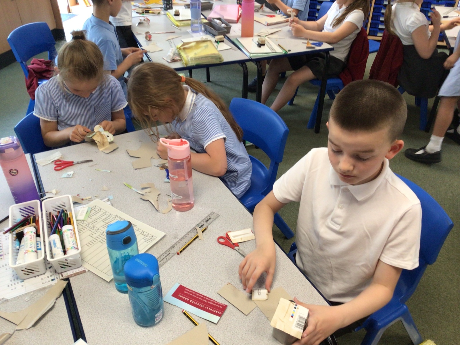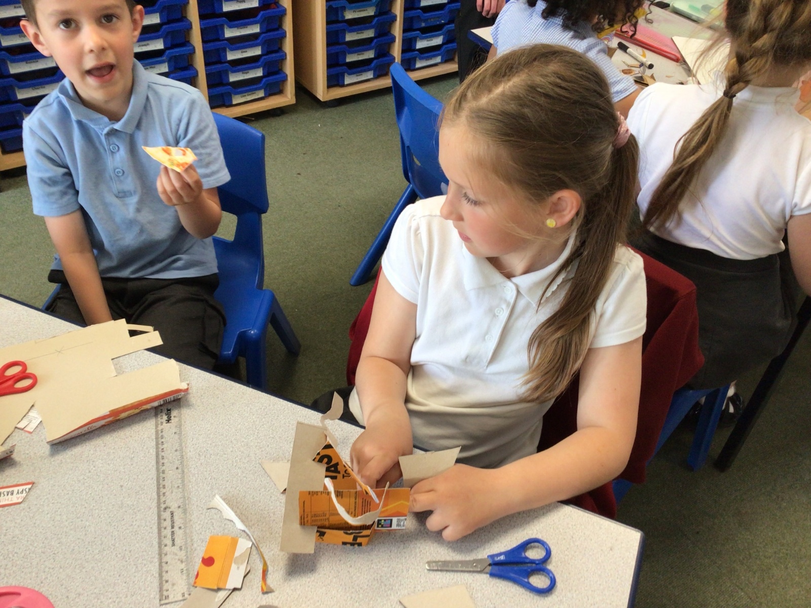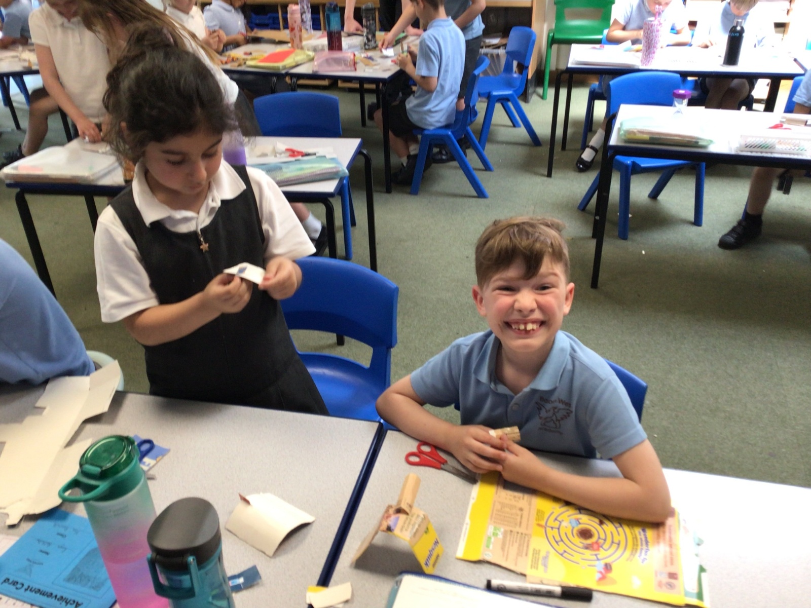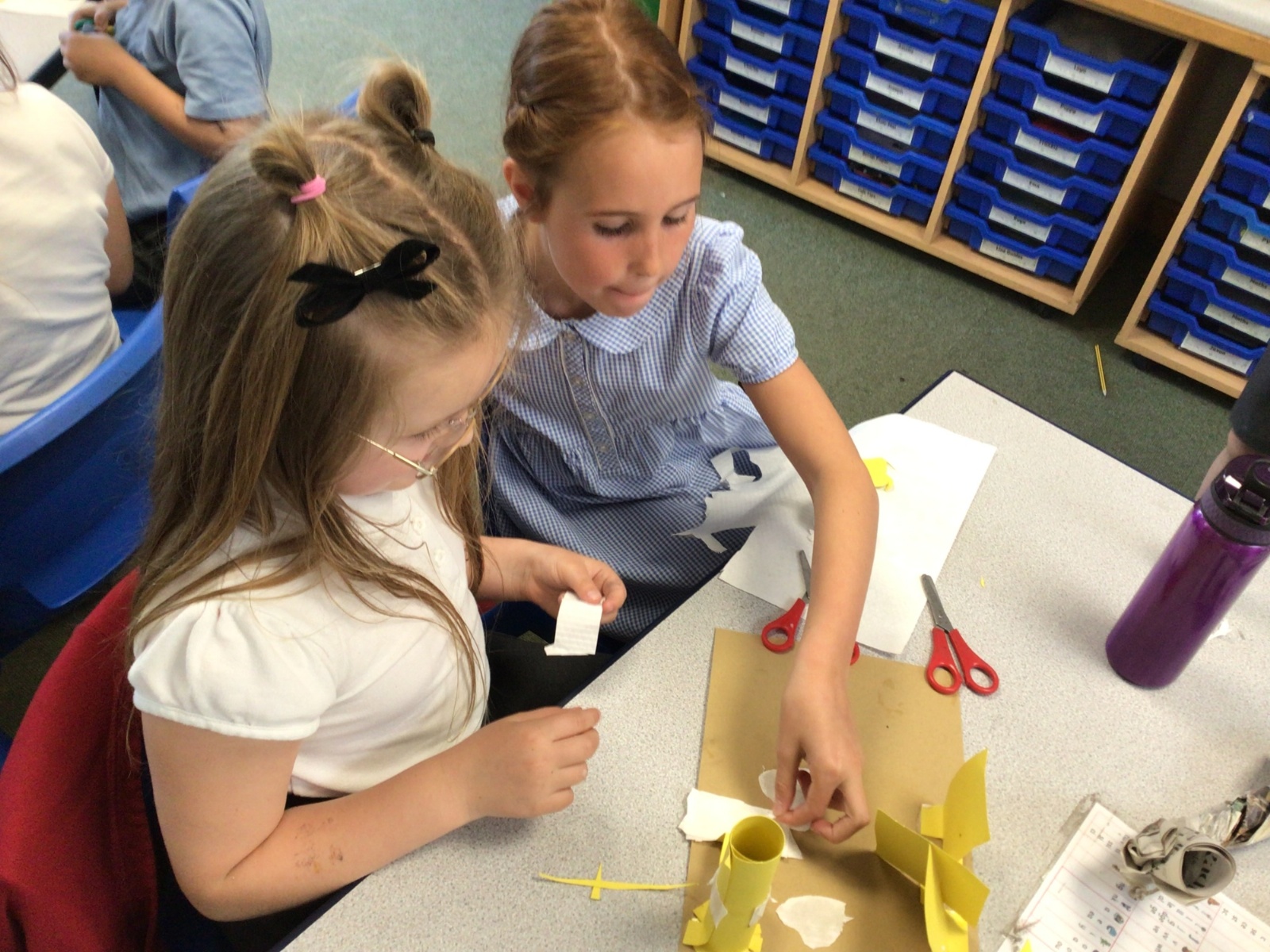 In art, we have been studying the work in English sculptor, Anthony Caro. We've practised joining card to make our own 3d sculptures using techniques such as, twisting, creating tabs, tying, rolling and making slots.