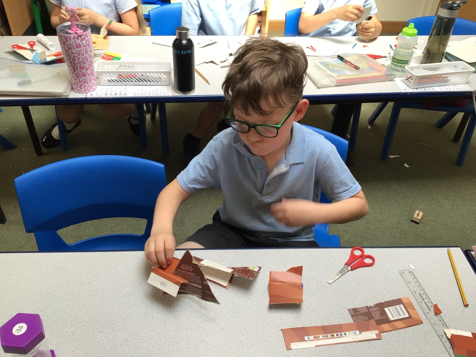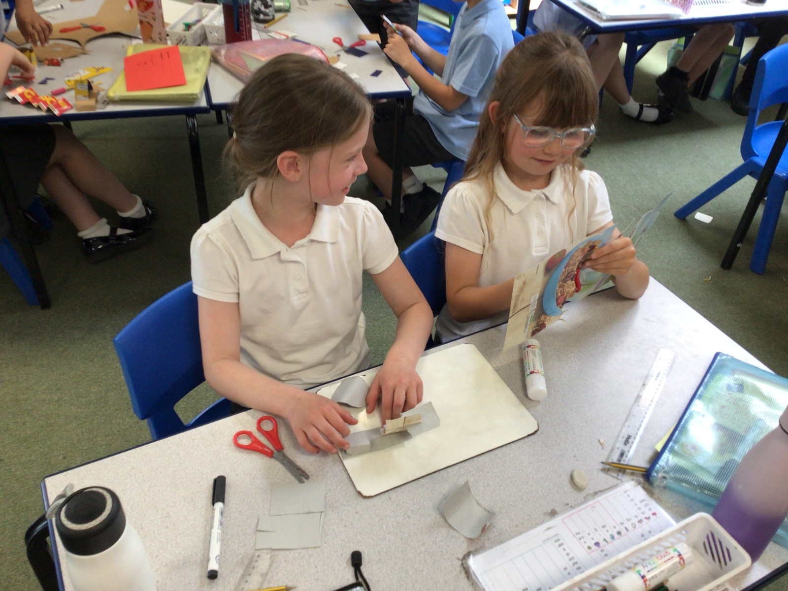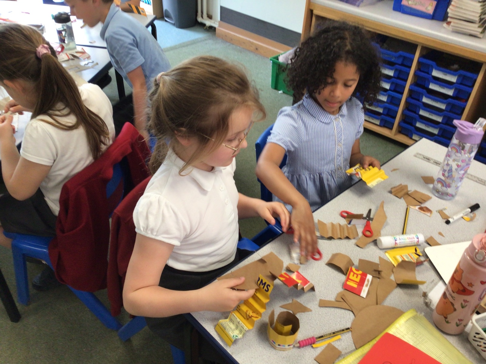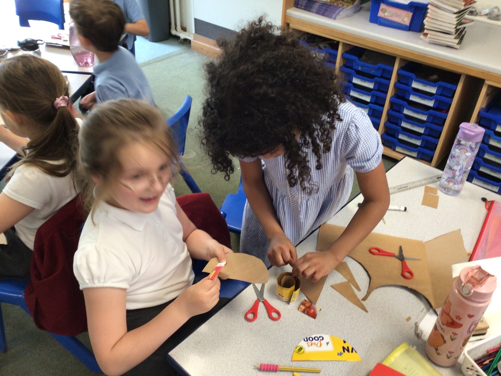In art, we have been studying the work in English sculptor, Anthony Caro. We've practised joining card to make our own 3d sculptures using techniques such as, twisting, creating tabs, tying, rolling and making slots.