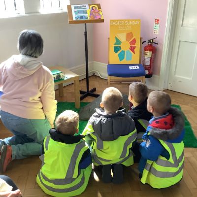 The children in Miss Melloy's class enjoyed a trip to the Zion Church to learn more about the Easter story.