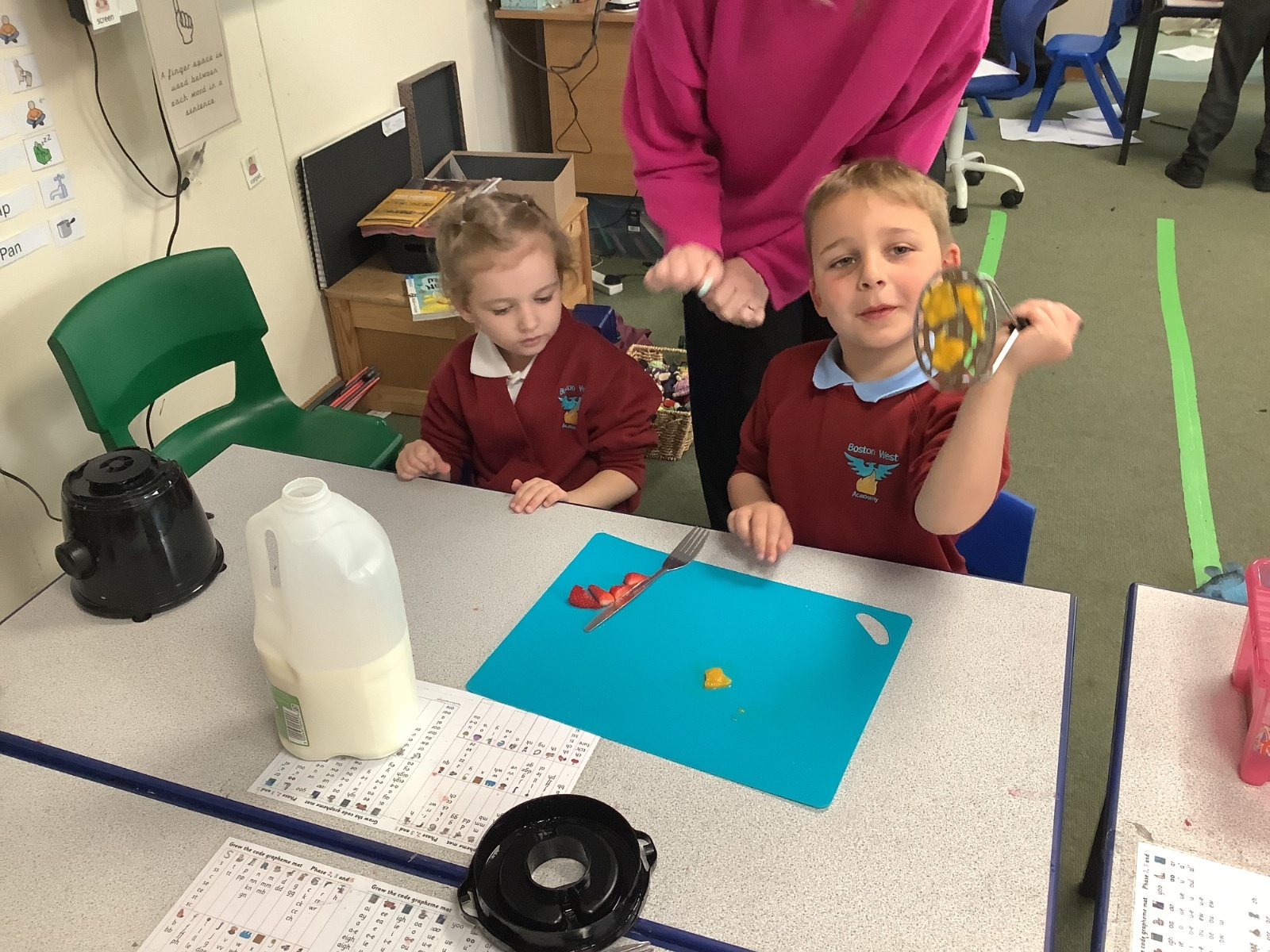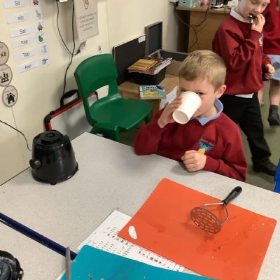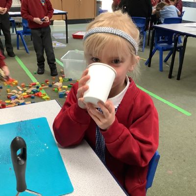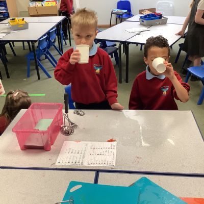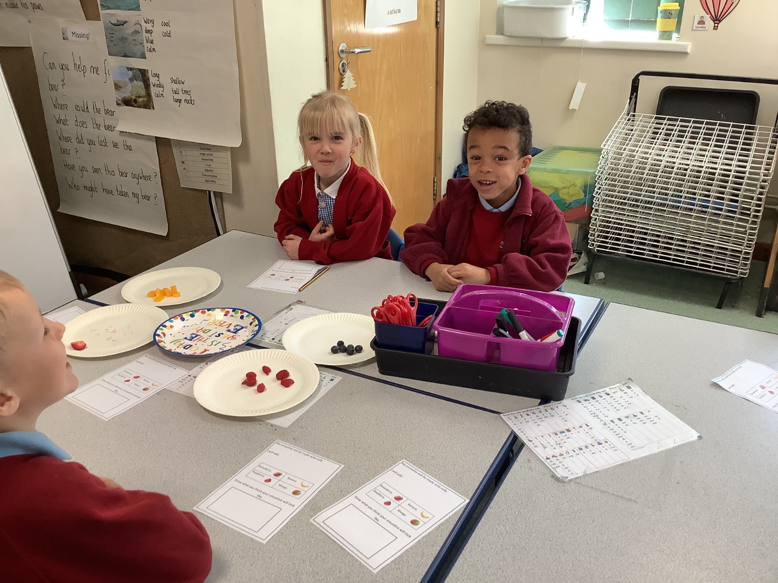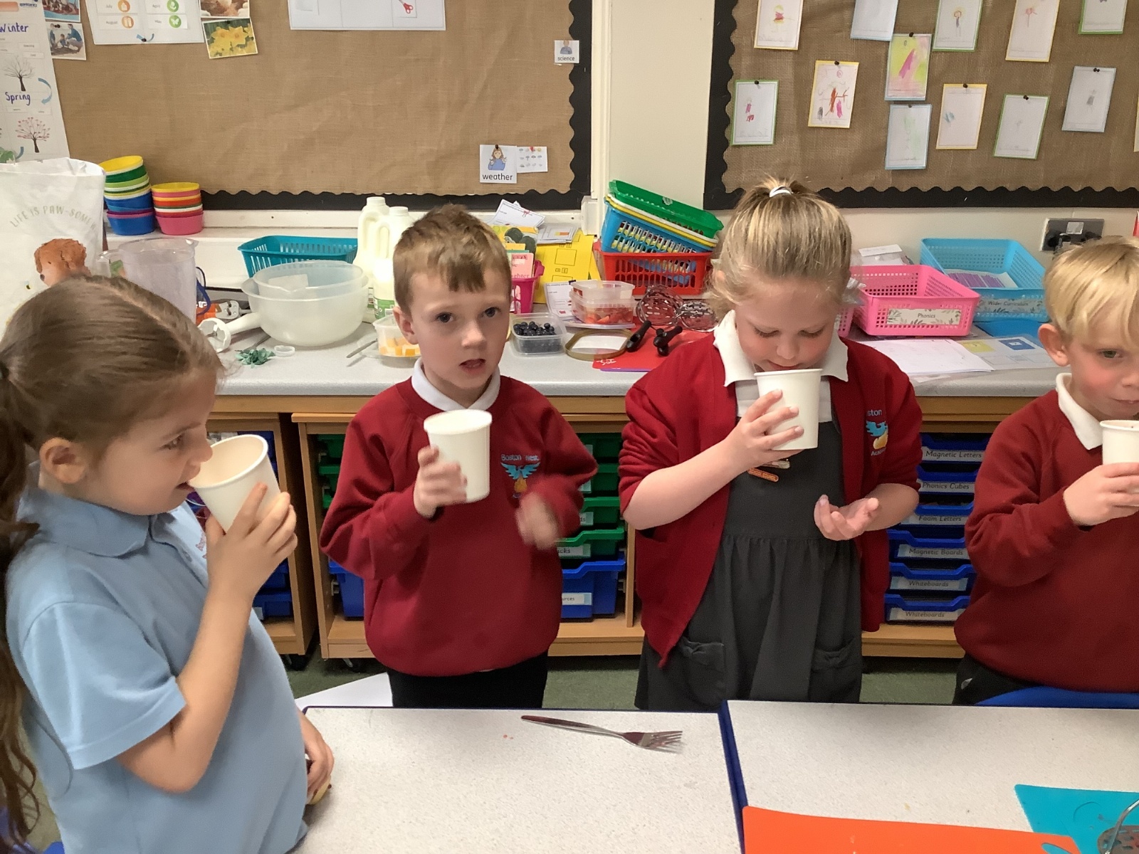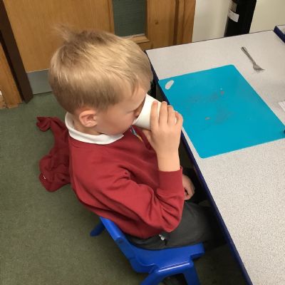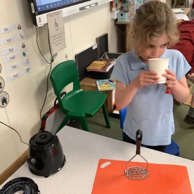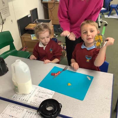 They enjoyed tasting a range of different fruits before making smoothies with fruits of their choice. They particularly enjoyed tasting their smoothies!