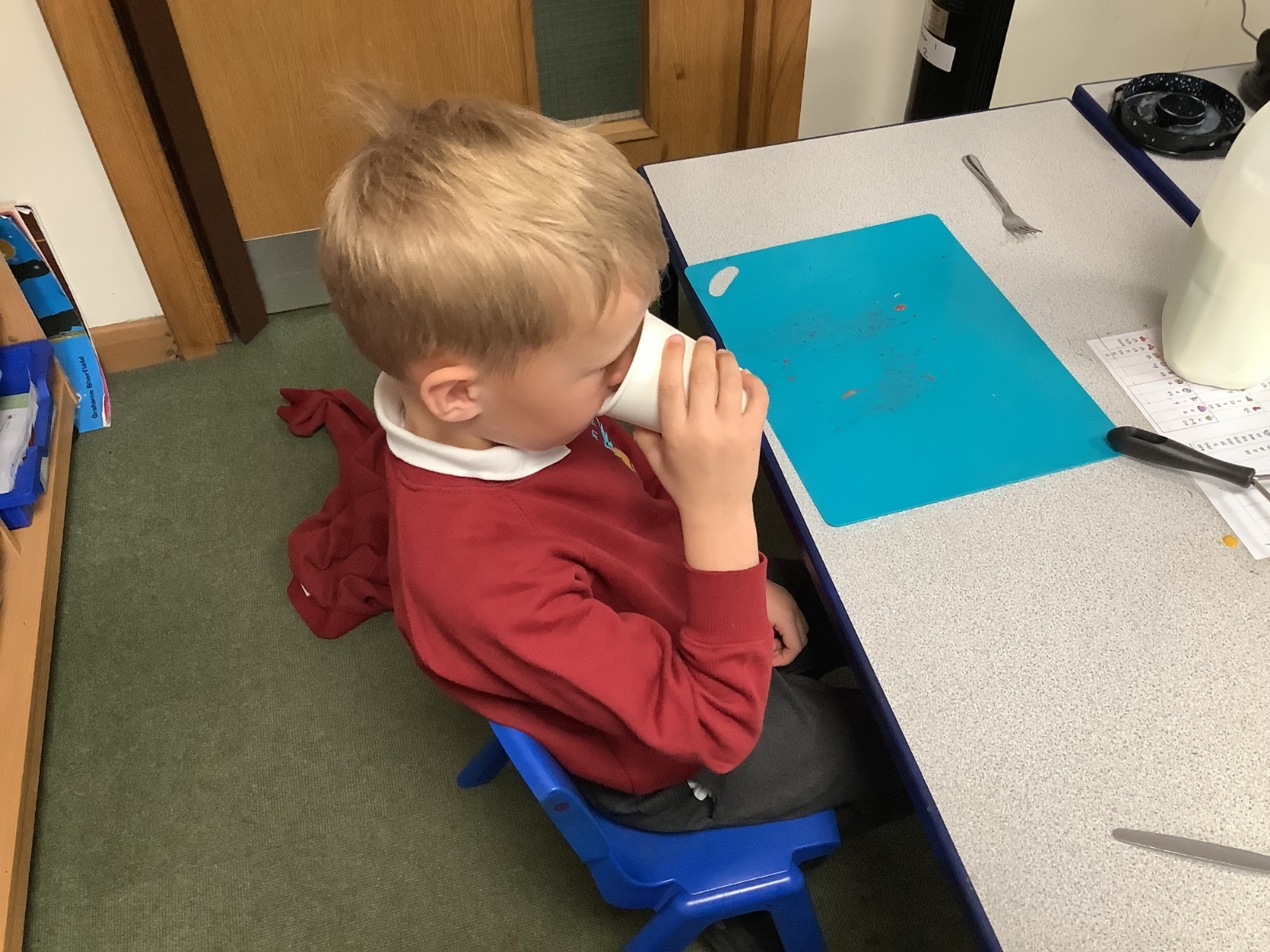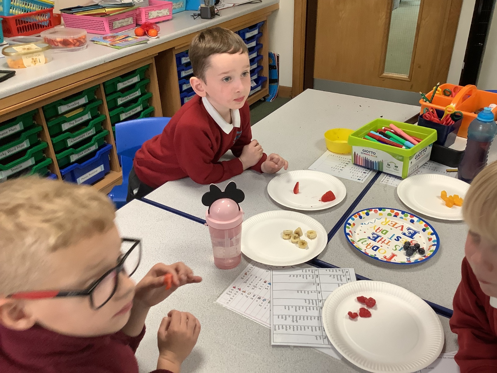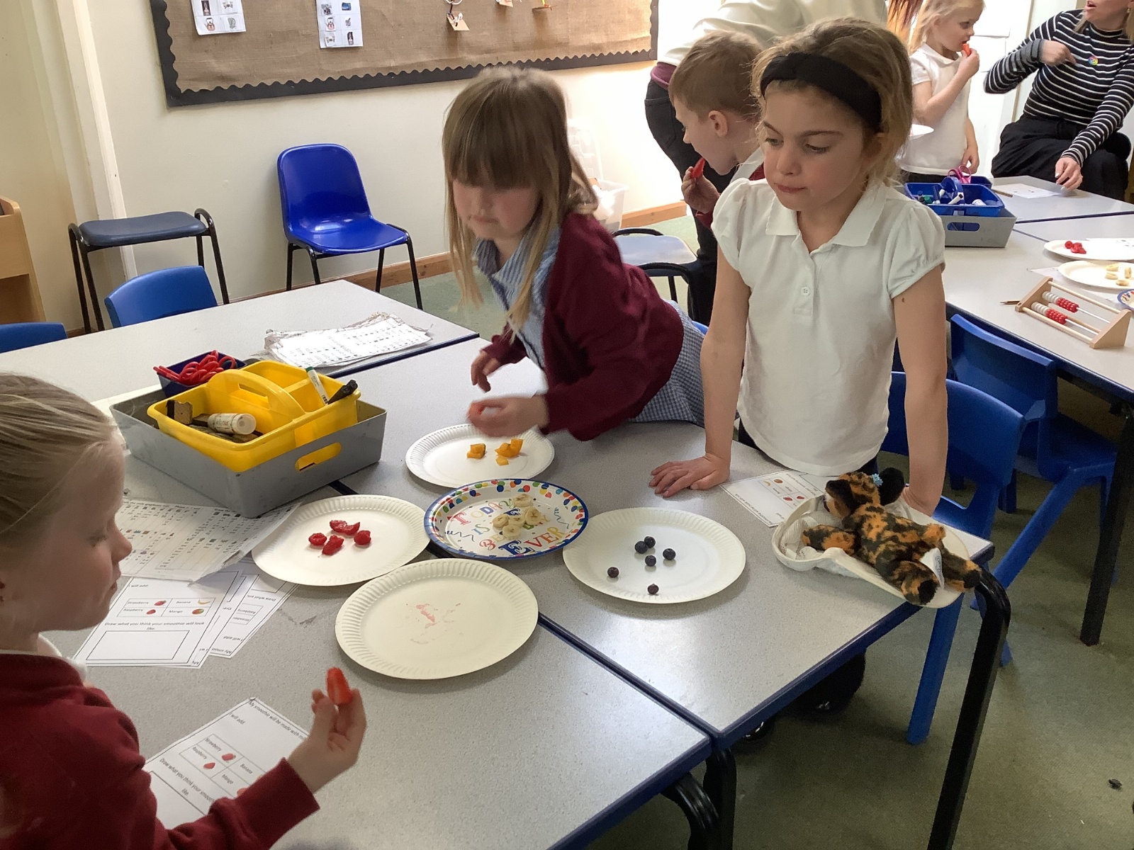 They enjoyed tasting a range of different fruits before making smoothies with fruits of their choice. They particularly enjoyed tasting their smoothies!