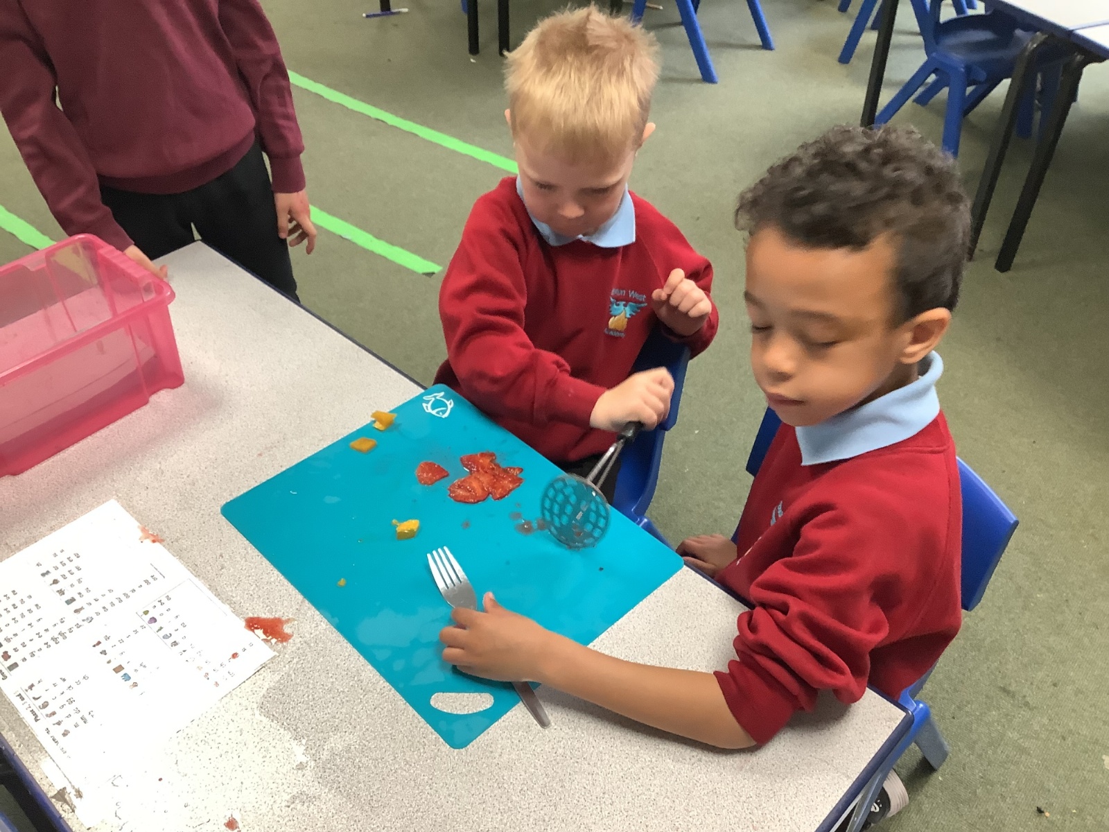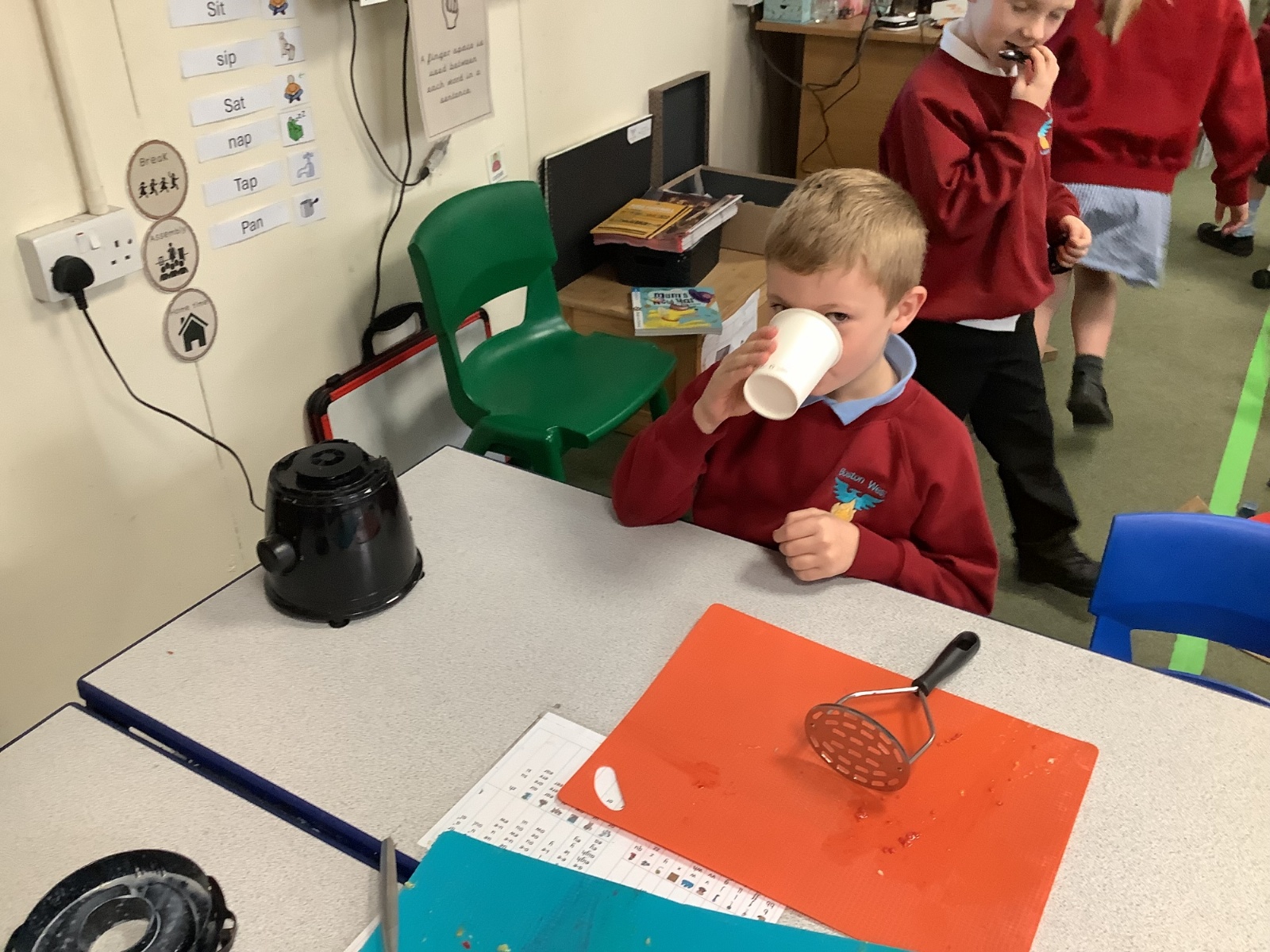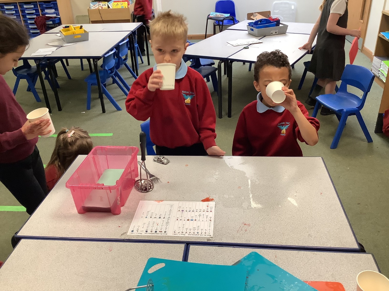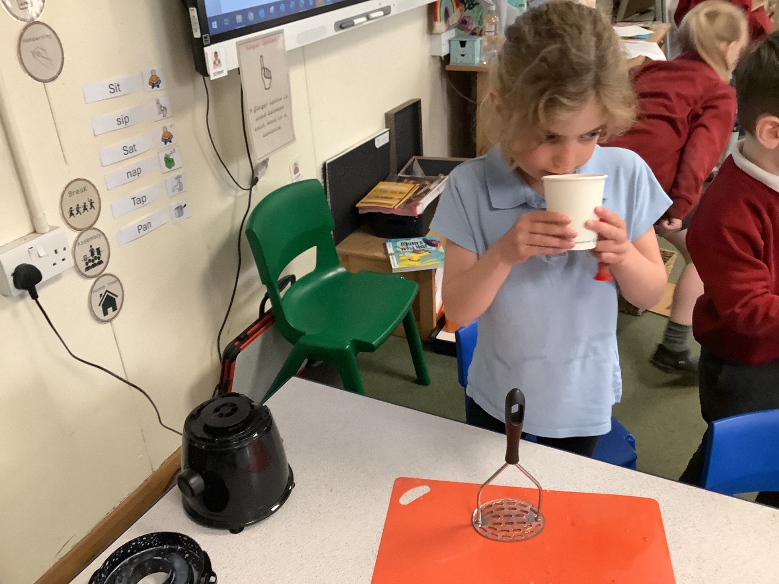 They enjoyed tasting a range of different fruits before making smoothies with fruits of their choice. They particularly enjoyed tasting their smoothies!