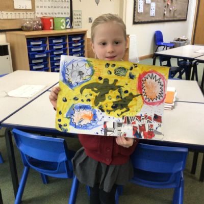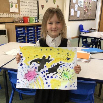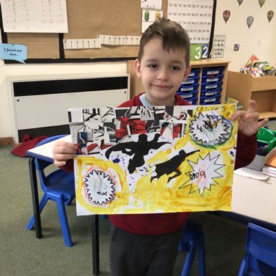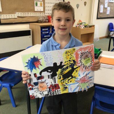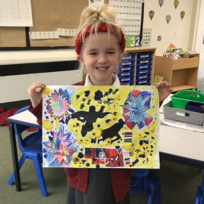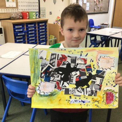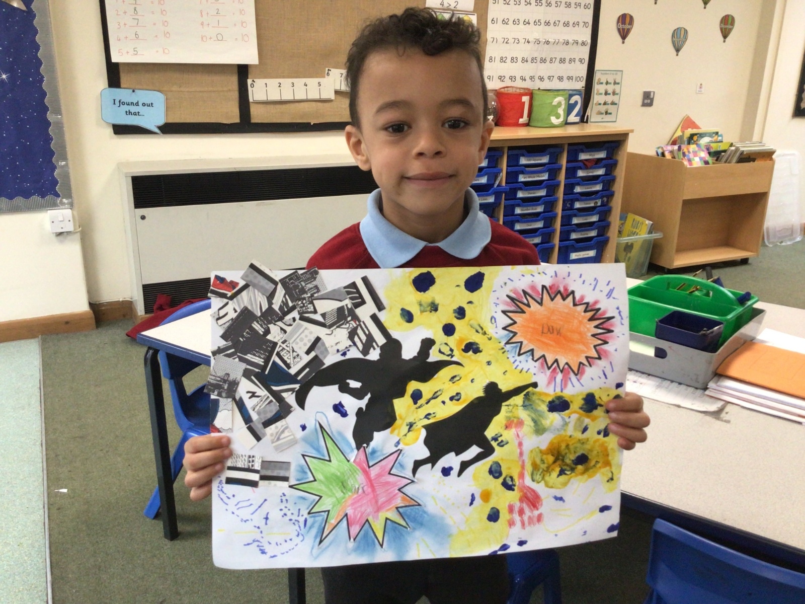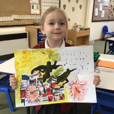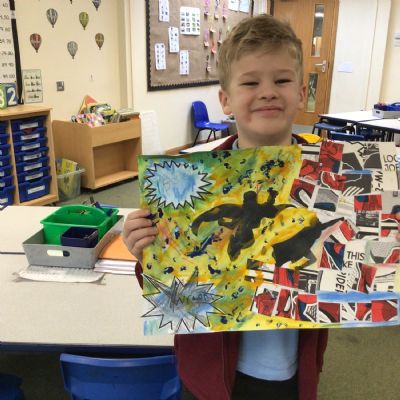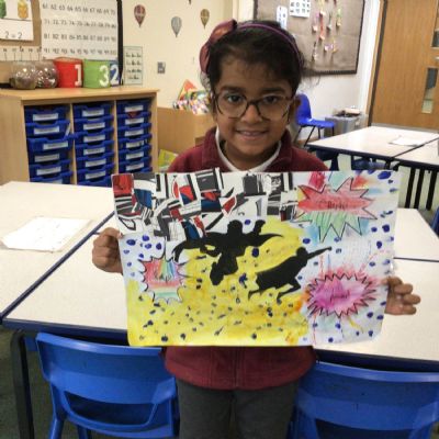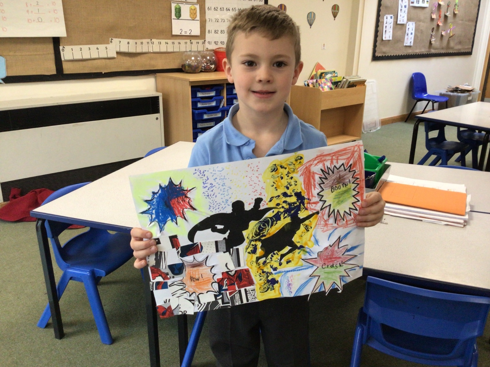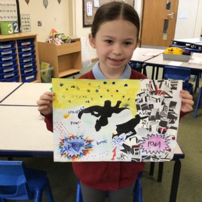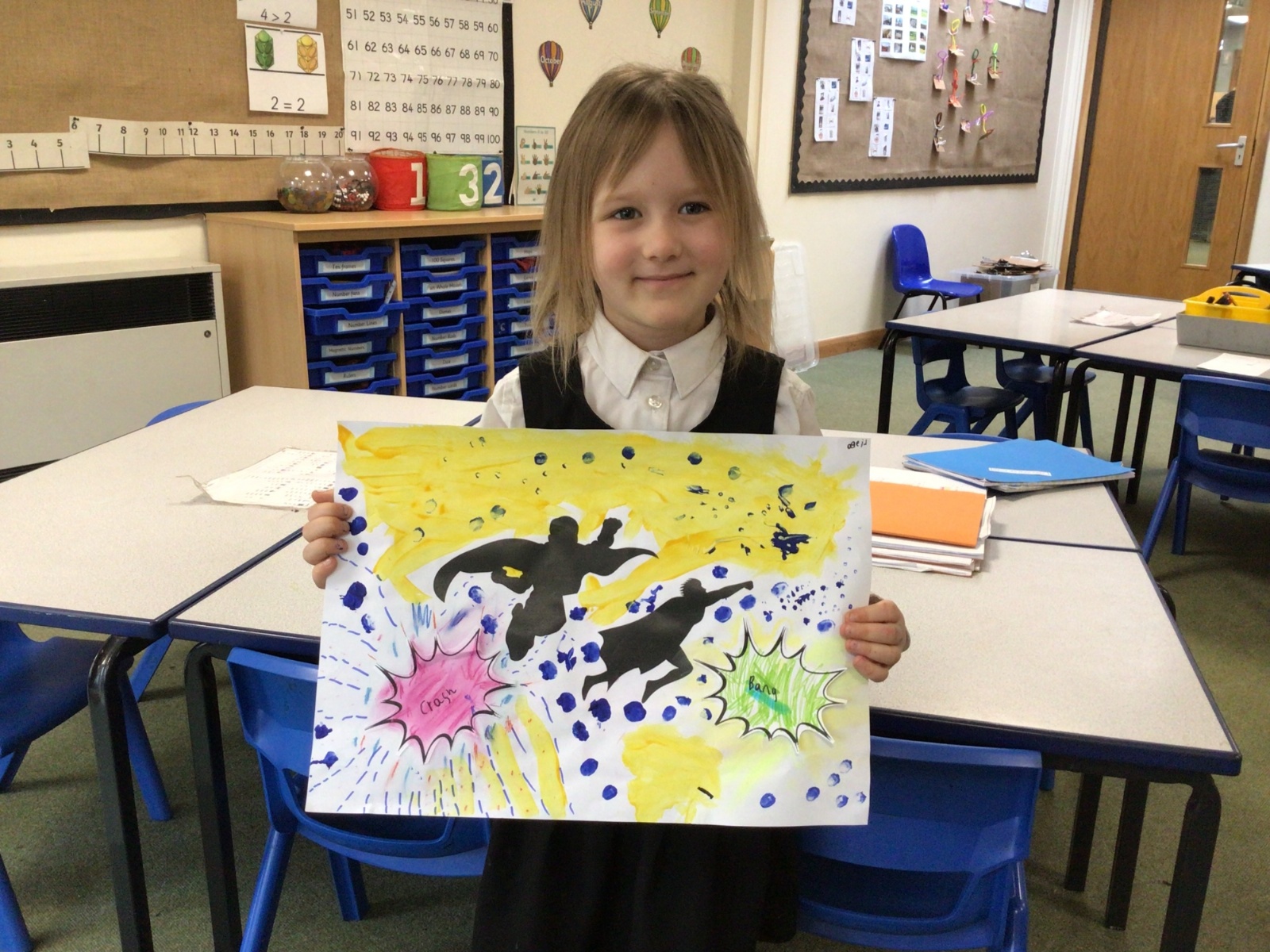 The children have enjoyed creating superhero-themed art over the past few weeks. They have used a range of techniques, including collage, painting as well as mark making.