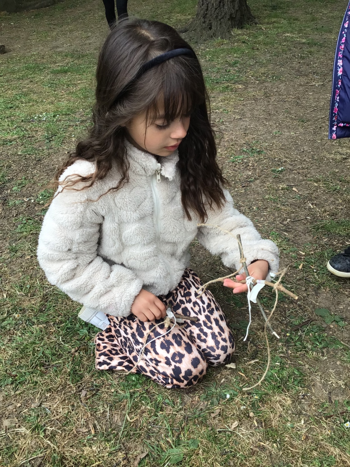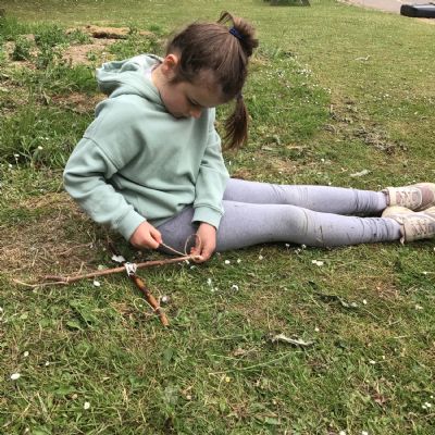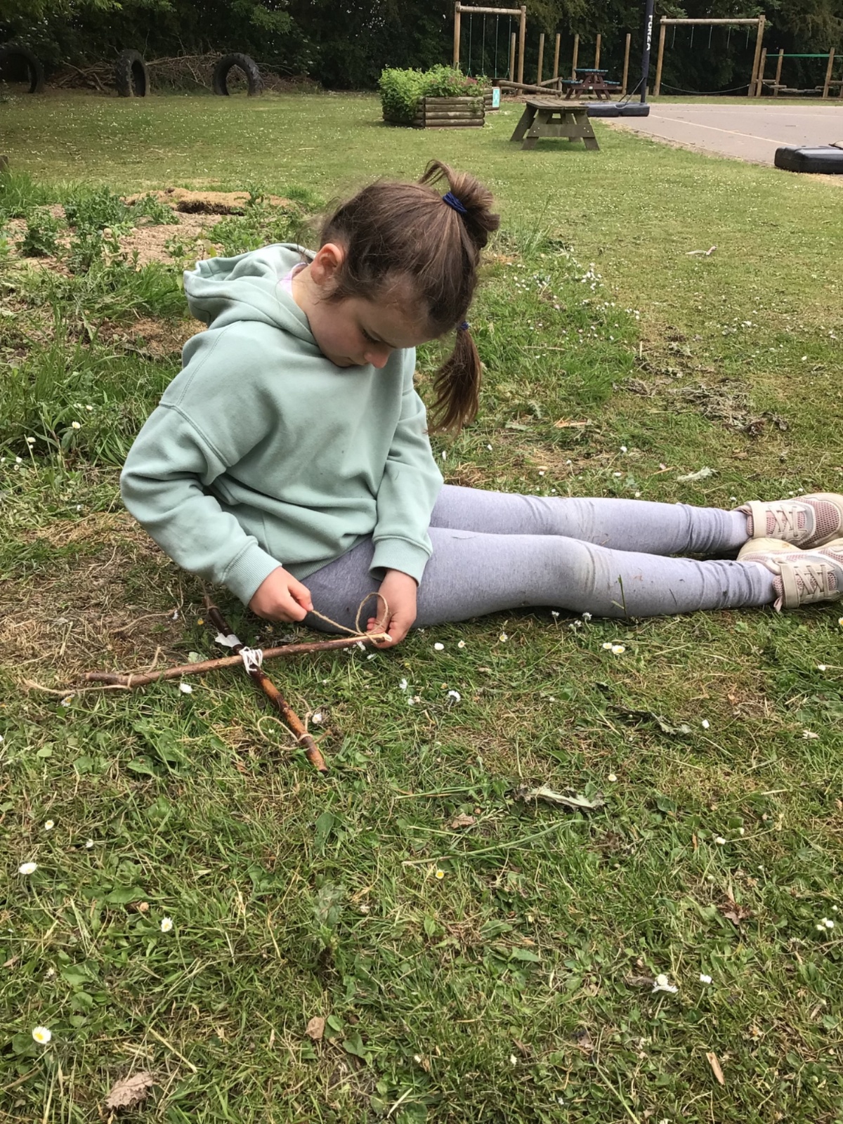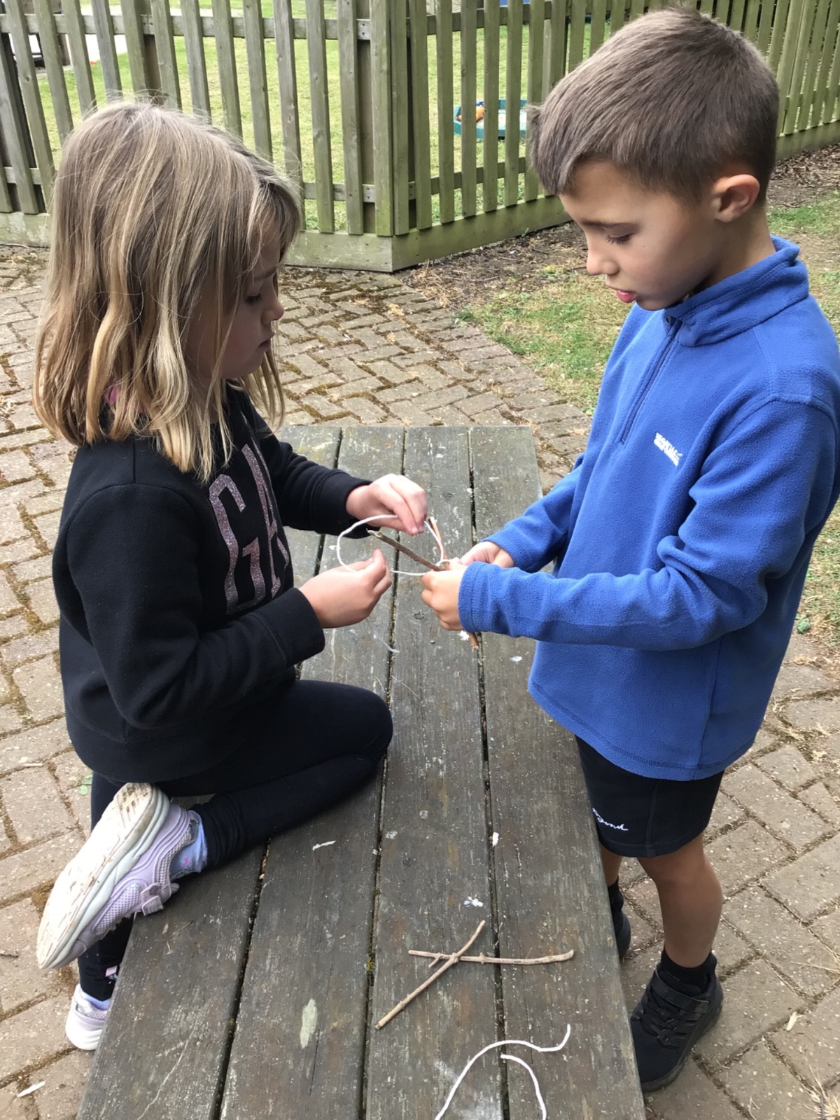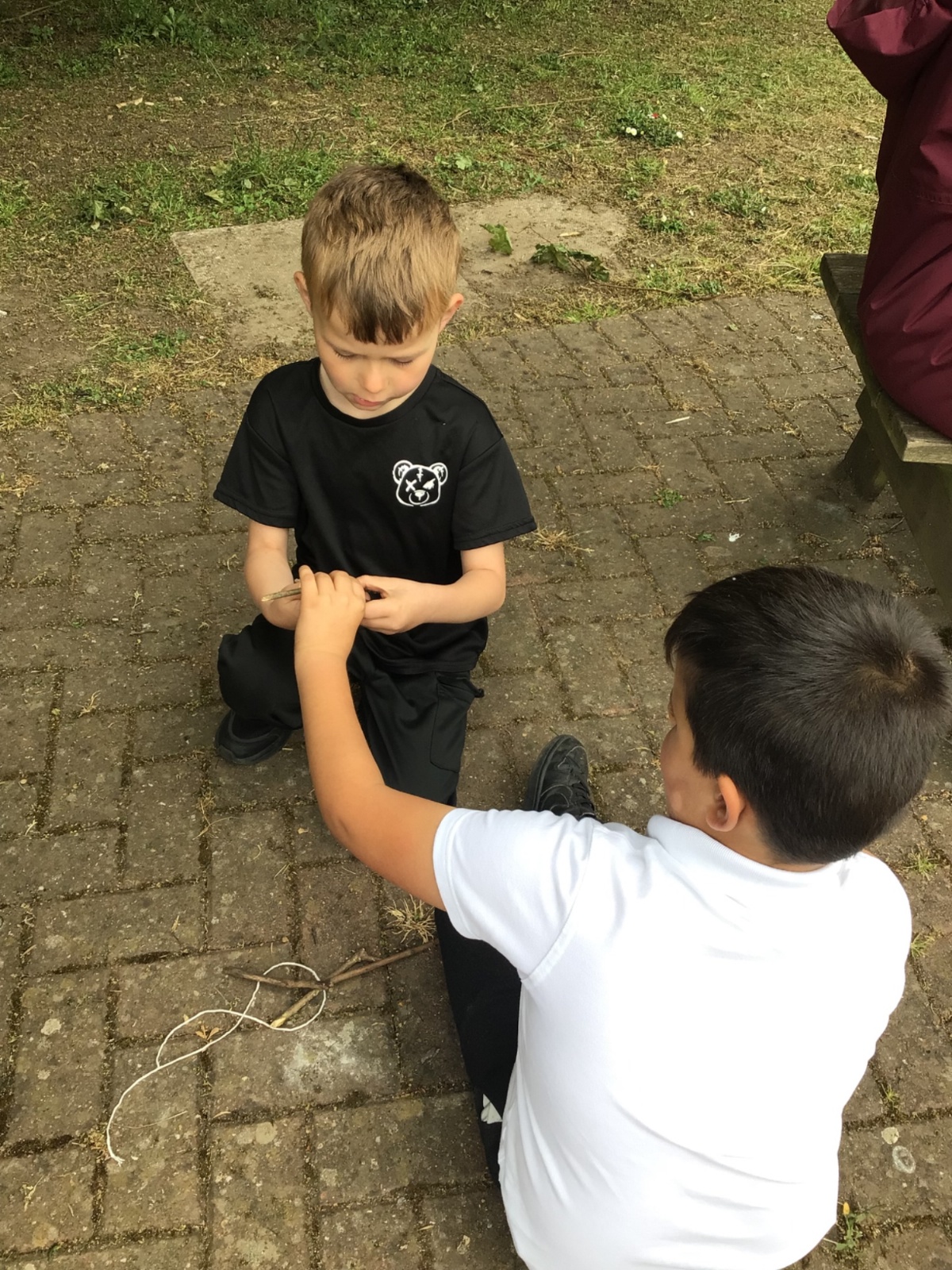Today we used our knot tying skills from last term to make a mobile from natural materials.