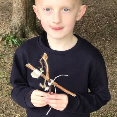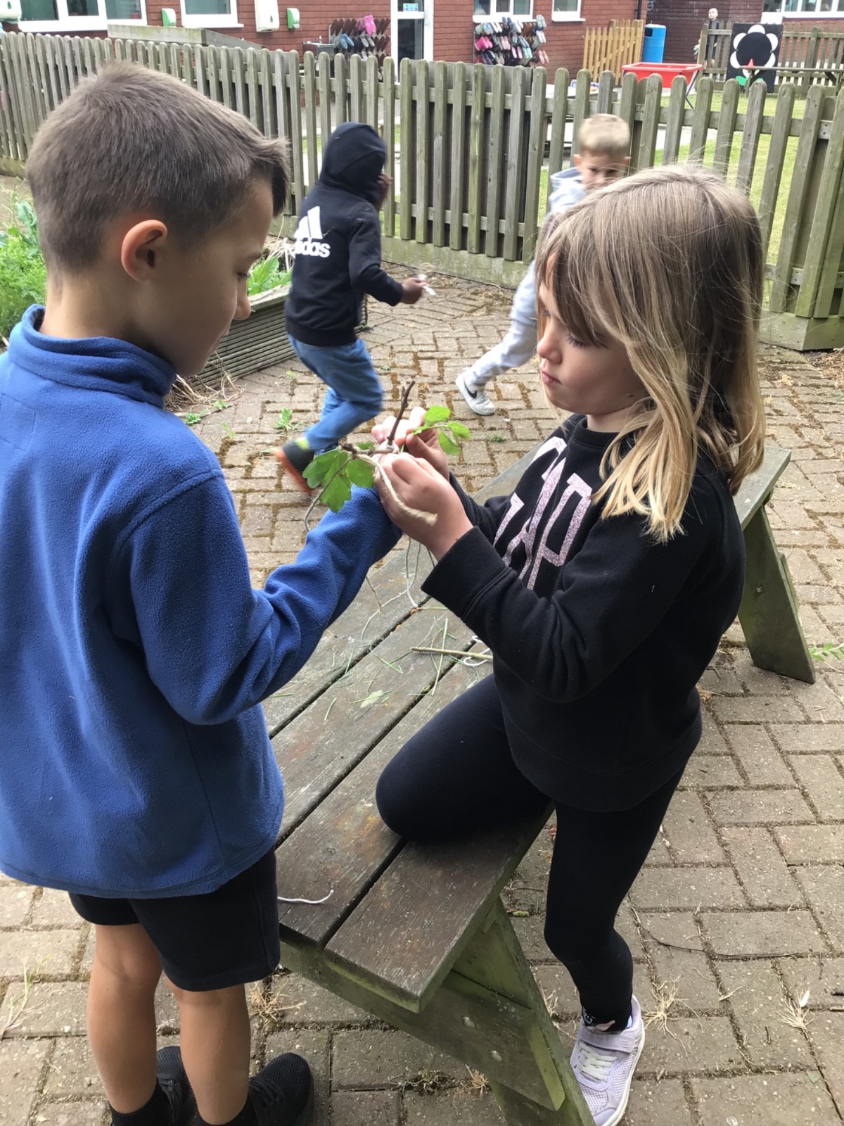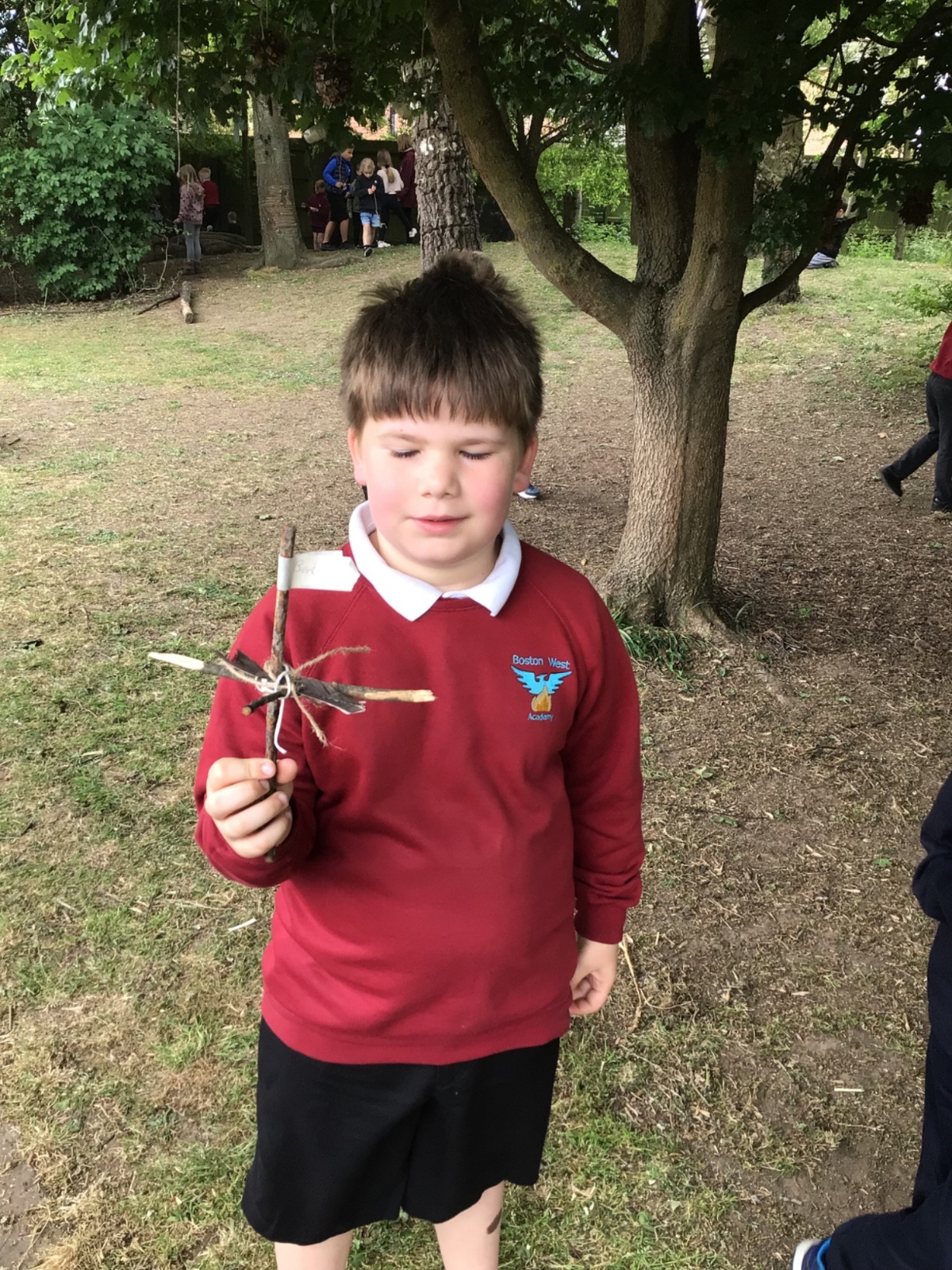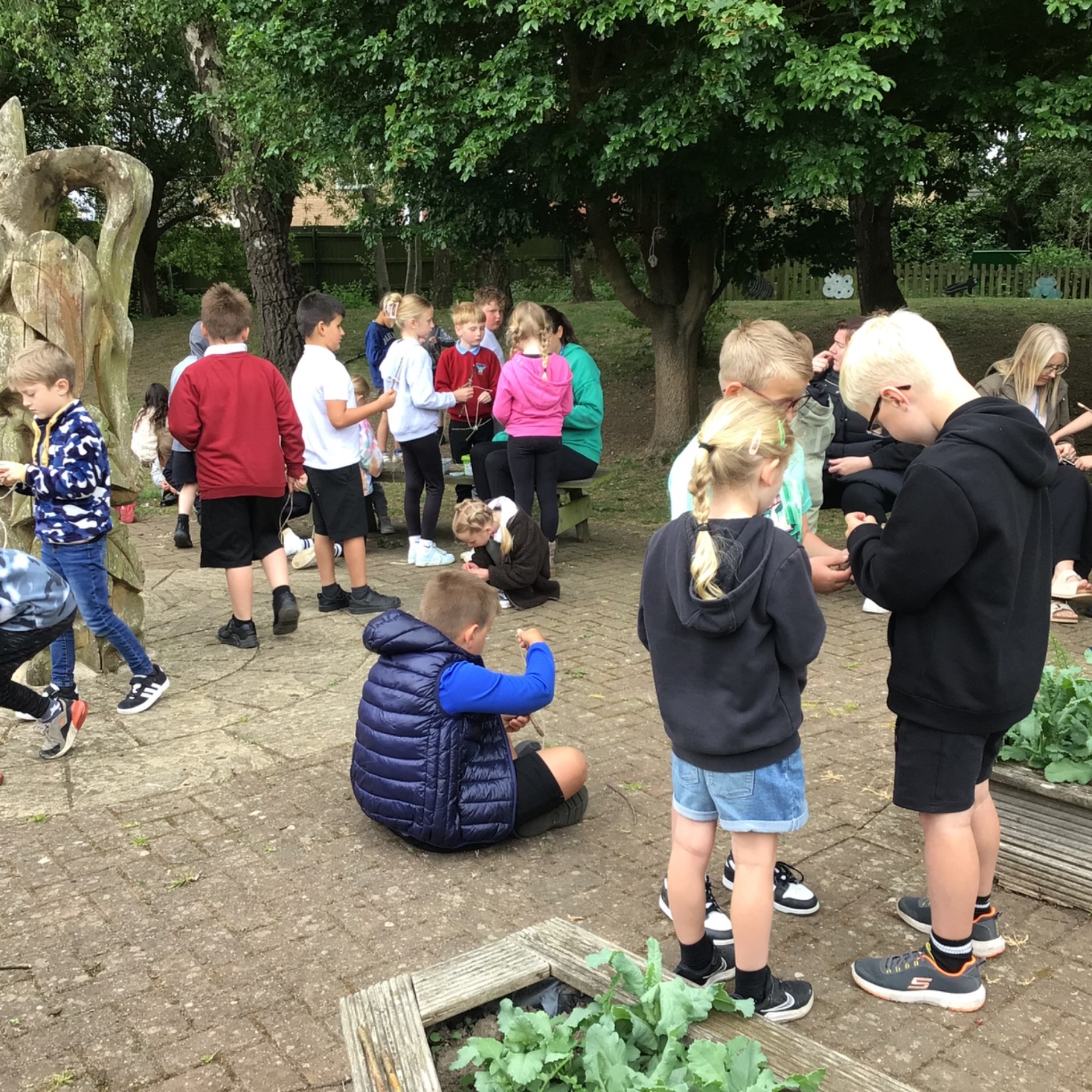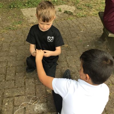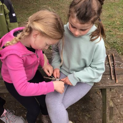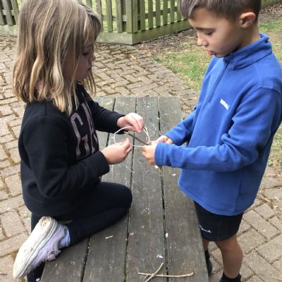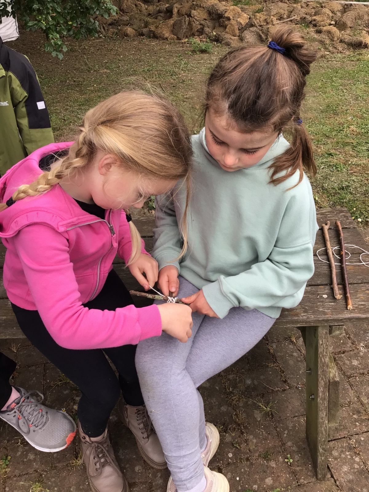 Today we used our knot tying skills from last term to make a mobile from natural materials.