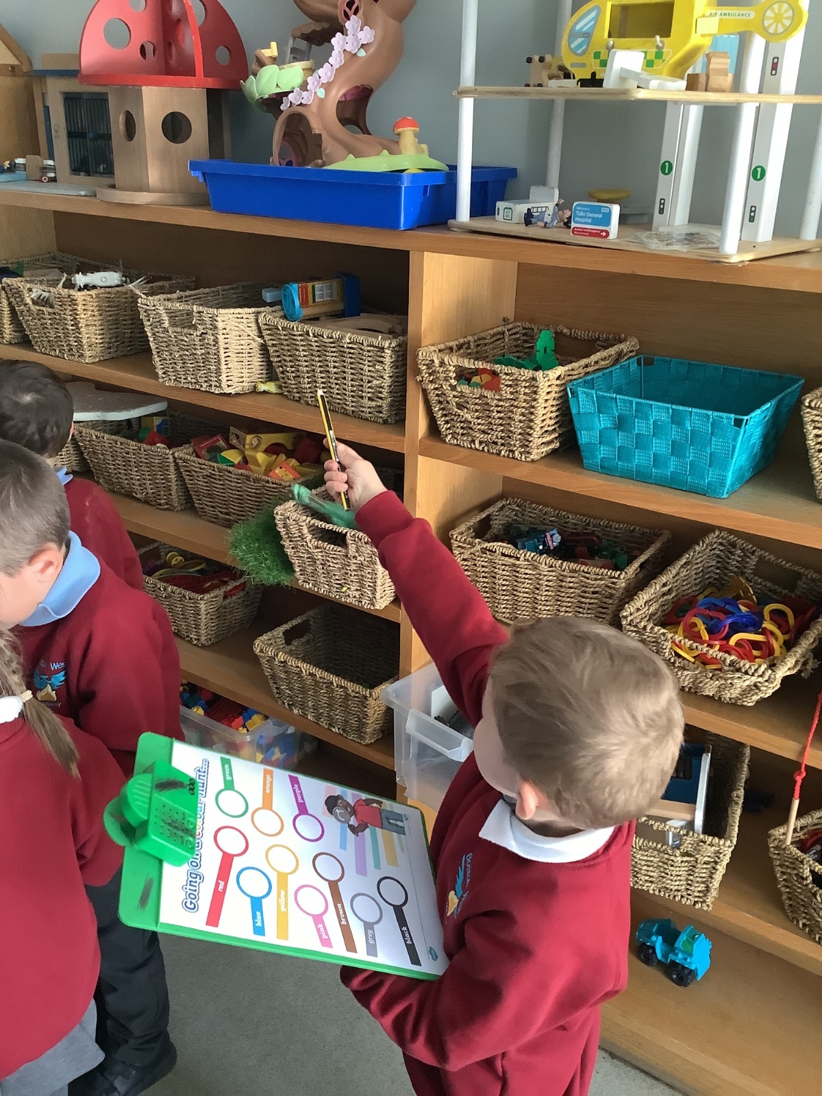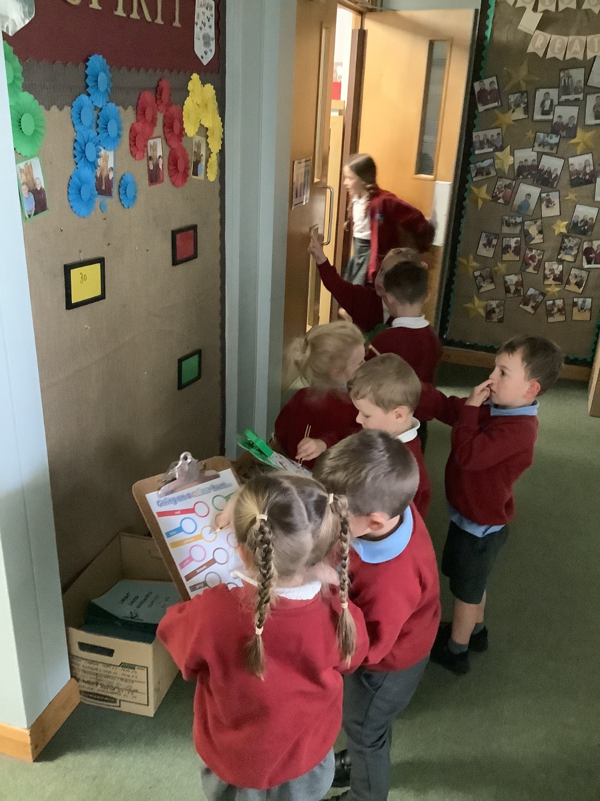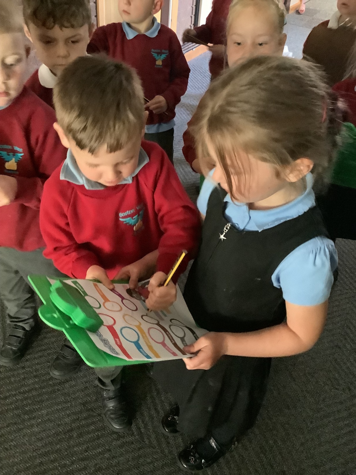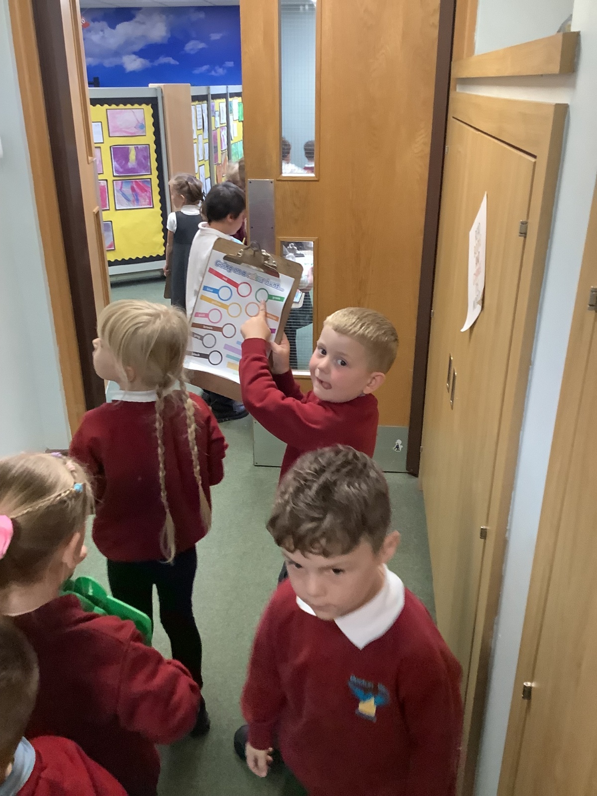 This week the children are learning about all the different colours in the world around them. We went on a colour hunt to see what colours we could identify throughout our school environment. The children worked in pairs to find and tick off what colours they saw. Well done everyone, you were able to find all the colours and use your amazing listening skills when walking through the school.